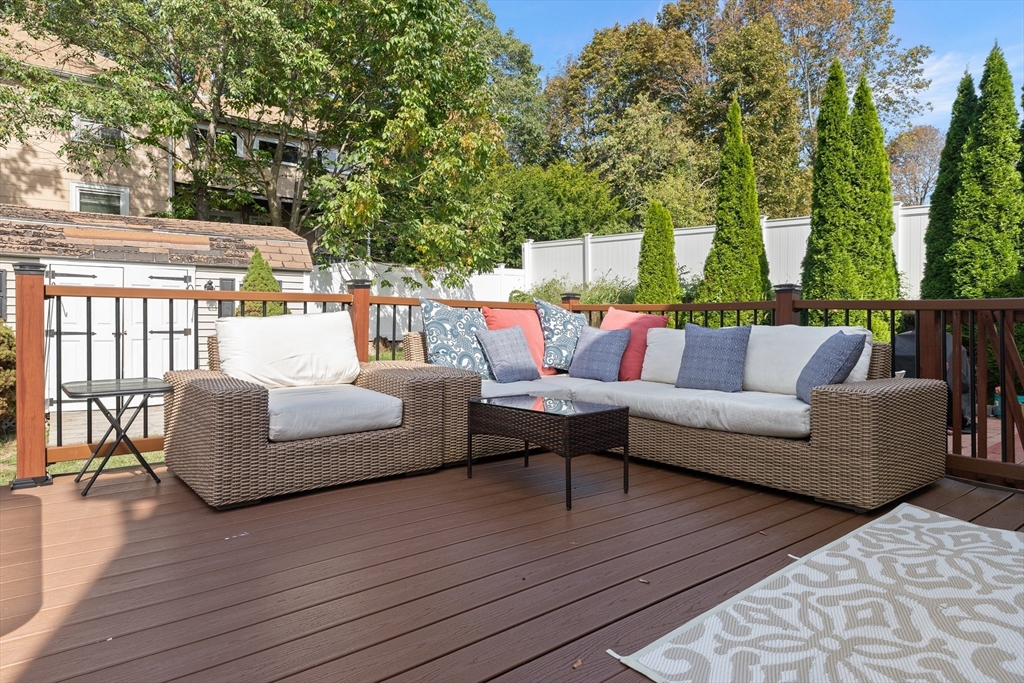 Make this sunny, well-located townhome yours! A spacious living room with tall ceilings and airy feel welcomes you to your home. The large eat-in kitchen is perfect for gathering, or step out to the expansive deck for outdoor entertaining and dining. Three bedrooms with generous closets provide flexibility for guests, office, or playroom. A main-level half bath adds convenience and Central AC adds comfort. Full basement includes washer/dryer, workshop table and exterior access. Fully fenced lawn and storage shed are perfect for gardening or your pet. Easy access to 95/93 allows quick travel into Boston (15–20 min to Logan), the North Shore, NH, Maine, or the Cape. Shopping and dining within 10 minutes—Market Basket, Target, BJ’s, Home Depot, and more. Nearby Horn Pond is great for walking, and schools offer a track, tennis and soccer fields. The Fellsway, 10 minutes away, is ideal for hiking and biking. With NO CONDO FEE this bright, versatile home combines comfort and convenience!