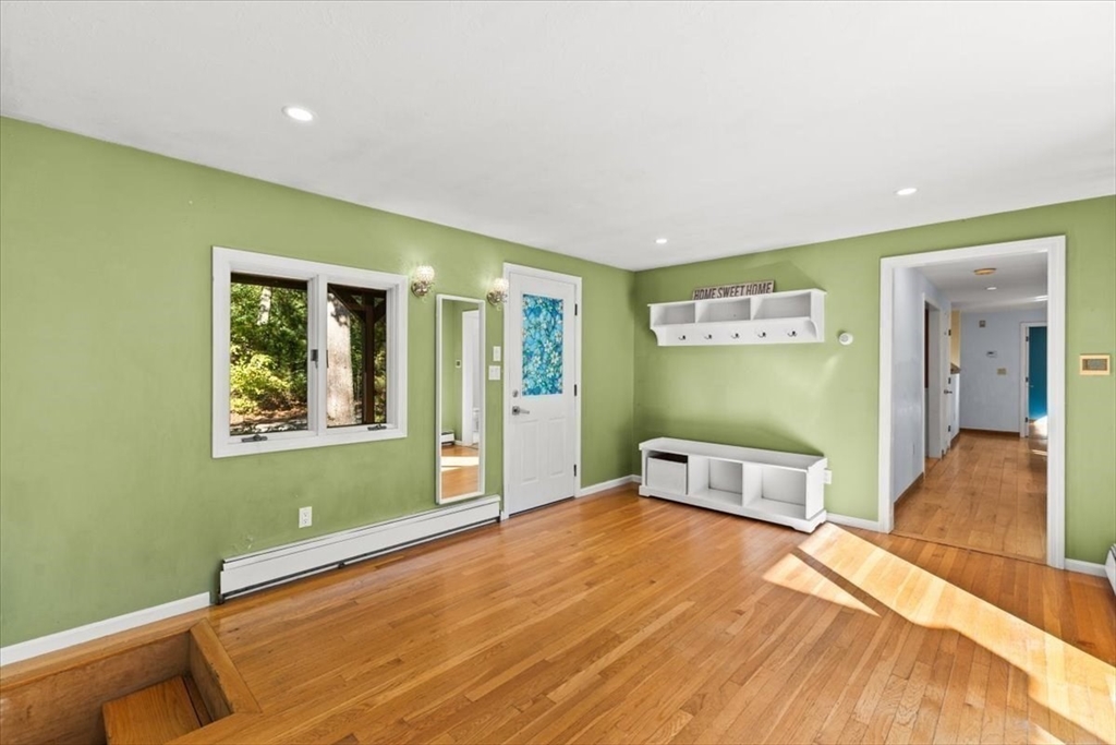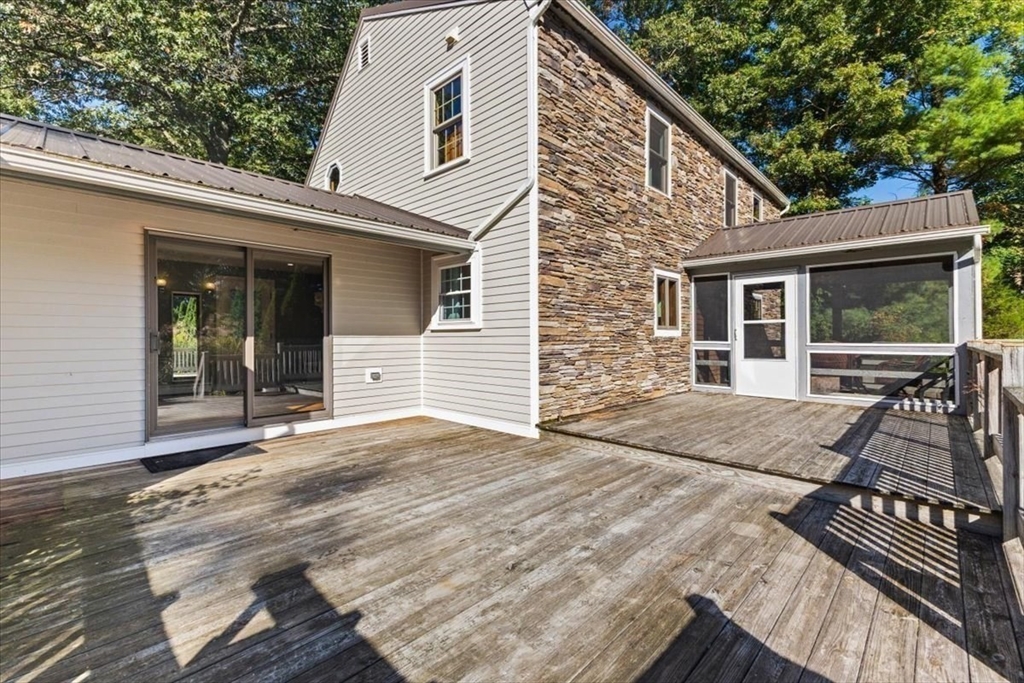 Looking for space, privacy, and a place to enjoy the outdoors? Welcome to 211 Elm St in Halifax. This three bedroom, two full bath home sits on 1.2 acres and backs up to Burrage Pond Wildlife Management Area, giving you direct access to trails and open space. Spend summer days by the inground pool, relax on the large deck, or enjoy the screened-in porch with electricity. Exploring greenhouse gardens, fruit trees, and berry bushes adds to the charm. The oversized 2-car garage provides plenty of room for vehicles, storage, or a workshop. Built with durability in mind, the home features a Buderus boiler, 10-year-old metal roof, partial stone siding (6 years), and James Hardie board siding (5 years). A generator connection adds peace of mind. Located near the MBTA commuter rail for an easy ride into Boston, and close to Robbins Pond for fishing and kayaking, this home blends comfort, convenience, and outdoor living in one great package. Do not miss your chance—schedule a showing today!