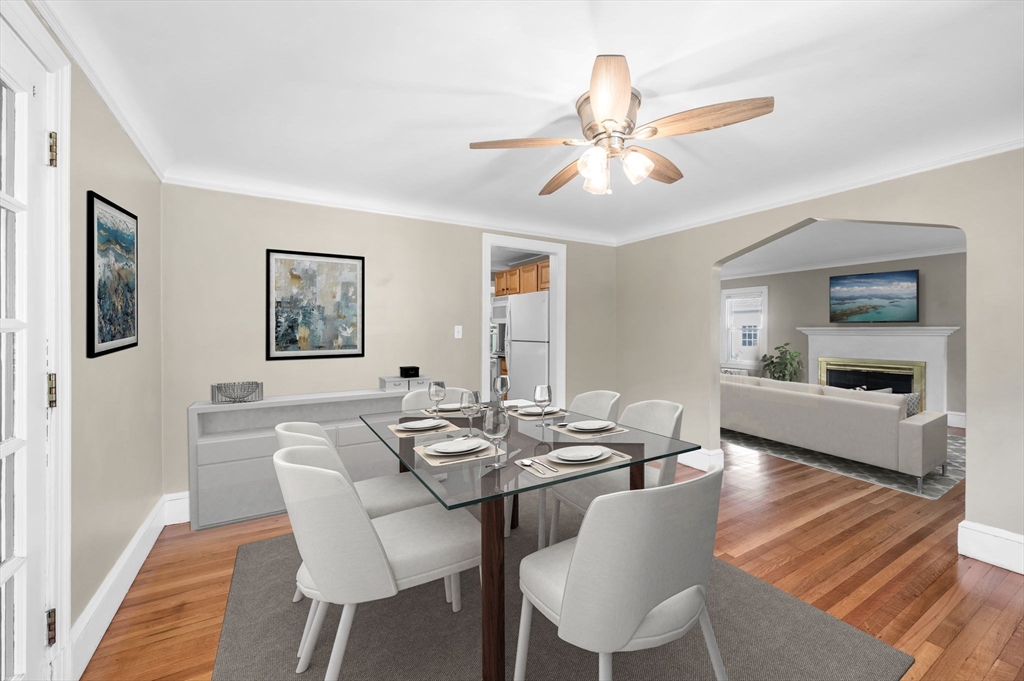 You'll love the center of town setting for this handsome 7 room, 3 bedroom, 1.5 bath Tudor Colonial, which offers vintage charm, stucco walls, hardwood flooring & spacious main rooms, including a large living room as the welcoming focal point, featuring a fireplace that promises cozy evenings, and crown molding that adds a touch of architectural elegance. Formal dining room, step-down family room/ home office/ guest room, kitchen, front entry hall & half-bath, complete the main level. 3-season screened porch directly off the dining room offers a suitable driveway side-entrance into the home. Upstairs boasts 3 generous bedrooms & full tub/shower bathroom w/ skylight! Lower level offers laundry, ample shelved storage & mechanical area. Conveniently located, close to all town amenities, and I-91 access for an easy commute to Springfield MA or Hartford CT. Very clean, well maintained; ready to move-in & enjoy. Roof was re-shingled only a few years ago. Storage shed conveys. Make it yours!