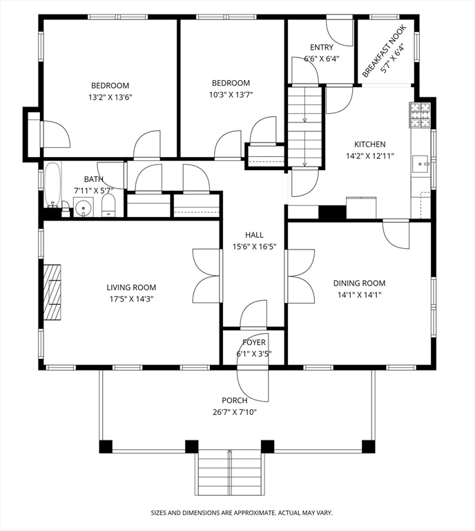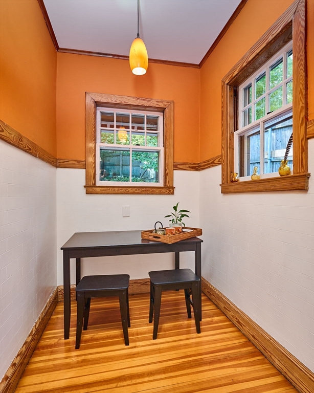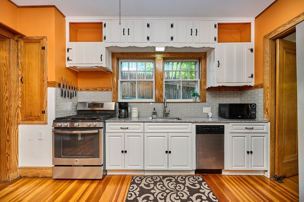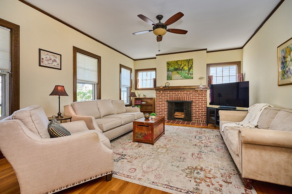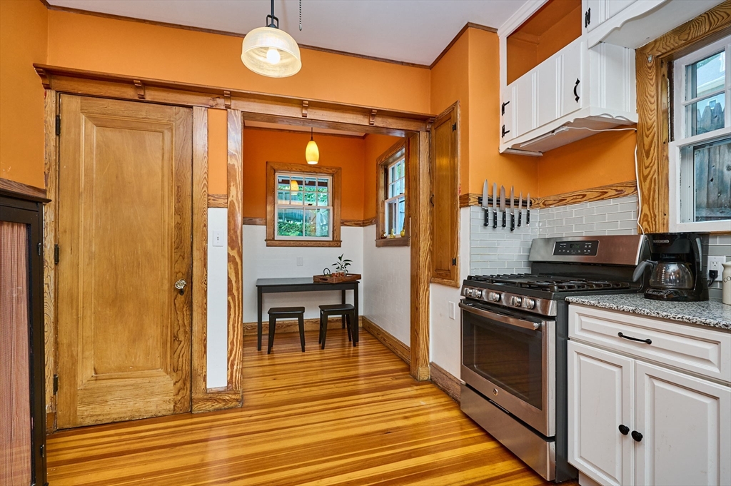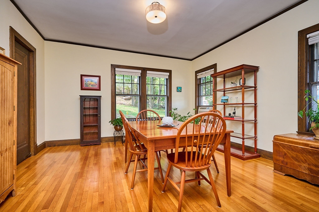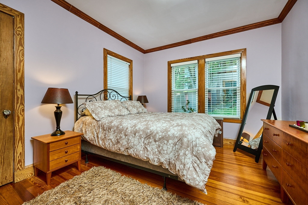 A true Craftsman-era gem, this home showcases timeless character with 9’ ceilings, substantial woodwork, French doors, and beautiful hardwood floors throughout. A deep front porch with stone piers welcomes you into a formal vestibule and gracious front hall. The spacious living room with fireplace flows to a handsome dining room, while the sunny kitchen offers granite counters, crisp white cabinets, glass tile backsplash, stainless appliances, built-in pantry, and breakfast nook. Two generous bedrooms and a tiled bath with built-in storage complete the main level. Additional highlights include a walk-up attic, usable walkout basement, efficient gas heat and hot water, and a fully fenced backyard with patio and shed. A practical, flowing floorplan with large rooms and classic details make this home both charming and functional with a convenient location near the hospital, high school, shopping, and highway access.
