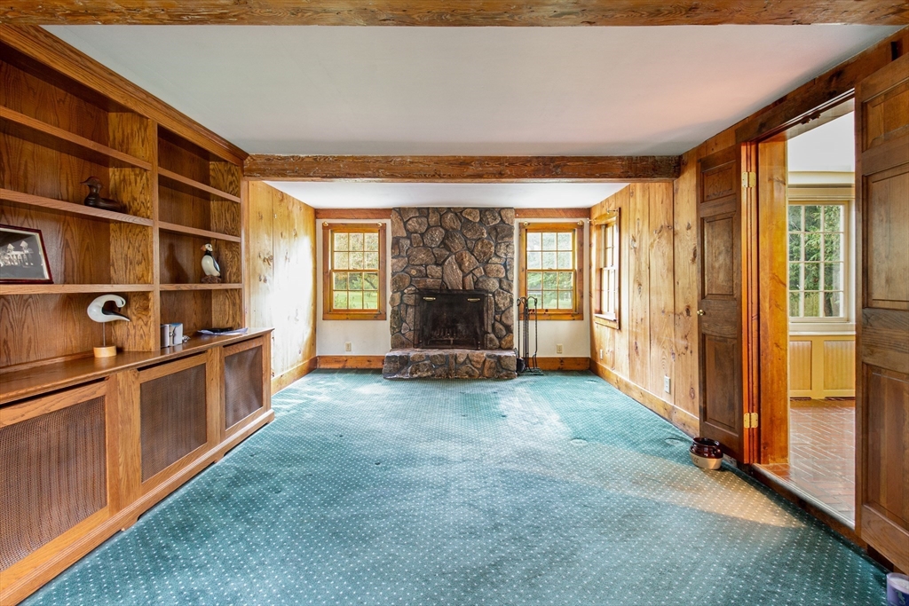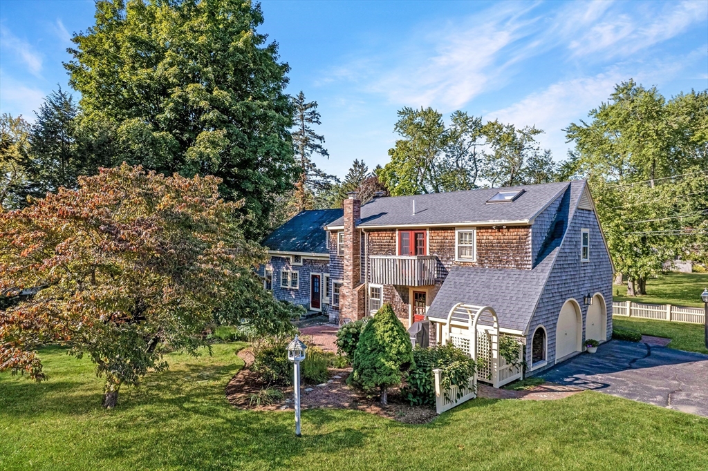 This beautiful antique home flawlessly combines modern conveniences with thoughtfully preserved historic charm. Spend evenings relaxing by the fireplace in your cozy family room with built in bookshelves. Enjoy entertaining? The eat-in kitchen with direct access to the outside allows for ideal indoor/outdoor entertaining and the large dining room is a perfect space for hosting the holidays. The family room, half bath, and den finish off the first floor. Three generously sized bedrooms on the second level, including the expansive primary suite with a spacious bathroom, ample closet space, and french doors that open up to the balcony overlooking your serene backyard. Additional full bathroom and office or nursery complete the second floor. Hardwood floors under most carpeted rooms. Boiler (2020), Roof (approx 7 years), updated electrical, recently painted exterior. Close to schools, restaurants, shops, & more. Don't miss your chance to own a piece of Medway's history!