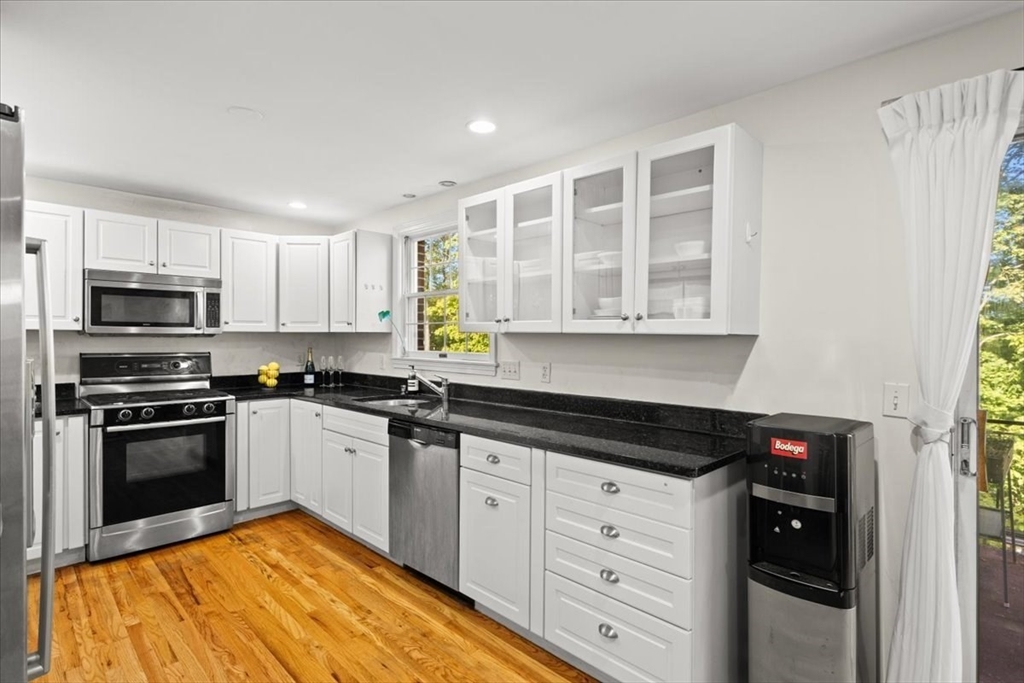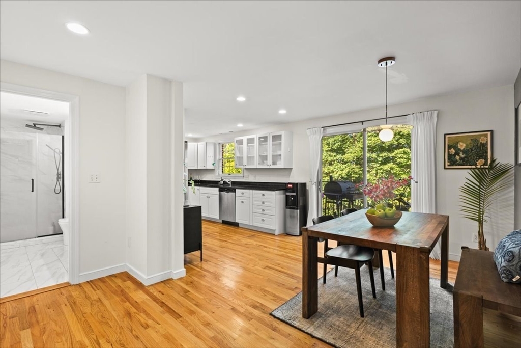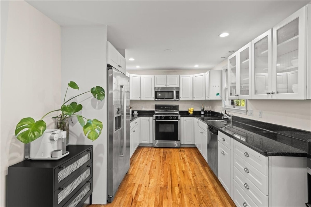 This bright and spacious 3-bedroom townhouse in Wellesley Center, set in a private courtyard just steps from shops, train, and top schools. Features include a large living room with hardwood floors and an updated kitchen with granite countertops and stainless steel appliances, a sun-filled dining area with access to a private deck. Enjoy central A/C, full baths on each floor, second-floor laundry, and a versatile lower level ideal for a home office, gym, or rec room. Includes private garage with ample storage. Short distance to commuter rail, restaurants, and more. Move-in ready!