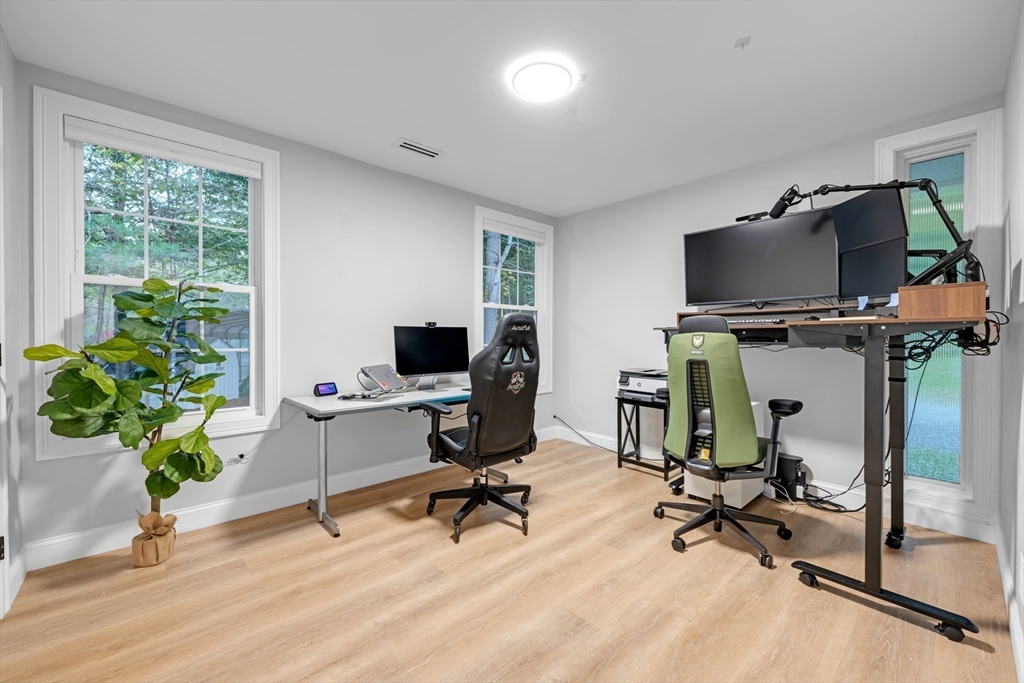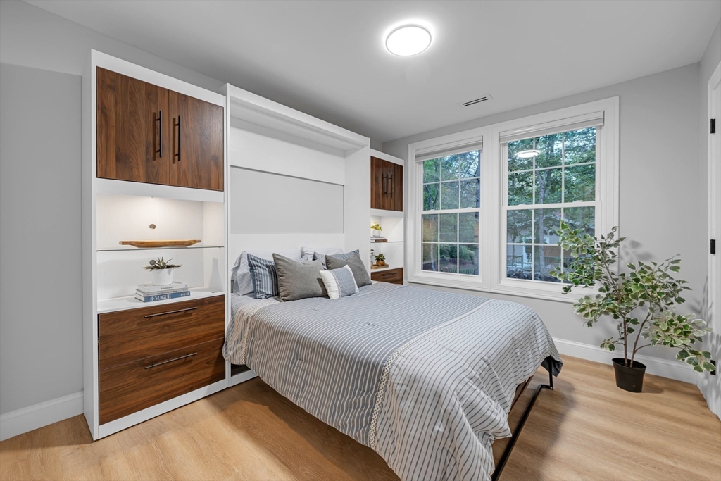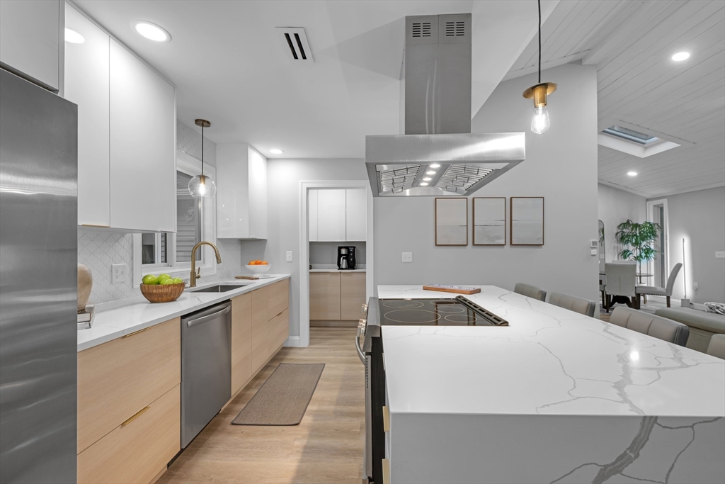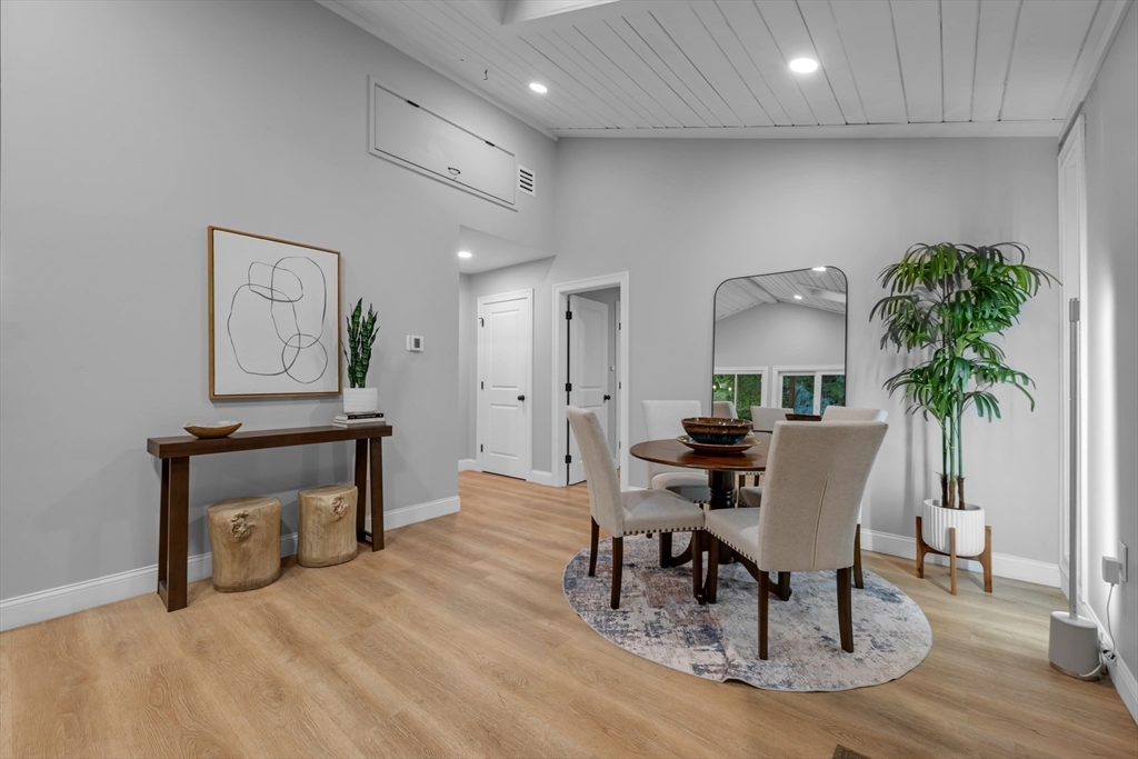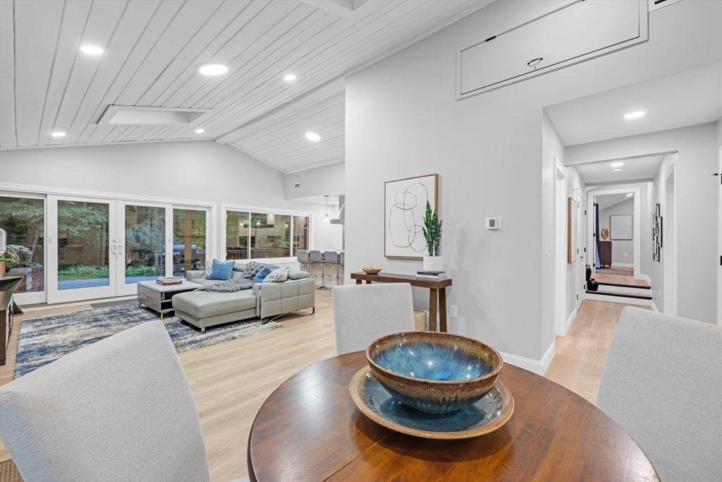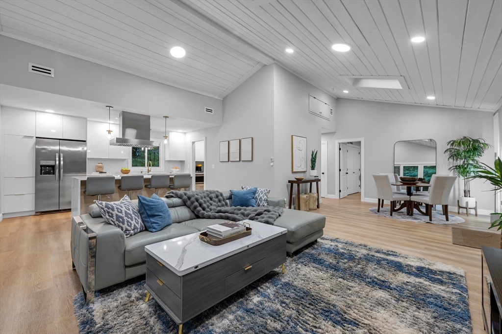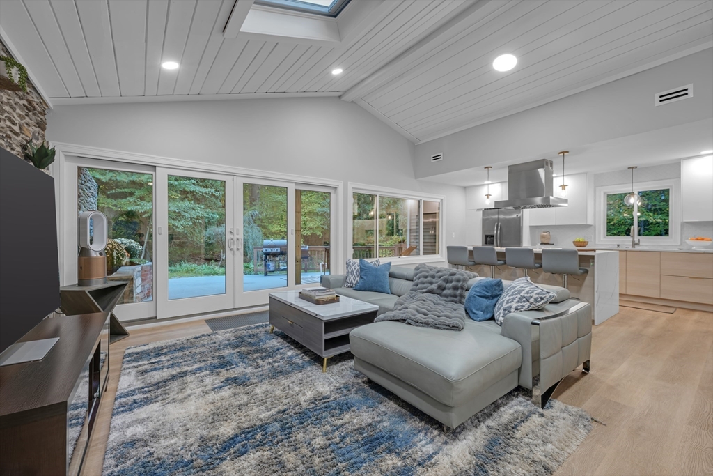 Looking for something extraordinary? This stunning wooded retreat offers a fully remodeled, turnkey Contemporary Ranch w/ 3 bedrooms and 2 baths. Perfectly set in a prime central location near Old Sturbridge Village, this home abuts conservation land and walking trails, creating an ideal backdrop for nature lovers. Enjoy seamless indoor-outdoor living w/ a covered patio and composite deck overlooking a tranquil brook. The open-concept design features vaulted ceilings, recessed lighting, central air, continuous flooring, and a soothing neutral palette throughout. The chef’s kitchen is a showstopper—double waterfall quartz island, stainless appliances, sleek European cabinetry, and a spacious walk-in pantry. The vaulted primary suite boasts a private bath, walk-in closet, and direct deck access. Two additional bedrooms with double closets, a full bath, and a laundry closet complete the thoughtful layout. Pride of ownership shines throughout—this one-of-a-kind home is truly move-in ready