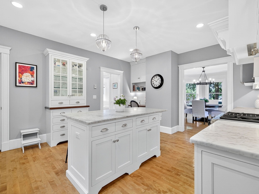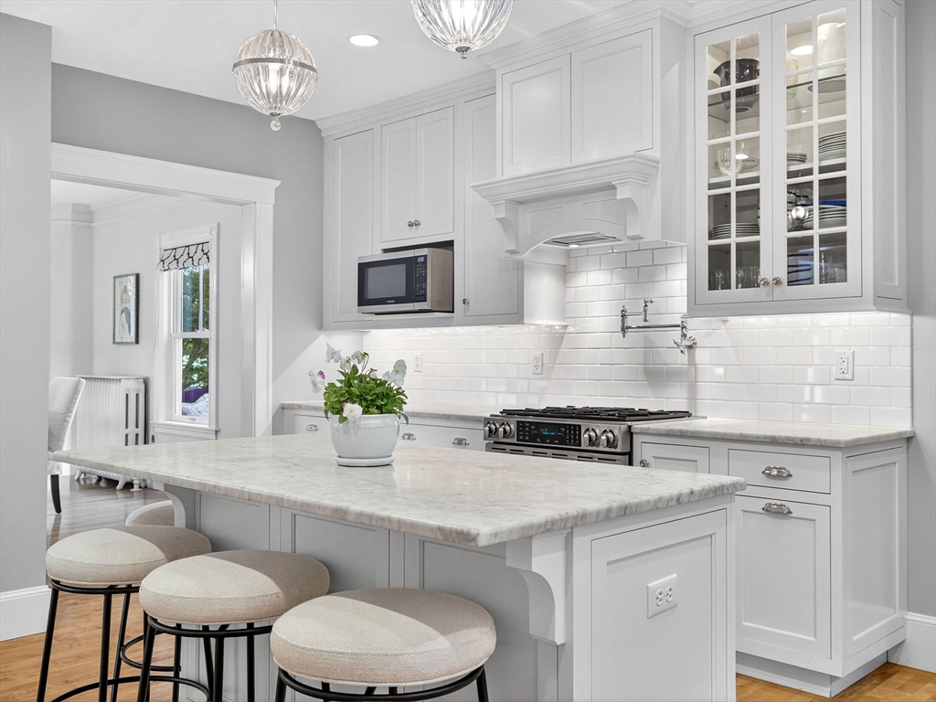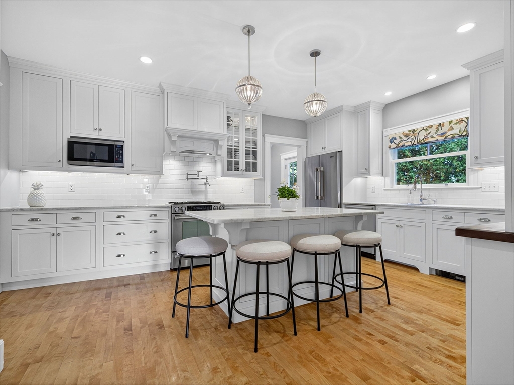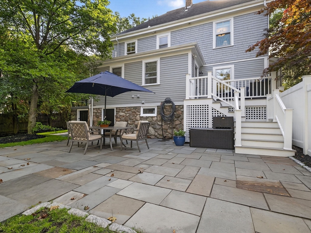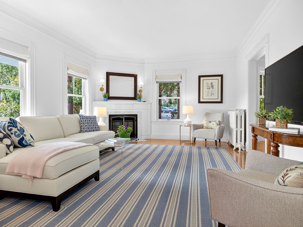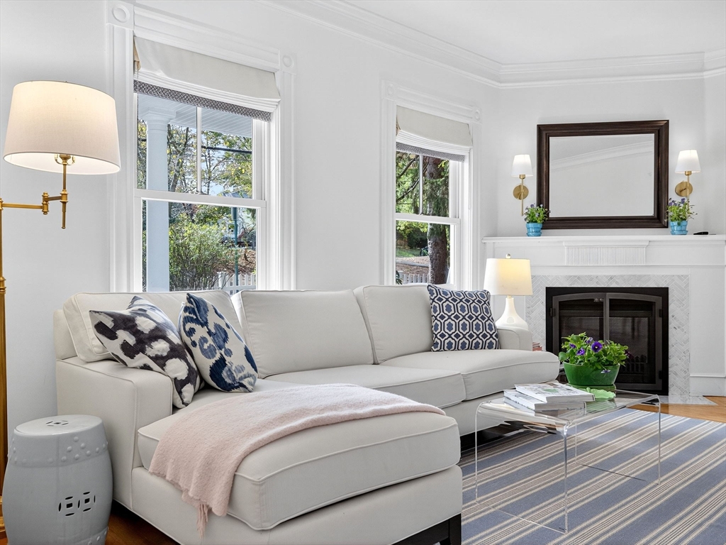 Worthy of a picture perfect postcard, this beautifully renovated Village Colonial blends timeless charm & character w fresh modern comfort! Sunlight pours thru the expansive windows highlighting the elegant architectural details: high ceilings, rich moldings,& gleaming hardwood floors. The stunning gourmet kitchen combines beauty & function featuring high end stainless steel appliances, custom cabinetry, luxurious marble countertops, & expansive island perfect for family living. This home offers 5 spacious light filled bedrms, including a serene master retreat, & 4 crisp updated baths. Brimming with family friendly spaces including 2 mudrms, w space for all the family gear, a playrm & the delightful front porch,a perfect place to relax! The lush yard is enclosed w a white picket fence creating a private & picturesque setting ideal for play or entertaining. Located just steps to schools, playground, shops and restaurants. This exceptional property is a rare find, truly a forever home!