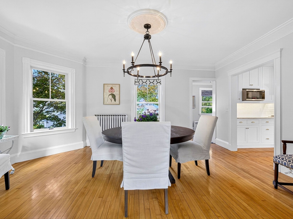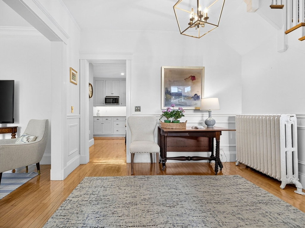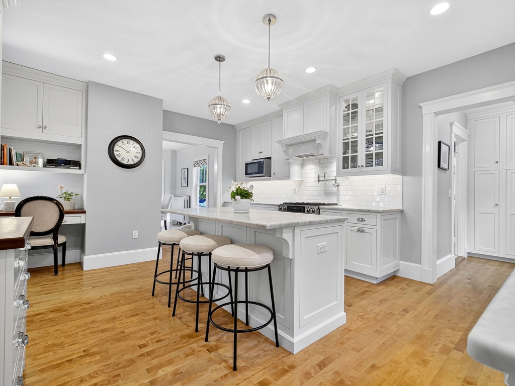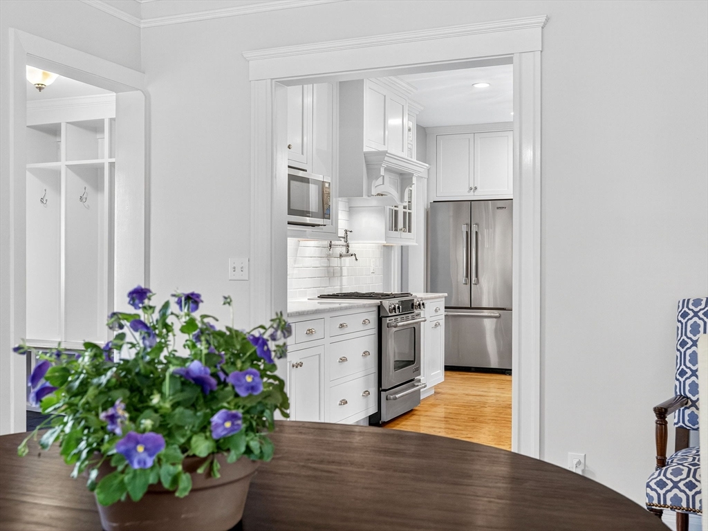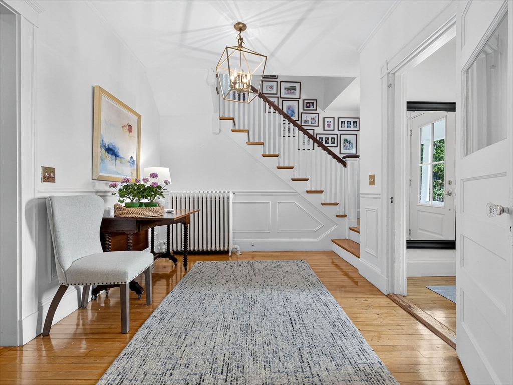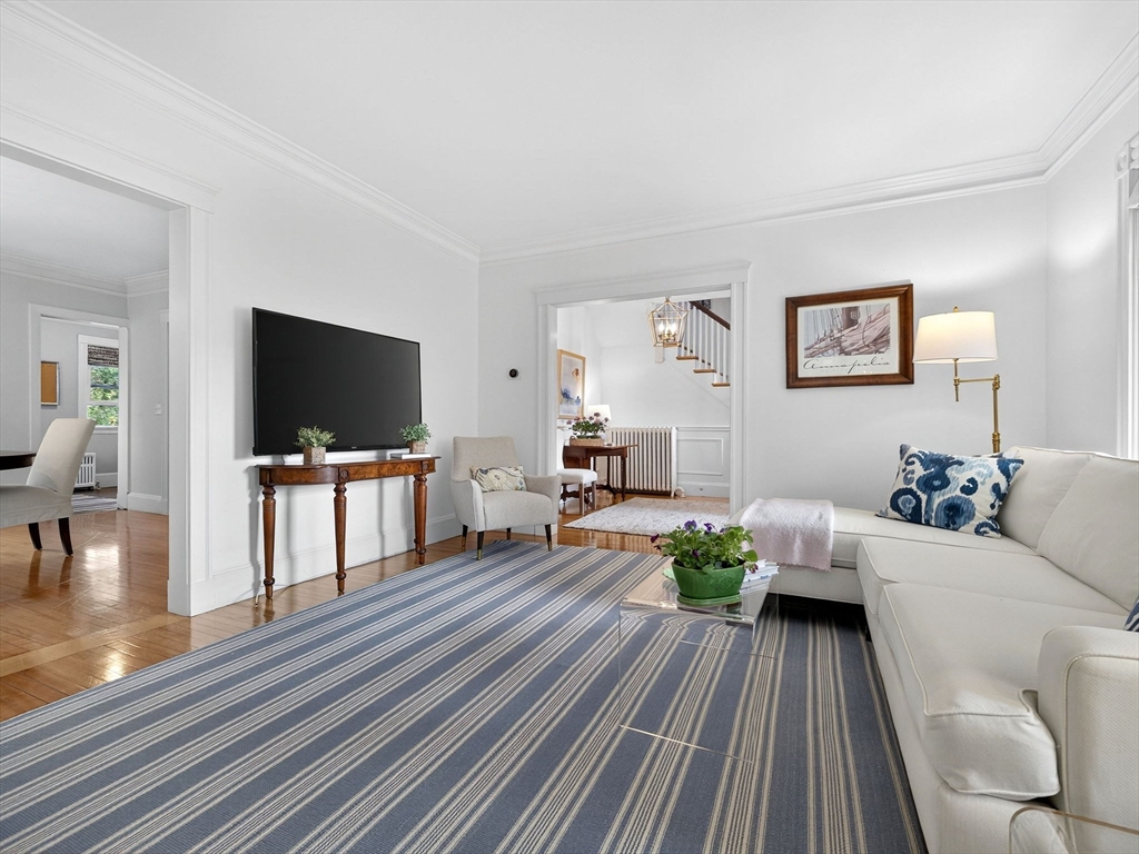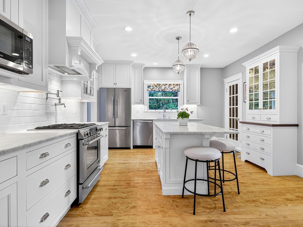 Worthy of a picture perfect postcard, this beautifully renovated Village Colonial blends timeless charm & character w fresh modern comfort! Sunlight pours thru the expansive windows highlighting the elegant architectural details: high ceilings, rich moldings,& gleaming hardwood floors. The stunning gourmet kitchen combines beauty & function featuring high end stainless steel appliances, custom cabinetry, luxurious marble countertops, & expansive island perfect for family living. This home offers 5 spacious light filled bedrms, including a serene master retreat, & 4 crisp updated baths. Brimming with family friendly spaces including 2 mudrms, w space for all the family gear, a playrm & the delightful front porch,a perfect place to relax! The lush yard is enclosed w a white picket fence creating a private & picturesque setting ideal for play or entertaining. Located just steps to schools, playground, shops and restaurants. This exceptional property is a rare find, truly a forever home!
