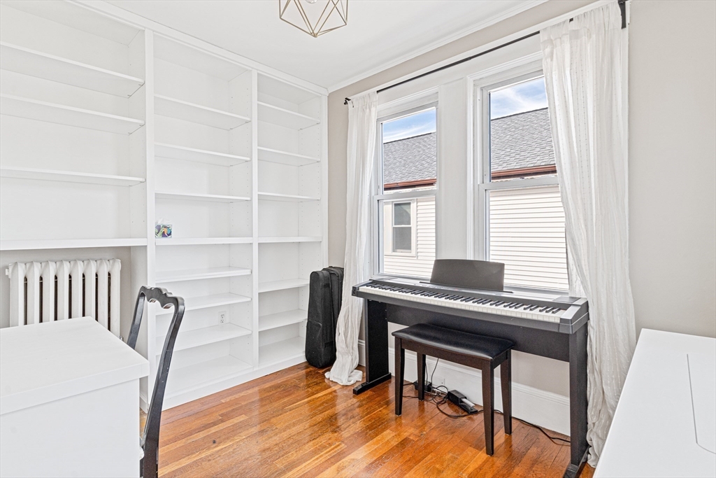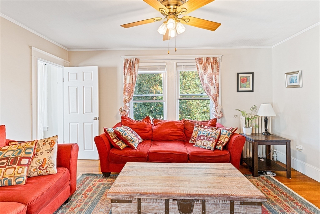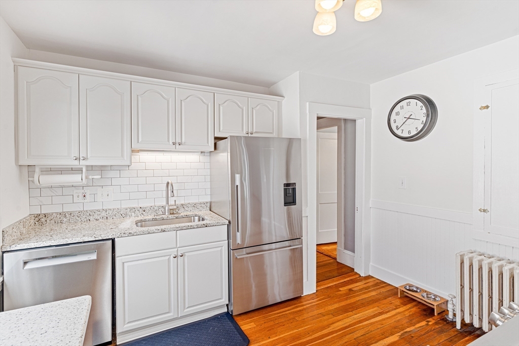 Rare Find in Coolidge Square! Pet-friendly 3Bed/1Bath second-floor condo in highly sought-after East Watertown. This well-maintained condo features an updated kitchen and bathroom, plus a bonus room—perfect for a home office. Enjoy garage parking, Tesla EV charger, a private rear porch, and access to a shared yard. Additional storage includes an exclusive laundry room in the basement and a walk-up attic with potential for expansion! Prime location – walk to shops and restaurants just around the corner, bike the trail that connects to Fresh Pond and Alewife, or drive a short distance to the Charles River, Arsenal Yards, Cambridge, Downtown Boston, and the Mass Pike.