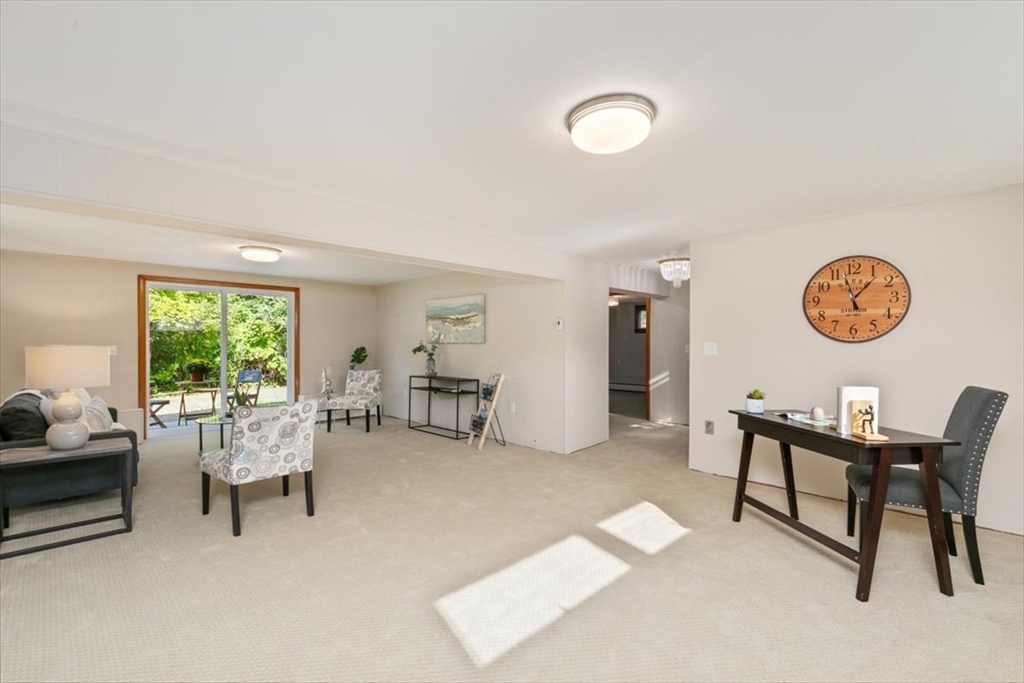 Welcome to this beautifully renovated 3 BR, 2 BA home offering 2,195 sq. ft. of stylish and comfortable living space. Located in a highly desirable Wakefield neighbrhd this home features a brand-new kitchen with white cabinetry, spacious center island, quartz countertops & SS appliances. Both bathrms have been tastefully updated w/ quartz vanities. Step into the elegant foyer, illuminated by a stunning chandelier. The sunlit living & dining rms create a warm ambiance, complete with a charming fireplace. A spacious family & office rm slider opens to a large backyard, perfect for outdoor relaxation. All bedrooms boast new carpeting & generous closets. New flooring flows throughout the home complementing its fresh, modern updates. Add'l features include a nearly new heating system, two classic brick fireplaces & a dedicated laundry room. Enjoy the convenience of nearby amenities, including Lake Quannapowitt, a favorite destination for walking, running, & recreation. Don't miss this beauty