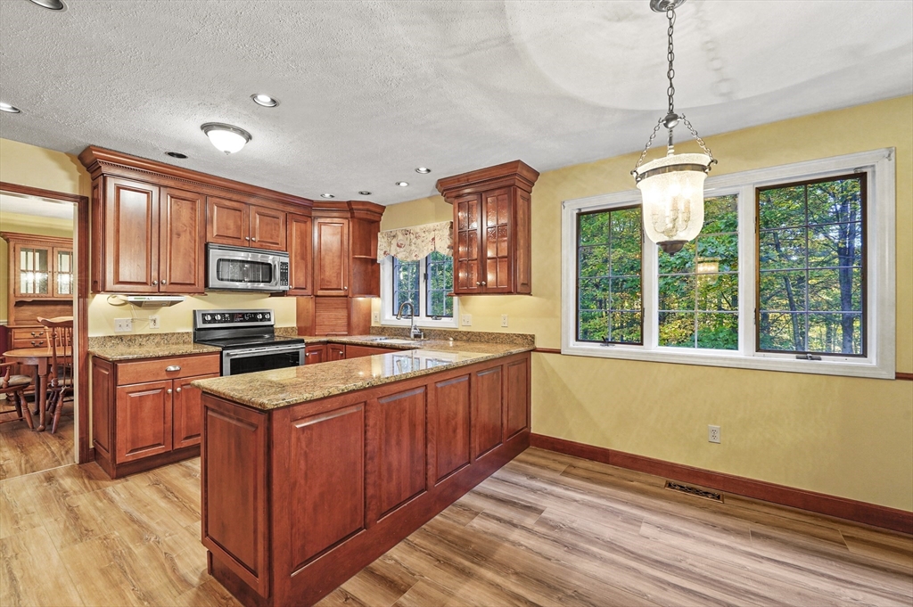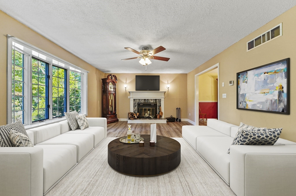 This property offers the perfect blend of comfort & versatility. Enter inside to a welcoming living room featuring a cozy fireplace & bay window that fills the space w/ natural light. The cabinet-packed kitchen boasts SS appliances, ample countertop space & dining area, while a formal dining room & a family room w/ an addit'l fireplace provide plenty of space for gatherings. A first-floor laundry room & 1/2 bath complete the main level. The lower level provides more space w/ 2 bonus rooms, a kitchenette, & ¾ bath. Upstairs, discover a truly unique primary suite consisting of 2 adjoining rooms: one with a private bath & walk-in closet & the other featuring built-in cabinets, skylights & a glass door leading to a private balcony. This flexible layout is ideal for creating a sitting room, home office, or personal retreat. Three addit'l bedrooms & full bath round out the 2nd floor. Outside, enjoy the tree-lined backyard w/ an in-ground pool, irrigation system & 2 storage sheds.