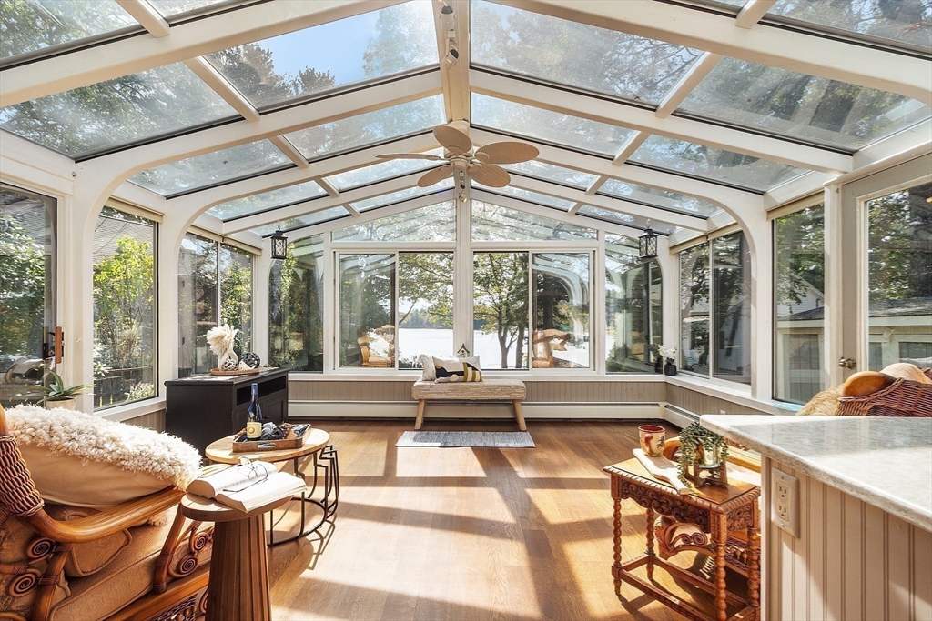 Rare Waterfront Opportunity on Heart Pond! Don’t be fooled this home is bigger than it looks! Beautifully updated and designed for year-round enjoyment, it offers stunning views in every season. The first floor features a spacious bedroom, full bath, home office, living room, kitchen, laundry, and an oversized Brady-built sunroom that feels like an extension of the outdoors. The open layout is ideal for living and entertaining, while the heated basement provides a workshop and plenty of storage. Outdoor spaces include a fenced backyard, gazebo, patio, deck, private beach, a large shed and option to add a dock. (Option to include Pontoon boat!) From morning coffee to kayaking, skating, or sunset views, this home delivers the perfect balance of comfort, recreation, and relaxation. Don’t miss your chance to make this rare waterfront gem your own!