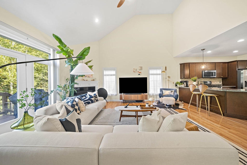 Discover this exceptional eight-year-old duplex-style townhouse at Academy Hill in historic Groton. This home boasts an open and airy floor plan, featuring a main bedroom suite on the first floor with a private en-suite bath and walk in closet.. The seamless layout is ideal for entertaining, with high ceilings and hardwood floors throughout the family room, kitchen, and formal dining area. The spacious kitchen is equipped with granite countertops, stainless steel appliances, and a breakfast bar. The family room, featuring a gas fireplace, cathedral ceilings, and plenty of natural light, opens to the back deck—perfect for relaxation and gatherings. Upstairs, you'll find an oversized second bedroom, full bath, plus an additional versatile room that can serve as a bedroom, office, or den. The full walk-out basement offers ample space and potential to be finished into extra living areas to suit your needs. Open House Sat 10/4 and Sunday 10/5 from 11 to 12:30.