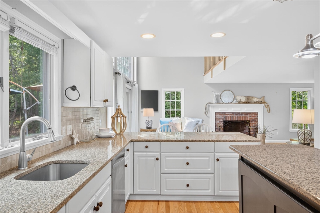 Deerfield Estates - This traditional Colonial offers 4 bedrooms, 2.5 baths, and a private lot in one of Brewster's most desirable neighborhoods. Abutting over 800 acres of Punkhorn Conservation land and just a short distance from Upper Mill Pond, the home provides both privacy and access to nature. Custom-built and well-maintained, the residence features a cathedral-ceiling living room with a brick fireplace, hardwood floors, and a slider leading to the rear deck. The spacious kitchen is well appointed and flows into a generous dining area with its own slider opening to the backyard. A den, half bath, and full laundry complete the first floor. Upstairs, the primary suite offers a walk-in closet and private bath. Three additional bedrooms, a full bath, and a loft area complete the second level. Additional highlights include an oversized garage with direct access and a brand-new roof (2023) with transferable warranty.