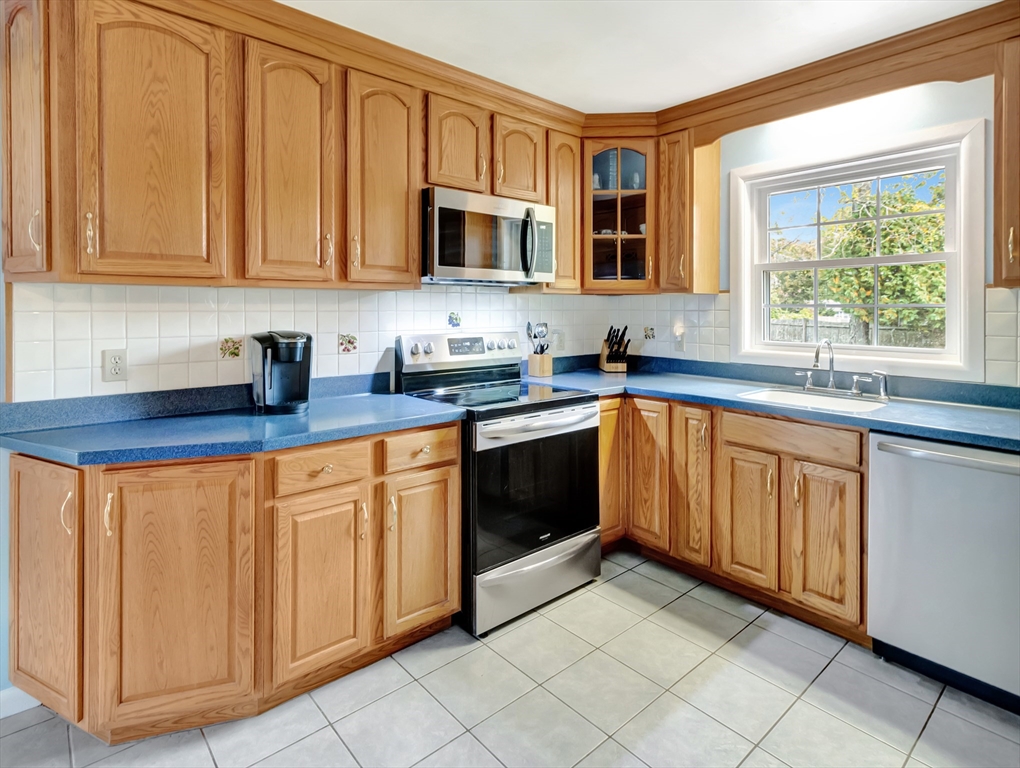 This inviting home presents an opportunity to embrace comfortable & spacious living. Situated on a generous corner lot w/ a great back yard. This lovely home, ready to move in, offers a blend of charm & convenience. Open light & bright floor plan. The kitchen is enhanced by a stylish backsplash, adding a touch of elegance to this functional space with Frigidaire Gallery fridge & dishwasher, stove & microwave only 2 years old. Many features including no maintenance vinyl siding, gleaming hardwood floors in multiple rooms & a convenient breezeway. The family room, with its vaulted ceiling, provides an expansive & airy atmosphere. Imagine relaxing in this bright & open space, perfect for both quiet evenings & fun gatherings. Wonderfully maintained home with updates in 2019 include: roof, windows, deck, patio, walkway, hot water heater. Easy living.1 mile from T-Station. All offers due Tues,10/7 by 1:00pm. 1st showings at Open House, Saturday 10/4 from 11- 12:30 & Sunday 10/5 from 1- 2:30.