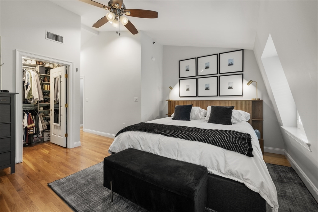 Charming brick townhome in Charlestown’s Gas Light District w/ private entrance, 2 garage spaces, & exclusive-use fenced patio. Open-concept main level is great for effortless living & entertaining, w/ seamless flow between living, dining, & kitchen areas anchored by a cozy gas fireplace. Updated kitchen features quartz counters, stainless steel appliances, & breakfast bar w/ seating for 4. Step out to the patio—ideal for dining, remote work, or evening cocktails. A sleek powder room completes this level. Upstairs, 2 well-proportioned bedrooms offer excellent closet space, a full bath w/ tub & shower, and in-unit laundry. 3rd floor primary suite impresses w/ vaulted ceilings, California Closet walk-in, office nook, & spa-inspired bath w/ double vanity. Features include hardwood floors, c/air, attic & garage storage. Moments from shops, dining, & the waterfront, this home blends traditional elegance w/ a contemporary touch.