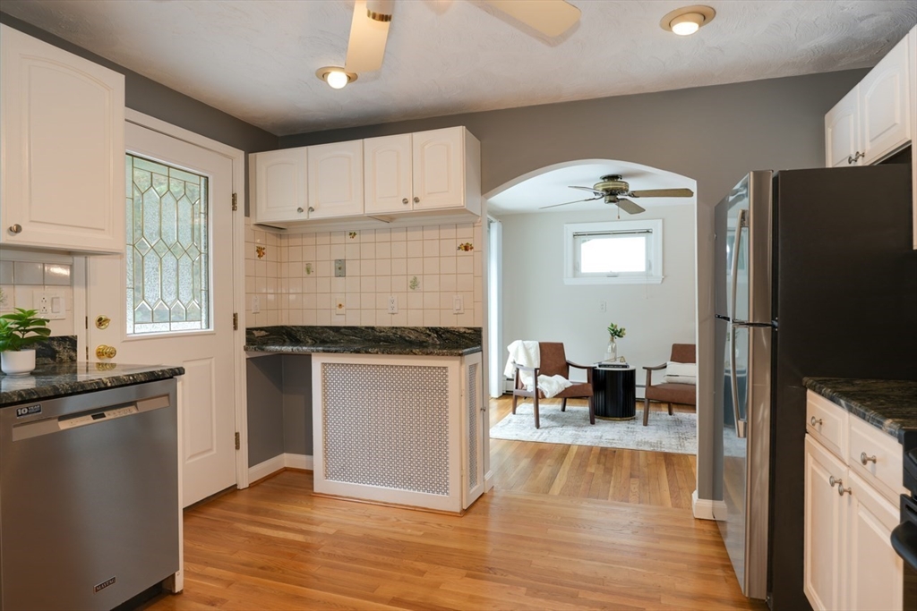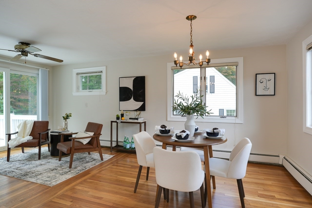 Welcome home to this pristine Cape, where comfort, style, & easy living come together. A sun-splashed open-concept main level with a cozy fireplace flows seamlessly into a kitchen boasting granite counters - creating the perfect setting for both everyday living & entertaining. Gleaming hardwood floors & fresh paint enhance the bright & inviting feel throughout. Upstairs, oversized bedrooms, a full bath, and thoughtful storage—including both linen and cedar closets—offer space and convenience. The main level features two additional bedrooms and a renovated ¾ bath, ideal for flexible first-floor living, a home office, or guest retreat. Step outside to a beautiful deck overlooking a flat, level yard—perfect for summer gatherings, gardening, or simply relaxing outdoors. A one-car garage adds convenience, while the dry lower level with excellent ceiling height holds endless potential. Truly move-in ready -- this home invites you to settle in and enjoy from day one.