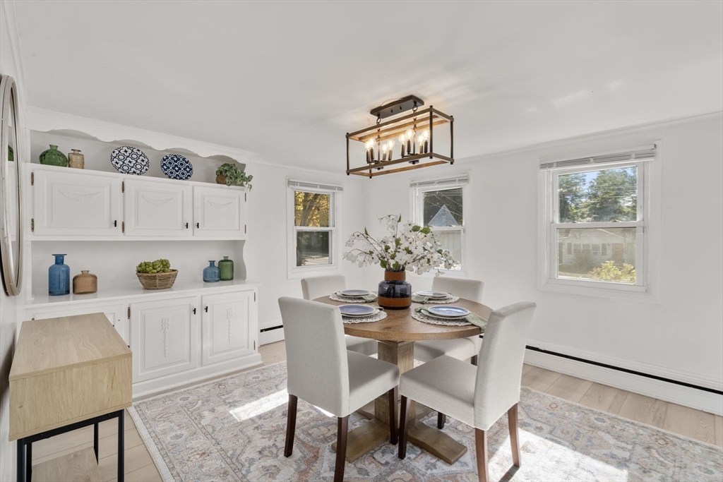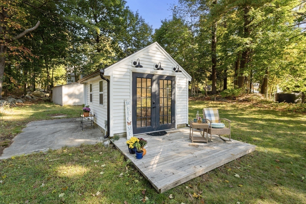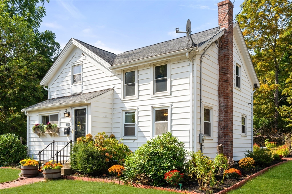 Discover this charming 3-bedroom colonial nestled within a wooded area just outside of Medway’s Central Business District. This home is filled with delightful updates that beautifully integrate rustic charm with modern comfort. An alluring outbuilding on the property is sure to spark your imagination. Whether you dream of an inspiring artist’s studio or productive home office, the possibilities are endless. Step into the main home through a welcoming patio and you'll find a cozy first floor featuring a delightful galley kitchen, a full dining room with a charming built-in cabinet, and a bright and sunny, front-to-back living room. With the warm touch of plank flooring underfoot, every corner of this home invites relaxation and comfort. For your convenience, there's a lavatory/laundry room and a pantry on the first floor. Venture upstairs to discover three inviting bedrooms, a full tiled bathroom, and extra storage. This gem offers close proximity to shops, top Schools, and 495.