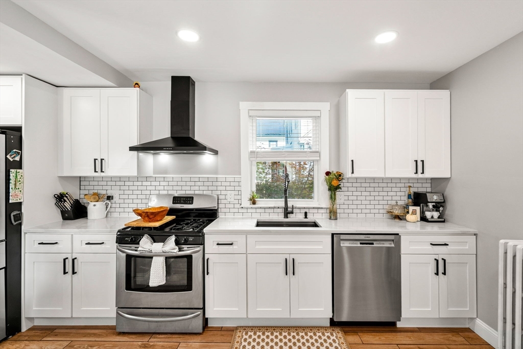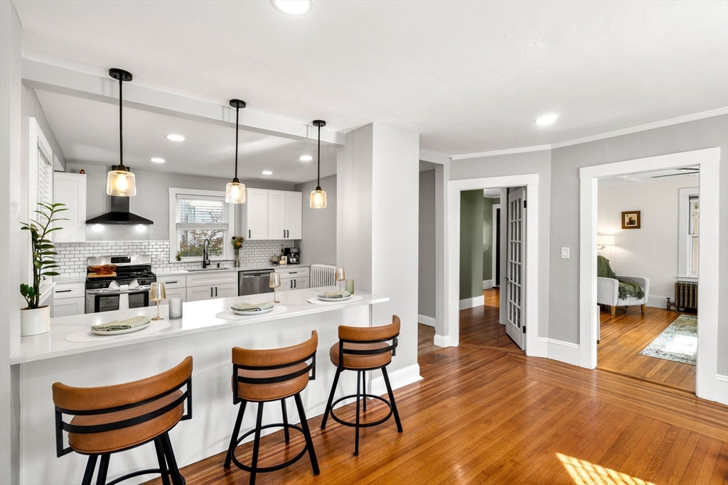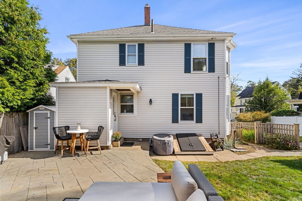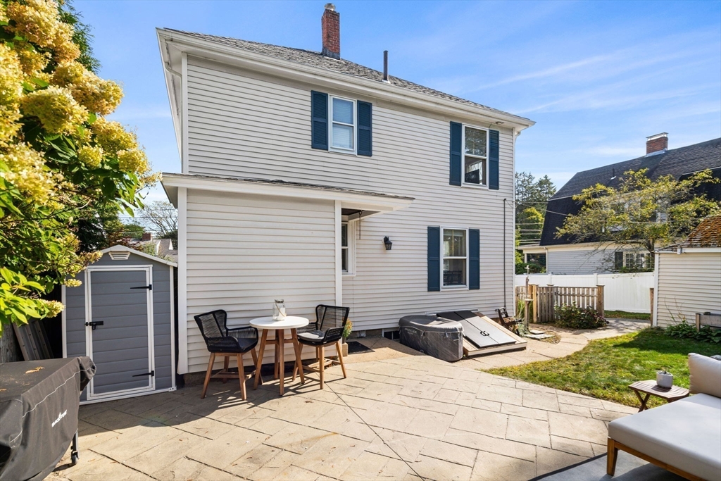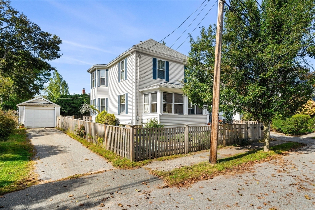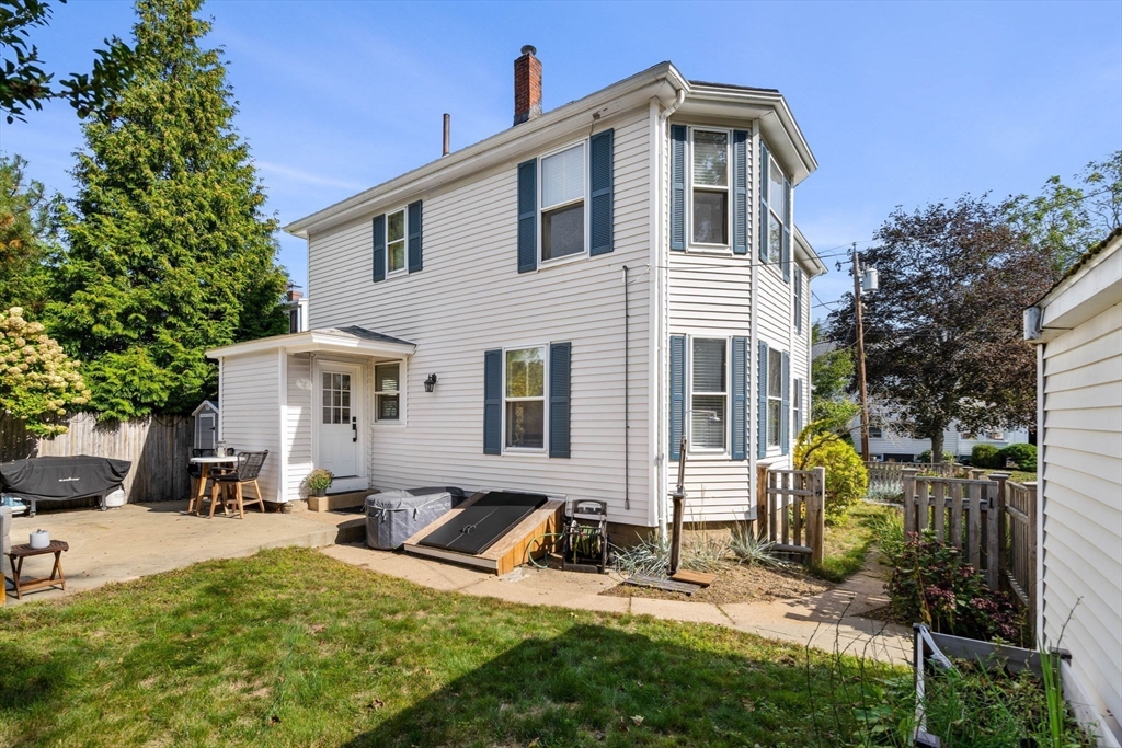 This beautifully updated turn-of-the-century Colonial blends timeless charm with modern convenience. Featuring three bedrooms plus an office, 1.5 baths, and classic details like hardwood floors, French doors, and soaring ceilings, the home also offers a newly renovated kitchen with updated counters, cabinetry, and flooring. A sun-filled three-season porch, gracious dining room, and bright living spaces make it perfect for everyday living and entertaining. Recent improvements include a new appliances, electrical system, water heater, heating system, bulkhead, and cellar door. The fenced yard features mature plantings, flowering bushes, a newer patio, and an outdoor shower hookup for summer days. Located on a quiet, tree-lined street in North Beverly, this home is close to Wenham Lake trails, Tendercrop Farm, restaurants, downtown, the ocean, and offers easy access to the commuter rail and highways.