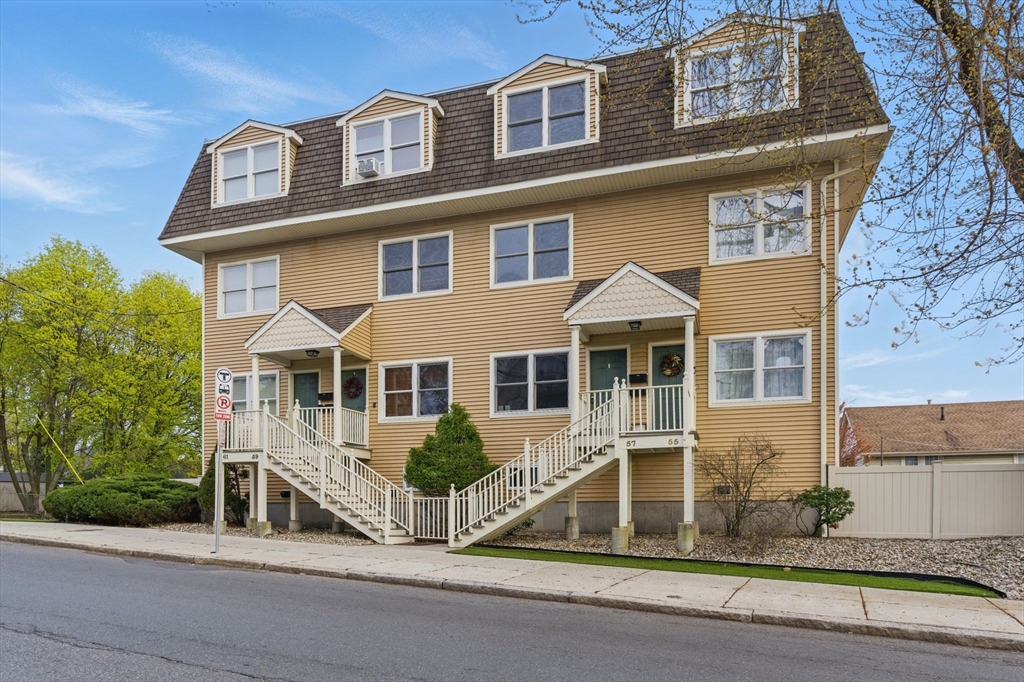 This spacious 4-level townhouse condo offers approximately 1,800 sq ft of total space, built in 2005. The home features 3 bedrooms, 2.5 baths, a bonus home office! The first level includes an attached one car garage & a laundry room. 1 outdoor parking is also included. The main living area on the second floor offers a bright living room with hardwood floors, recessed lighting, a half bath, & an eat-in kitchen that opens to a private balcony through a large sliding glass door. The third floor includes two generously sized bedrooms and a full bathroom. The fourth floor hosts a private primary suite with closets, a full bathroom, and an adjacent home office or potential fourth sleeping area. Conveniently located near shops, dining, transportation & just minutes to Boston!Freshly painted and lighting added. Property to be sold in as is condition. Now being sold in as is condition. Find me a larger and better townhouse for $599,000 anywhere near Boston for this price and this price per ft.