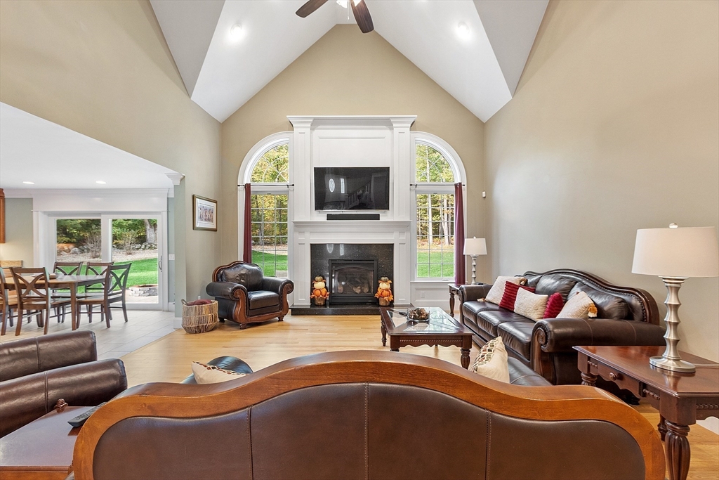 Step into a one-of-a-kind custom-built Cape Cod home designed with comfort, accessibility, and timeless style in mind. Perfectly situated just steps away from the Historic Ashby Common, this stunning residence offers a private wooded setting that delivers the ideal blend of charm and privacy. You will love the dramatic vaulted-ceiling family room creating the perfect centerpiece for relaxing or entertaining. The family room flows seamlessly to the large eat in kitchen, dining room, and out to the beautiful patio. This thoughtfully designed property features two main bedroom suites, including a spacious first-floor accessible master bedroom. This design provides unmatched flexibility for multi-generational families or those seeking long-term convenience. The property's radiant heating system also ensures warmth and efficiency throughout the seasons, adding to the home’s inviting atmosphere. There are too many upgrades to list in the 1000 character limit! Don't miss it!