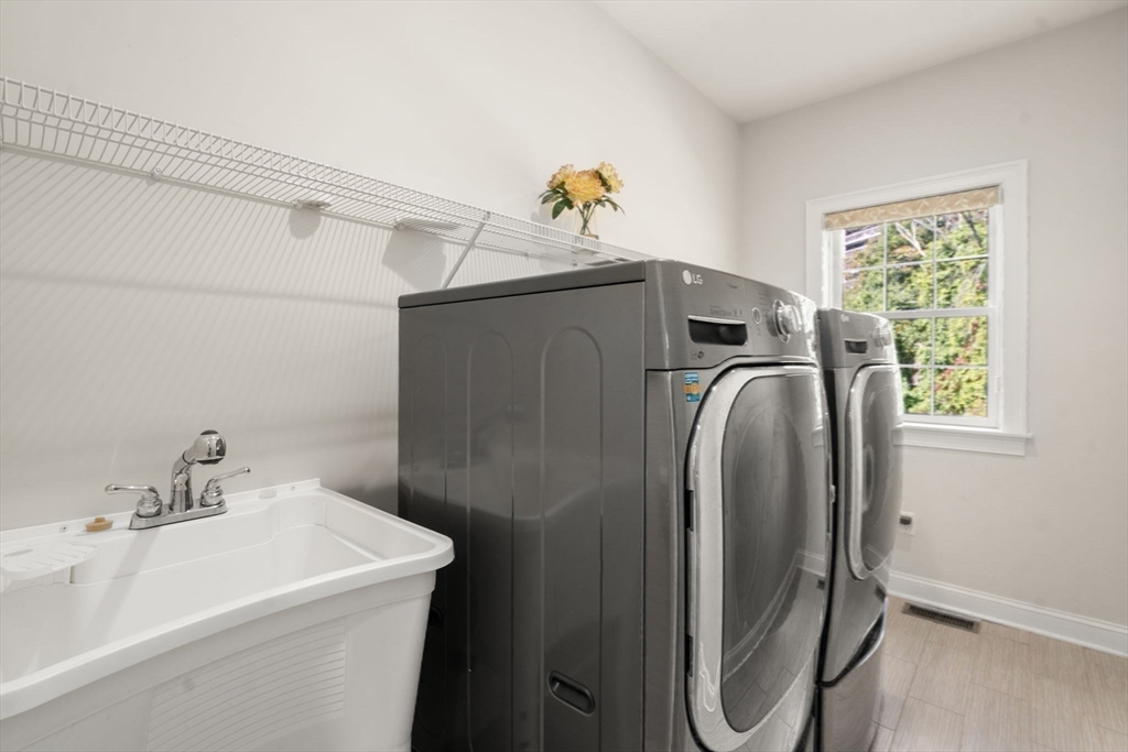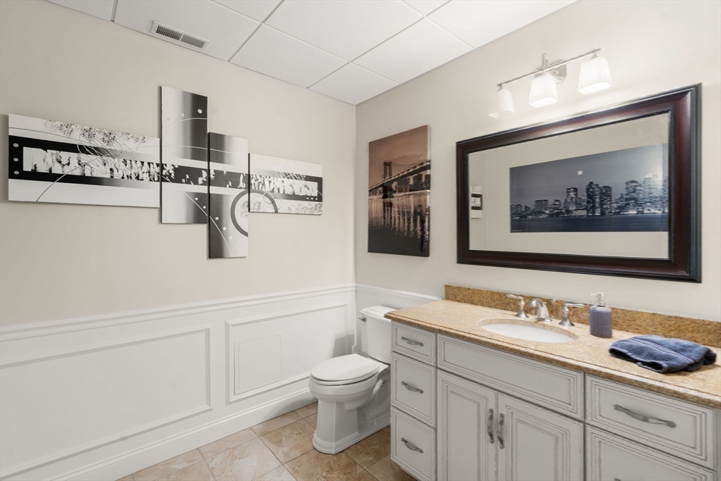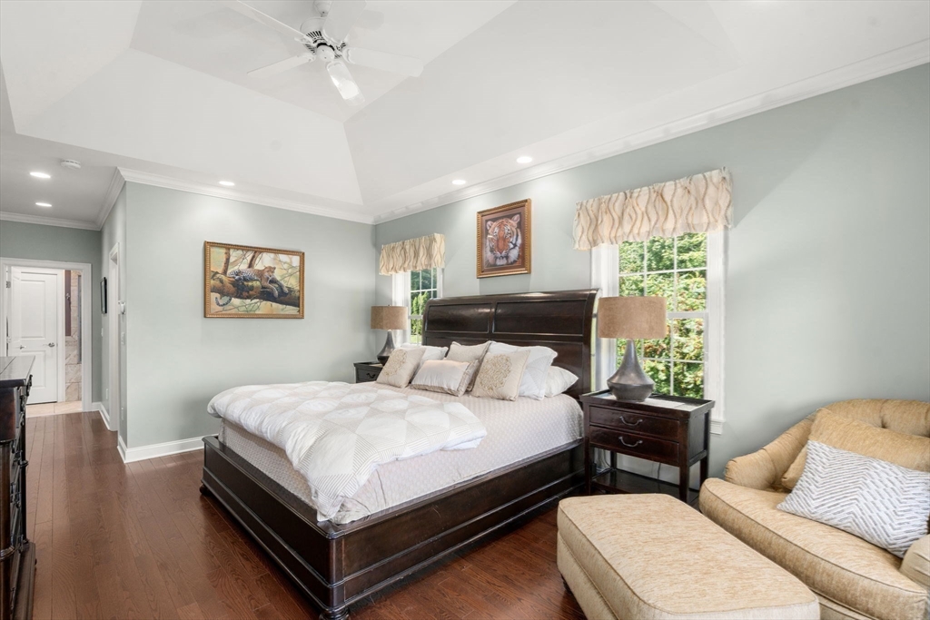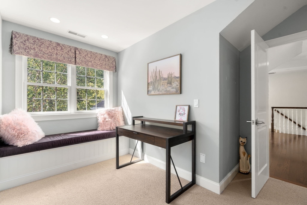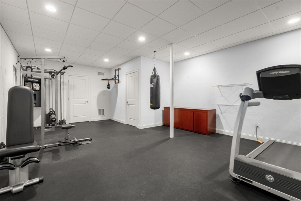 Elegant End Unit in Village Estates awaits you. This beautifully designed end unit is perfect for entertaining, featuring an open-concept first floor with hardwood floors throughout. The kitchen boasts custom cabinets, granite countertops, stainless steel appliances, and an oversized island. The living room offers soaring ceilings, built-ins, and a fireplace, with French doors leading to a sunroom with a gas stove and scenic views. The first-floor primary suite includes a spacious walk-in closet and en-suite bath. Upstairs, you'll find two large bedrooms, a full bath, and a versatile catwalk ideal for an office or reading nook. The expansive walkout basement adds even more living space with an office, gym, full bath, cedar closet, and a 29x22 entertainment area.