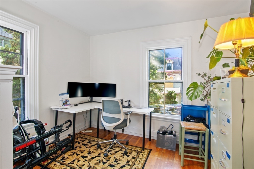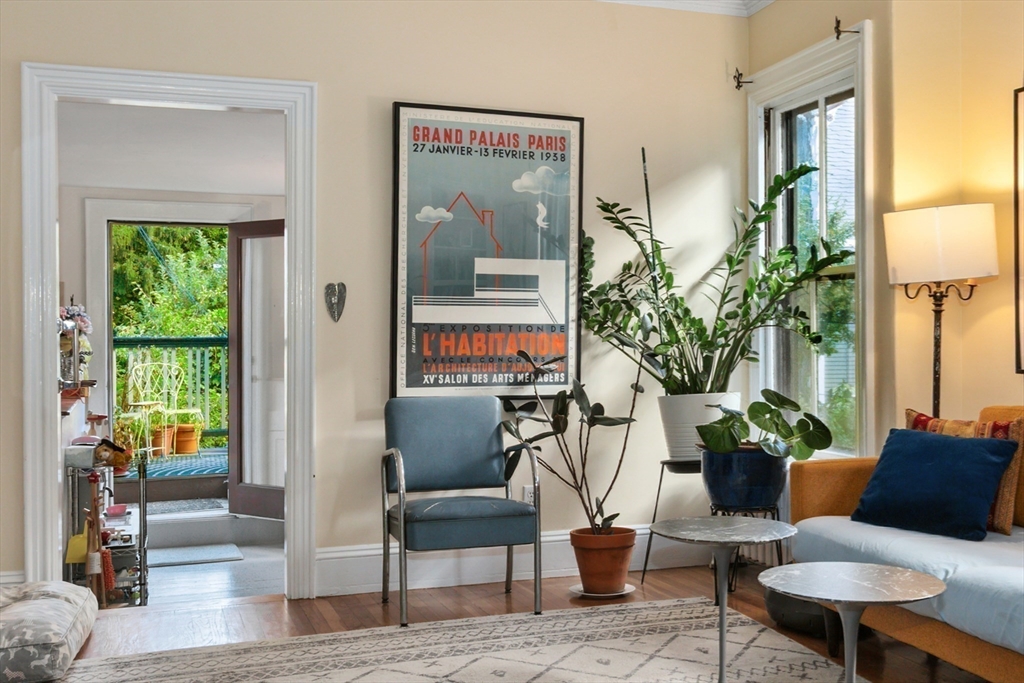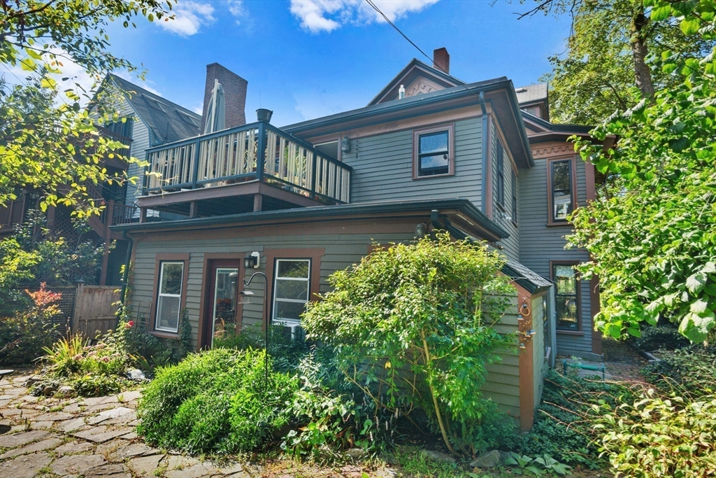 Fantastic location in JP's architecturally significant Historic Sumner Hill. Gorgeous period Victorian details include crown & dentil moldings, bay windows, high ceilings, hardwood floors. The stunning two over two windows offer leafy views, sunlight, and privacy. Renovated kitchens feature stone countertops, glass tile backsplashes, and Shaker cabinets. Flexible floor plans mean that possibilities abound in this home! Apt.1, deeply renovated in 2023, currently includes an open fireplaced living /dining/ kitchen, sitting room, office, primary bedroom, working artist’s studio, 1.5 baths, laundry, a lovely patio, & thoughtful garden plantings. Apt 2 currently includes a lovely 2020 kitchen, dining area, living room, office/playroom, 3-4 bedrooms, 2 baths, laundry, and a tree top deck. Enjoy lively JP Centre shops & restaurants just around the corner. Your commute is great; the Orange Line is just blocks away. WalkScore 98 "Walkers Paradise." Open House Sunday, Oct. 5 12:00-1:30.