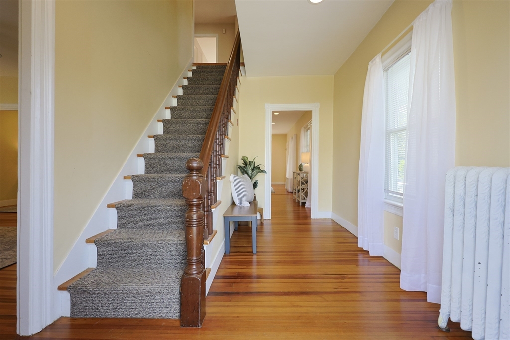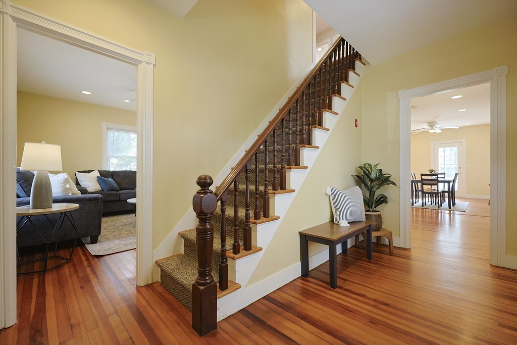 Charming Colonial just under a mile from downtown, train station, restaurants, shops & Sturdy Memorial Hospital. Enter through a covered porch into a cozy mudroom, leading to an oversized open living area offering flexible layout options. Features include a galley kitchen with tiled backsplash, stainless appliances & nice cabinetry. Dining room, living room, office & half bath on the main level. Gorgeous Southern hard pine floors & detailed moulding throughout. Upstairs offers 3 bedrooms, 2 walk-in closets & a bonus space perfect for office or sitting room. Bright, sunny interior with ceiling fans & recessed lighting. ADDED BONUS: Detached 30x25 two-car garage with electricity & multiple outlets—ideal for workshop or potential ADU. Easy access to I-95. A must-see home with space, charm & convenience!
