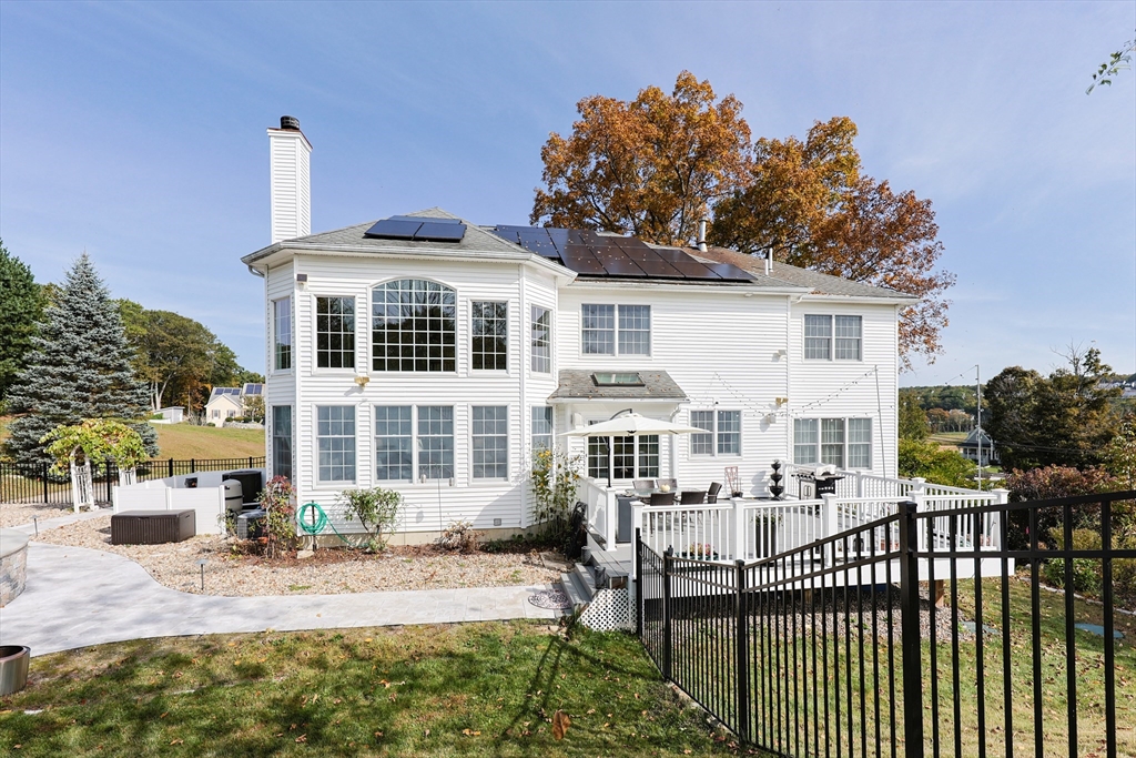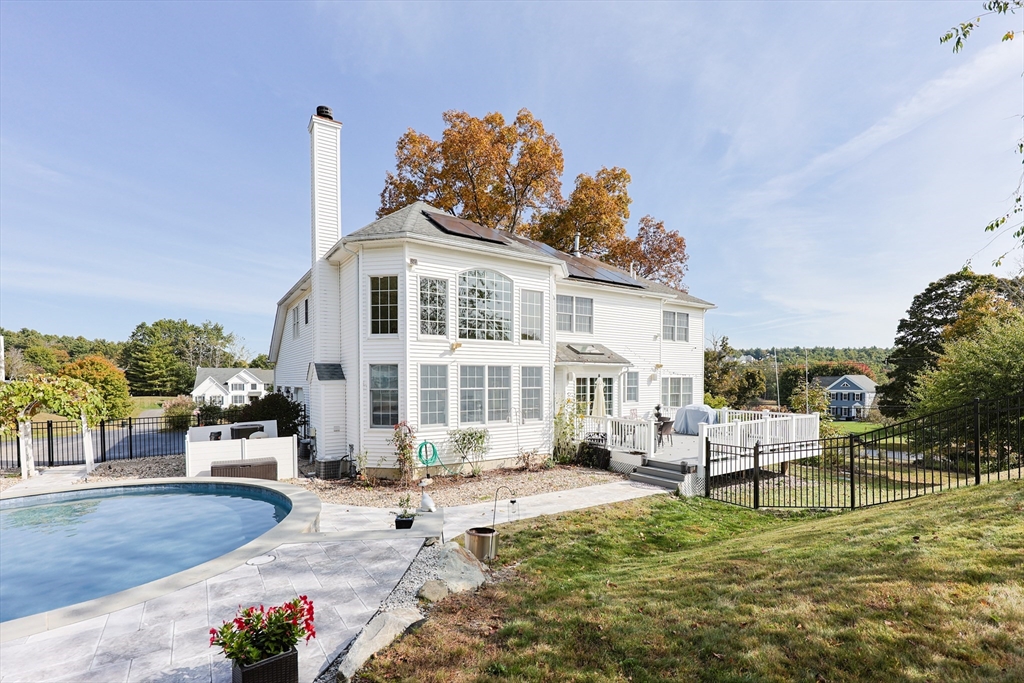 *Seller Says Sell! Offers due by Tues 10/28 @ 5p* This Brick-Front Colonial sits proudly on a corner lot North Grafton Ridge neighborhood. Inside, elegance shines with rich moldings, hardwood floors, and a dramatic, sun-filled two-story great room with a fireplace. The chef’s kitchen impresses with granite counters, a large island, double ovens, and a skylit eat-in area, flowing to formal living and dining, a private office, first-floor laundry, and dual staircases. Upstairs, the luxurious primary suite features hardwood floors, a walk-in dressing room, and a spa-like bath with jetted tub, joined by three spacious bedrooms with oversized closets. Outdoor living delights with a brand NEW heated inground pool & hot tub, oversized deck, bluestone patio, custom pergola, and lush landscaping. A huge walk-out basement ready for your customization. Bonus:owned solar panels = little to NO electric bill, Close to MA Pike & major routes, Hennessey Park & trails is just across the street !