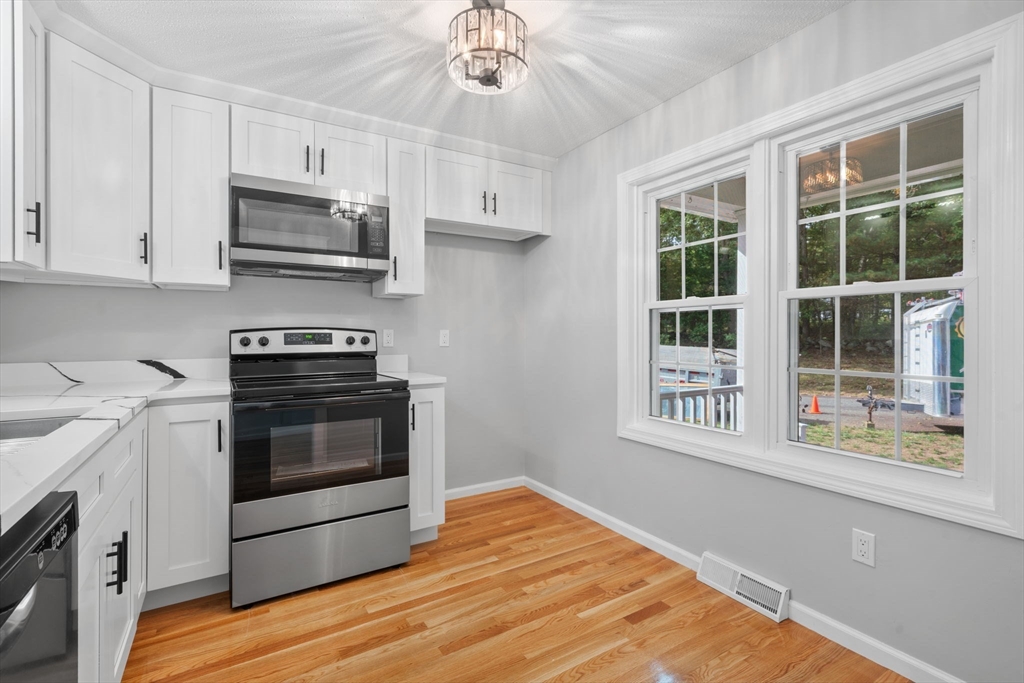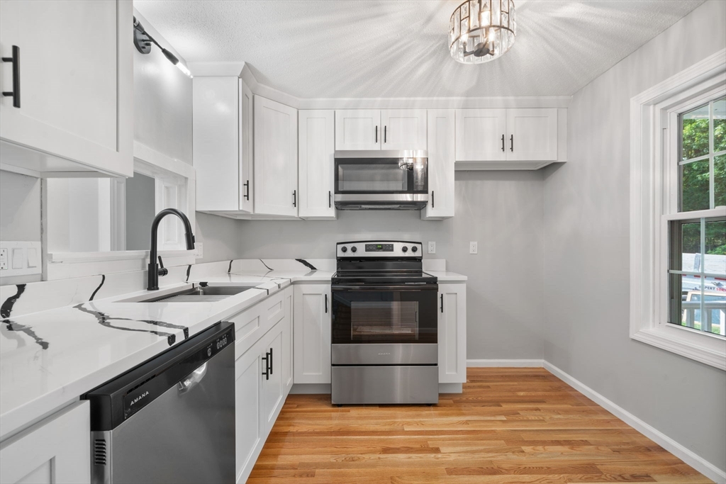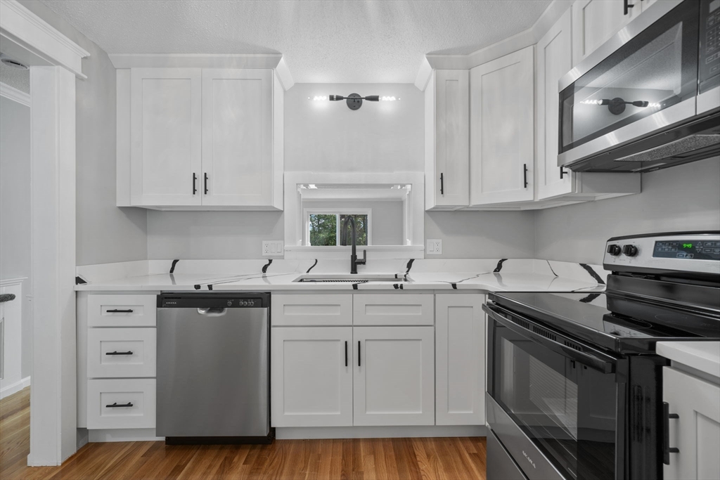 Move-In Ready! Welcome to this beautifully updated 3-bedroom, 1.5-bath townhouse nestled in the desirable Laurelwood of Hopedale community. This inviting home offers a perfect blend of comfort, style, and functionality. Step into the spacious main living area featuring gleaming hardwood floors that flow seamlessly through the living room, dining room, and kitchen. The living room boasts a cozy fireplace, ideal for relaxing evenings, while the kitchen shines with modern quartz countertops, updated cabinetry, and sleek stainless-steel appliances. Enjoy the convenience of a walk-out basement—perfect for a home gym, office, or additional living space—and a detached garage for secure parking and extra storage. Freshly painted throughout, this home exudes a clean, contemporary feel. Whether you're entertaining guests or enjoying quiet moments at home, this townhouse offers the space and amenities to suit your lifestyle. Very easy to show!