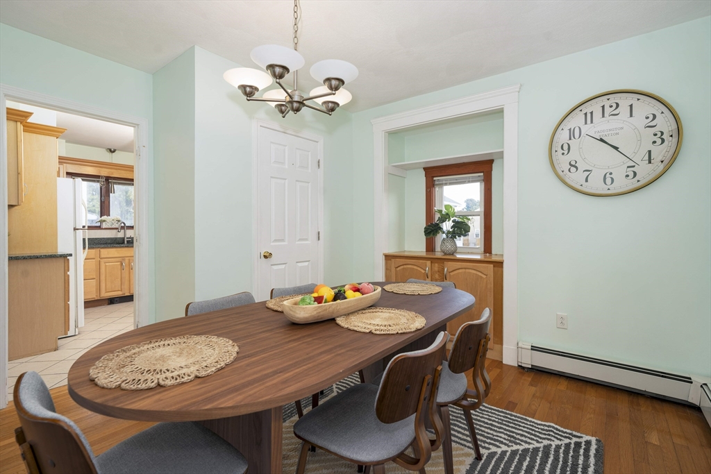 Charming Colonial in Prime Wollaston Location! This well-maintained Colonial is nestled in the highly desirable Wollaston neighborhood, just a short walk to the Red Line T Station, public schools, shops, and a variety of restaurants—with easy access to major highways. The first floor offers a spacious layout featuring an eat-in kitchen, formal dining room, and a sun-filled living room with a cozy wood-burning fireplace. Upstairs, you’ll find a generous primary bedroom, two additional bedrooms, and a full bath. A finished walk-up attic provides flexible space perfect for a 4th bedroom or home office. The finished basement includes a full bathroom, a family/playroom, and a laundry area. Enjoy the outdoors in the private, fenced-in backyard with a deck—plus a large detached garage offering one-car parking and additional storage. Don’t miss this rare opportunity to own a home in this sought-after location!