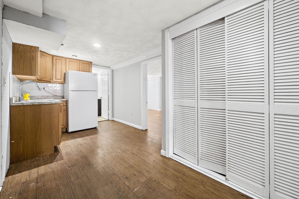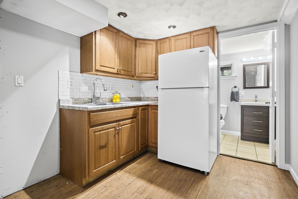 This remarkably spacious saltbox is much larger inside than it appears and offers outstanding flexibility with 4 bedrooms, 1.5 baths, and two driveways. Step into the updated kitchen and flow into the bright, light-filled living room. The main level features not one but two convenient bedrooms—ideal for guests or office space—along with a full bath. Upstairs are the primary bedroom, another bedroom, and a half bath. The fully finished lower level is a major bonus, with space for an in-law suite, guest quarters, or extended living, complete with kitchenette/dining area, bedroom, office, laundry, full bath, and utility room. Enjoy outdoor entertaining on the back deck or in the fenced yard. Municipal water/sewer and baseboard oil heat. Recent updates include a radon mitigation system, reglazed tub, refinished hardwood floors, and freshly painted rooms. Located in Peabody, you’re close to major highways, shopping, dining, parks, medical facilities, and vibrant downtown Salem and Danvers.