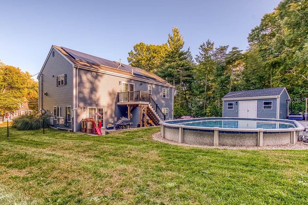 Raised ranch home in Desirable East Taunton neighborhood. This property offers the perfect blend of sophisticated style and comfortable living. Located just minutes from Schools, major highways, public transportation (T stations), and shopping. Open floor plan, showcasing gleaming hardwood floors throughout the main living areas. Beautiful stone patio, perfect for outdoor entertaining, fenced in yard complete with an inviting partial in-ground pool. Stunning kitchen, featuring custom cabinetry, granite countertops, tile backsplash, a convenient center island, stainless steel appliances, perfect for both functionality and effortless entertaining. The living room offers an inviting atmosphere, complete with a gas fireplace, for relaxing evenings. Additional features include second kitchen for potential in-law, owned solar panels to significantly reduce your energy costs, an oversized shed for ample storage, central air conditioning, and a central vacuum system for ultimate convenience.