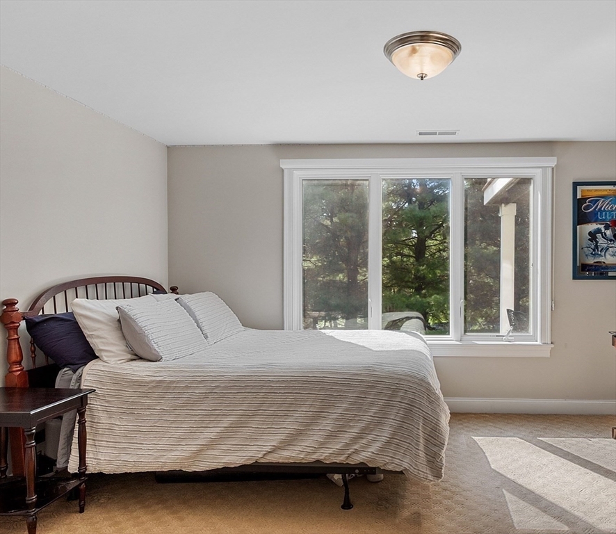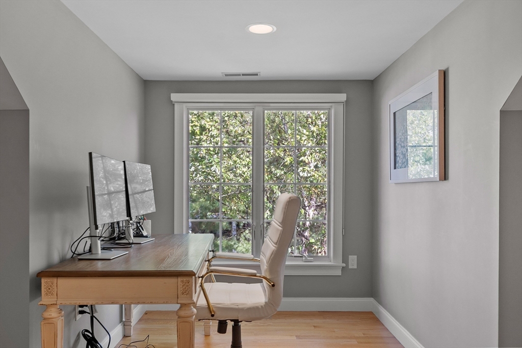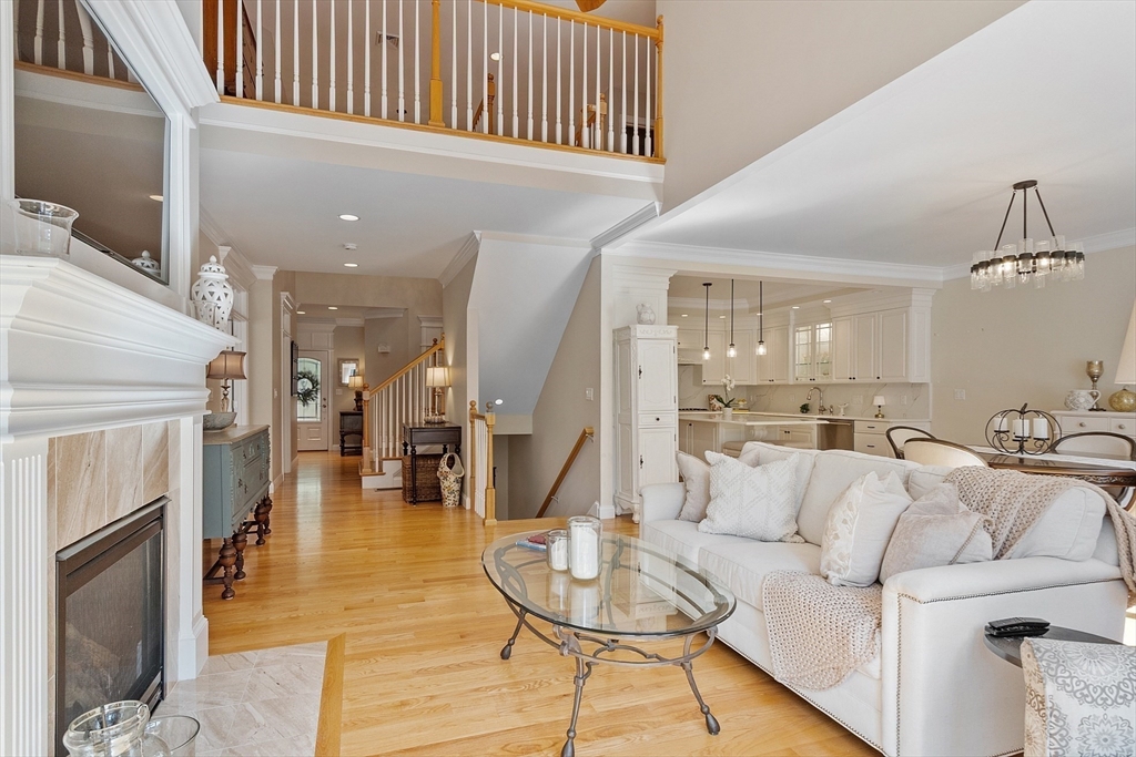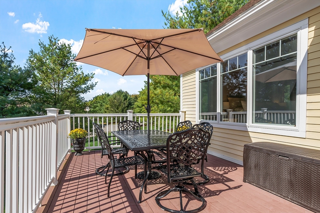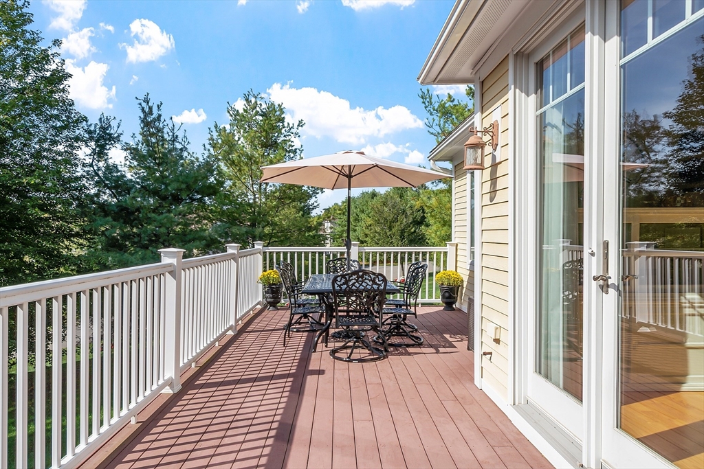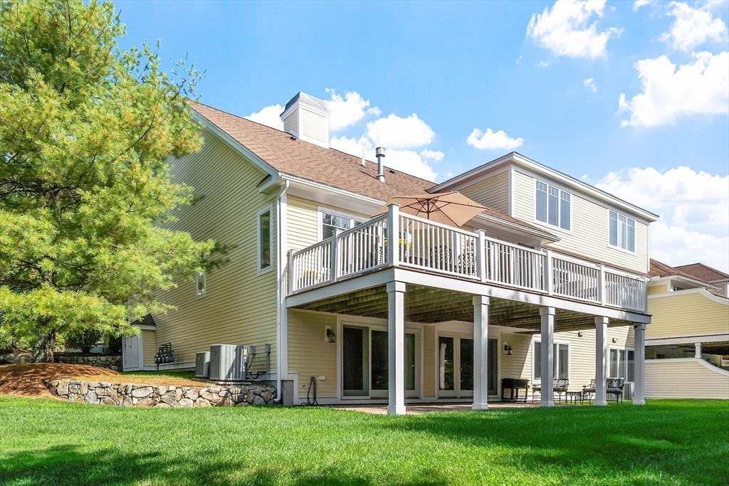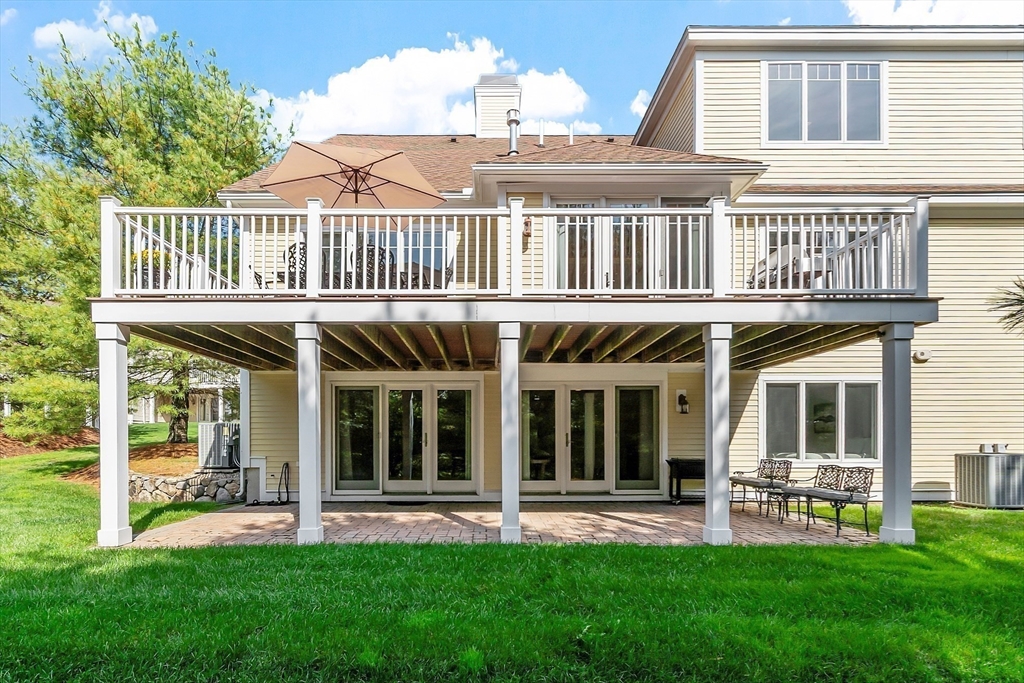 Gorgeous End Unit Townhome at Andover Country Club! Nestled on a quiet private driveway, this stunning, 4 bedroom, custom home offers luxurious living in a serene setting. Enjoy soaring ceilings, gleaming hardwoods throughout, and an elegant two-story staircase. Open concept living featuring a spacious living/dining area that flows into the updated chef’s kitchen with quartz counters, premium appliances, and breakfast nook. The main level, primary suite offers a spa-like bath w/soaking tub, shower, and a custom walk-in closet. Upstairs, you'll find two spacious bedrooms (one w/private ensuite), a private office, a full bath, and a media/family room. The huge deck off the living room adds outside living/entertaining options. The lower level offers additional, flexible living space with a 4th bedroom, full bath, and an entertaining space with a custom bar and sliders to a private patio. Attached 2-car garage, and extra deeded parking. All just a nine iron to all ACC has to offer!