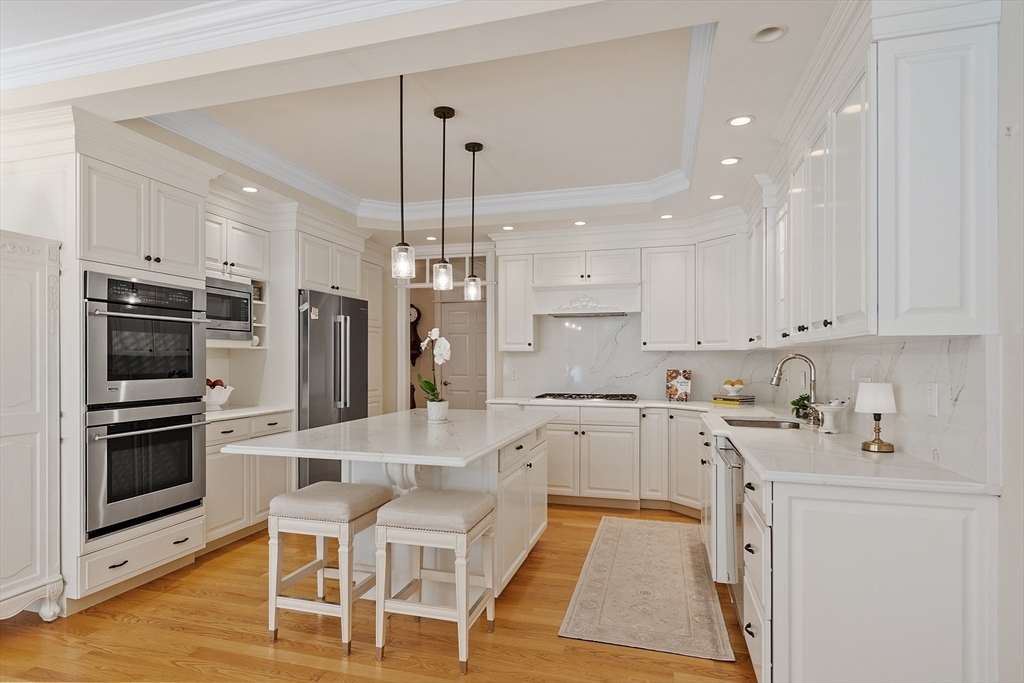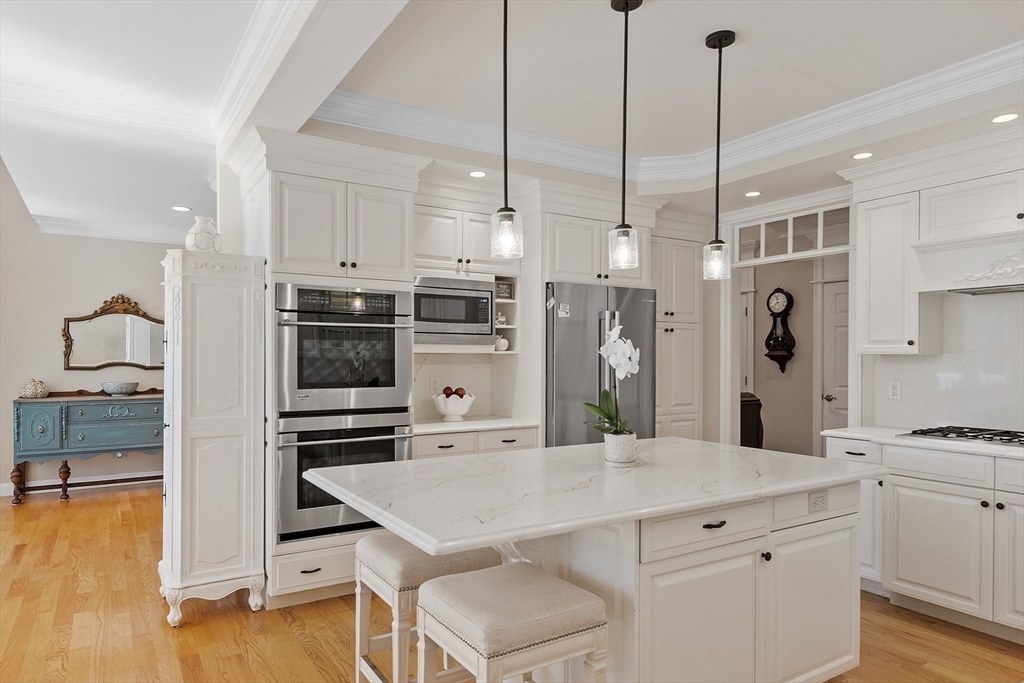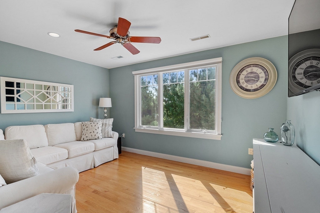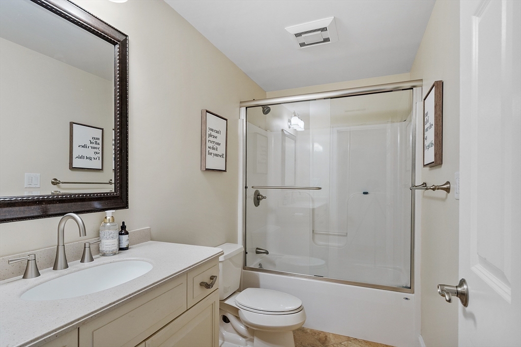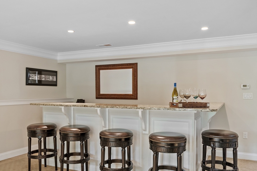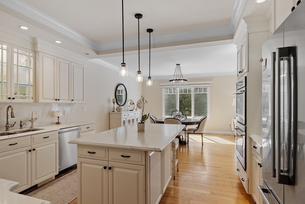 Gorgeous End Unit Townhome at Andover Country Club! Nestled on a quiet private driveway, this stunning, 4 bedroom, custom home offers luxurious living in a serene setting. Enjoy soaring ceilings, gleaming hardwoods throughout, and an elegant two-story staircase. Open concept living featuring a spacious living/dining area that flows into the updated chef’s kitchen with quartz counters, premium appliances, and breakfast nook. The main level, primary suite offers a spa-like bath w/soaking tub, shower, and a custom walk-in closet. Upstairs, you'll find two spacious bedrooms (one w/private ensuite), a private office, a full bath, and a media/family room. The huge deck off the living room adds outside living/entertaining options. The lower level offers additional, flexible living space with a 4th bedroom, full bath, and an entertaining space with a custom bar and sliders to a private patio. Attached 2-car garage, and extra deeded parking. All just a nine iron to all ACC has to offer!