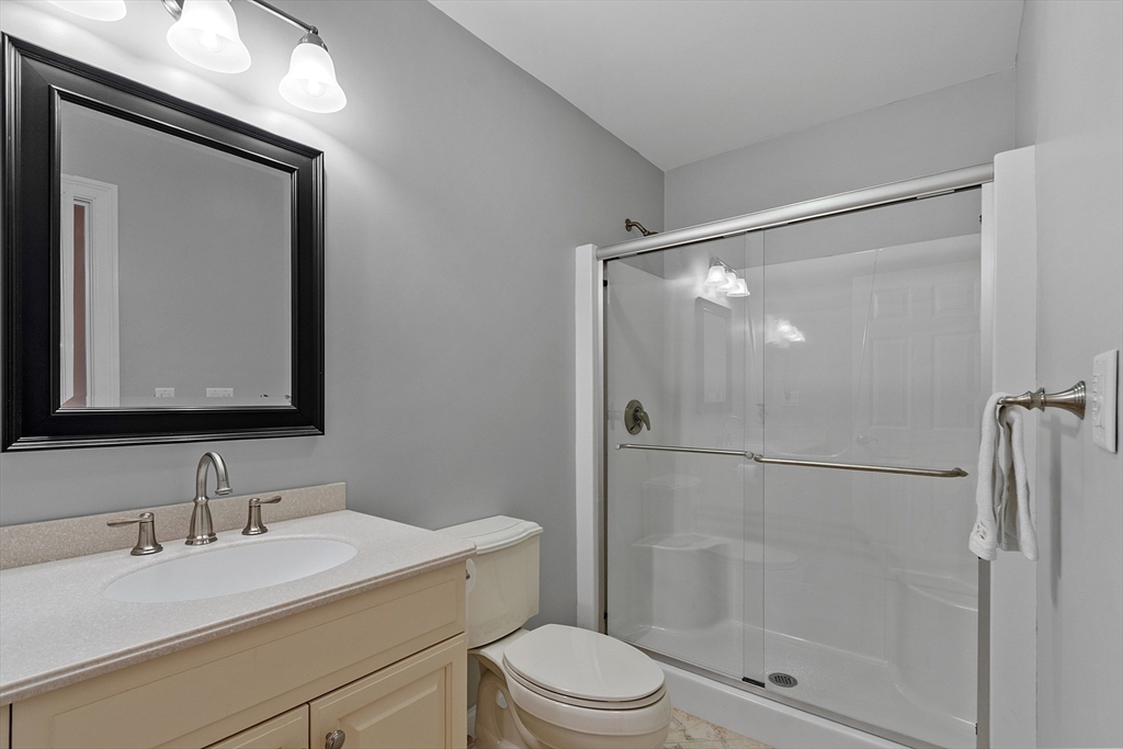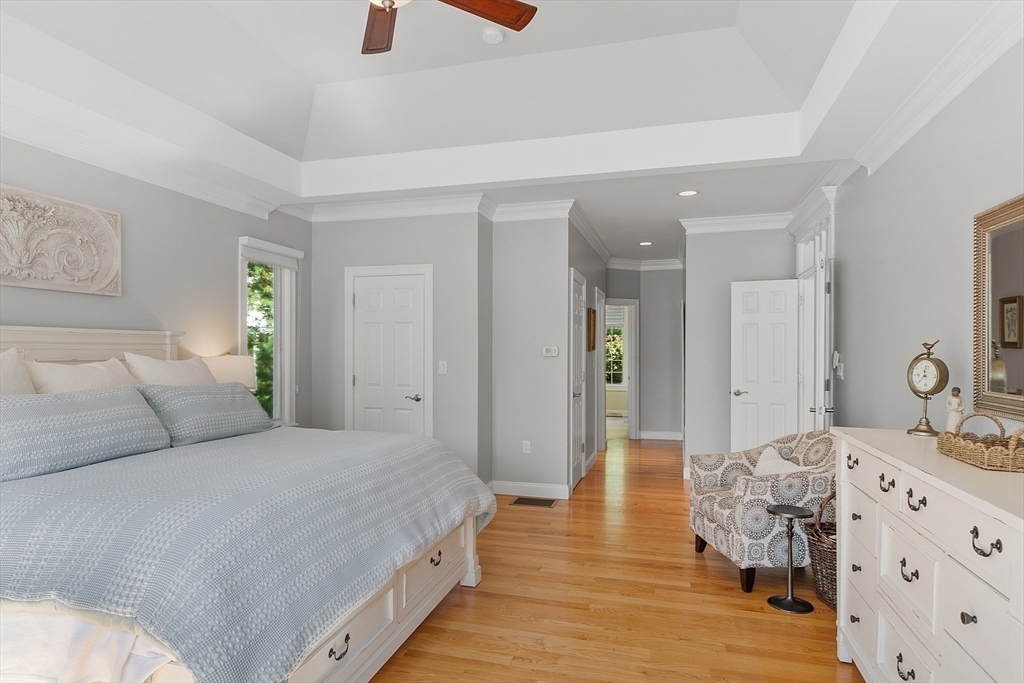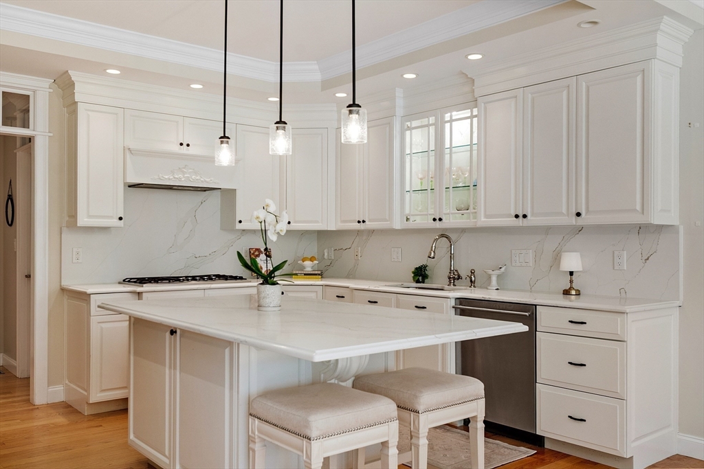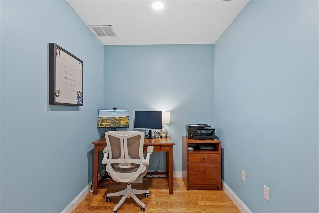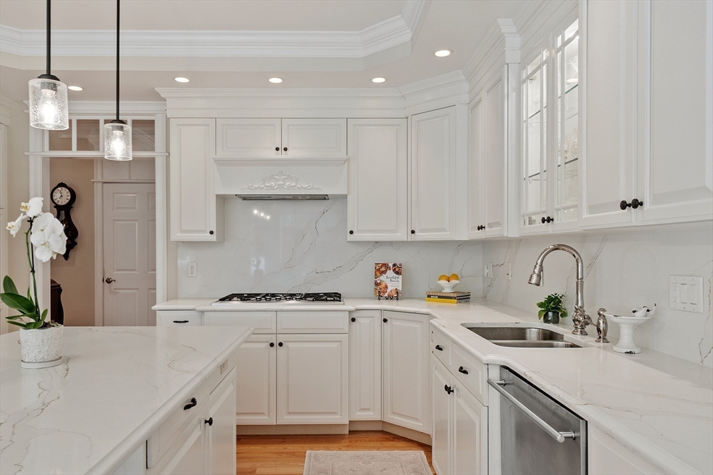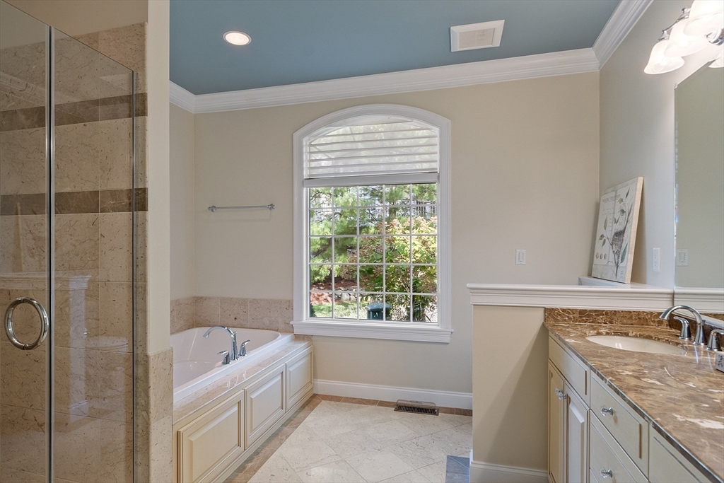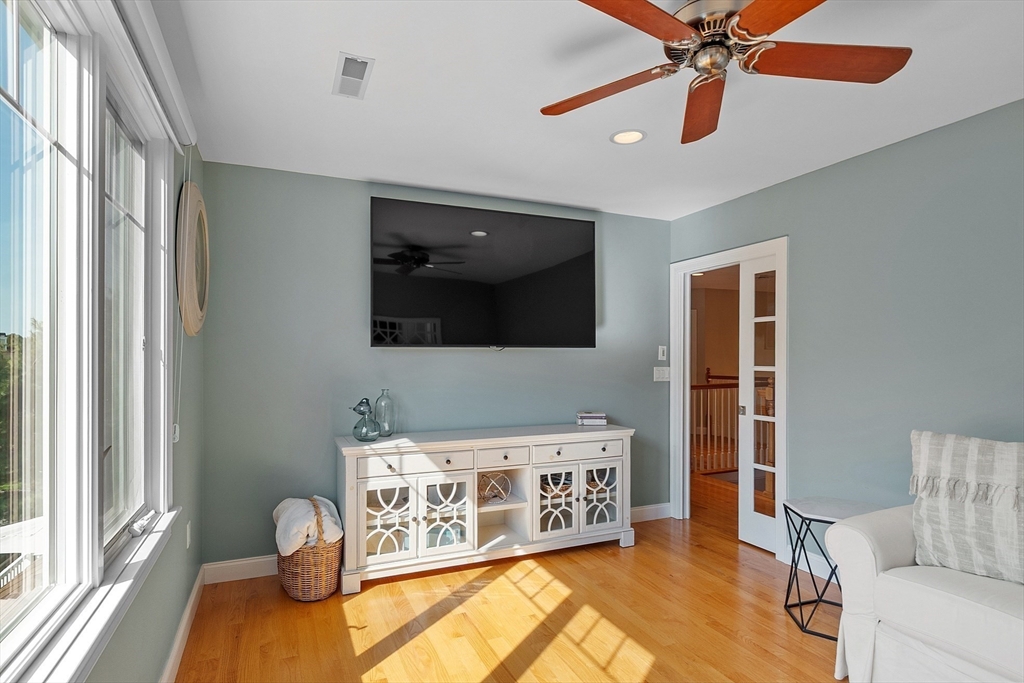 Gorgeous End Unit Townhome at Andover Country Club! Nestled on a quiet private driveway, this stunning, 4 bedroom, custom home offers luxurious living in a serene setting. Enjoy soaring ceilings, gleaming hardwoods throughout, and an elegant two-story staircase. Open concept living featuring a spacious living/dining area that flows into the updated chef’s kitchen with quartz counters, premium appliances, and breakfast nook. The main level, primary suite offers a spa-like bath w/soaking tub, shower, and a custom walk-in closet. Upstairs, you'll find two spacious bedrooms (one w/private ensuite), a private office, a full bath, and a media/family room. The huge deck off the living room adds outside living/entertaining options. The lower level offers additional, flexible living space with a 4th bedroom, full bath, and an entertaining space with a custom bar and sliders to a private patio. Attached 2-car garage, and extra deeded parking. All just a nine iron to all ACC has to offer!