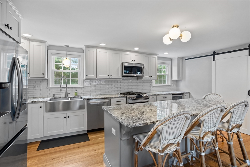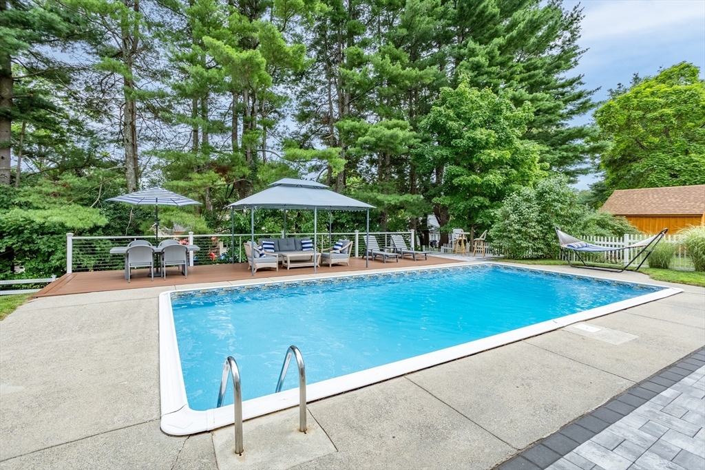 Fall in love with this meticulously maintained & beautifully updated 4-bedroom, 2.5-bath Cape home in a sought-after, centrally located neighborhood. Savor the chic open-concept kitchen graced with granite center island, breakfast bar, gas range, beverage chiller & pantry, flowing seamlessly into a sun-drenched living room with cozy fireplace—perfect for gatherings with family & friends. Enjoy the convenience of a spacious mudroom, the beauty of hardwood floors & the versatility of a circa 2022 spacious finished walk-out lower level with half bath. Step outside to your breathtaking backyard retreat: a composite deck overlooking a spectacular fenced yard where laughter & memories are made. Bask in the sparkling inground pool, surrounded by patios & decks designed for poolside fun, relaxation & entertaining. Relish recent updates including ‘17 roof, '18 heat, ’21 hot water & ‘25 mini splits. A rare find offering desirable updates, neighborhood appeal & a resort-like lifestyle!