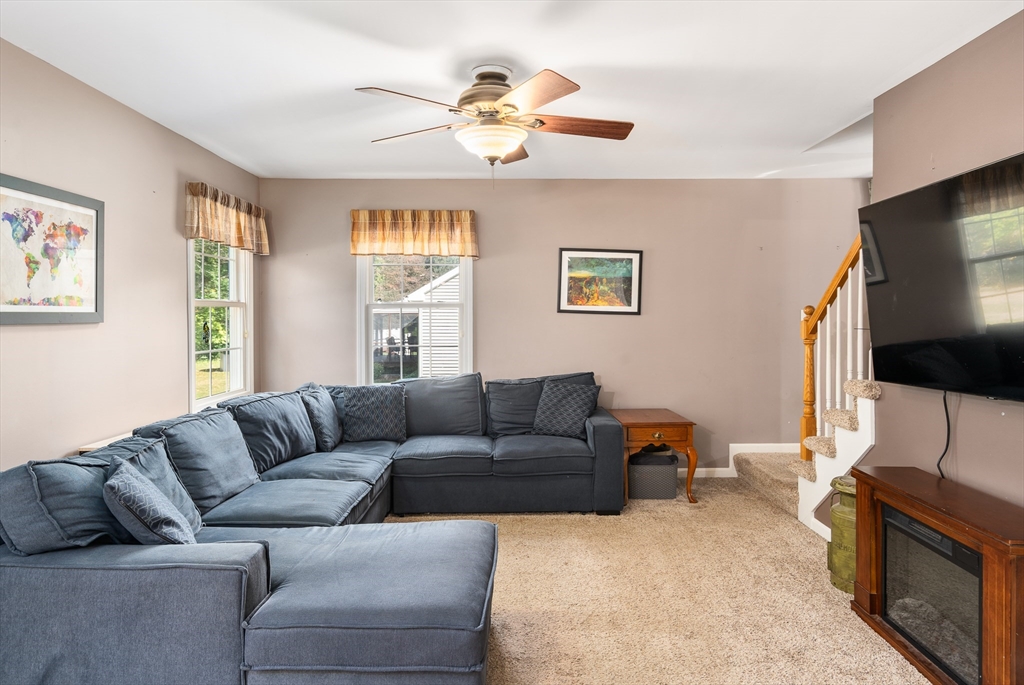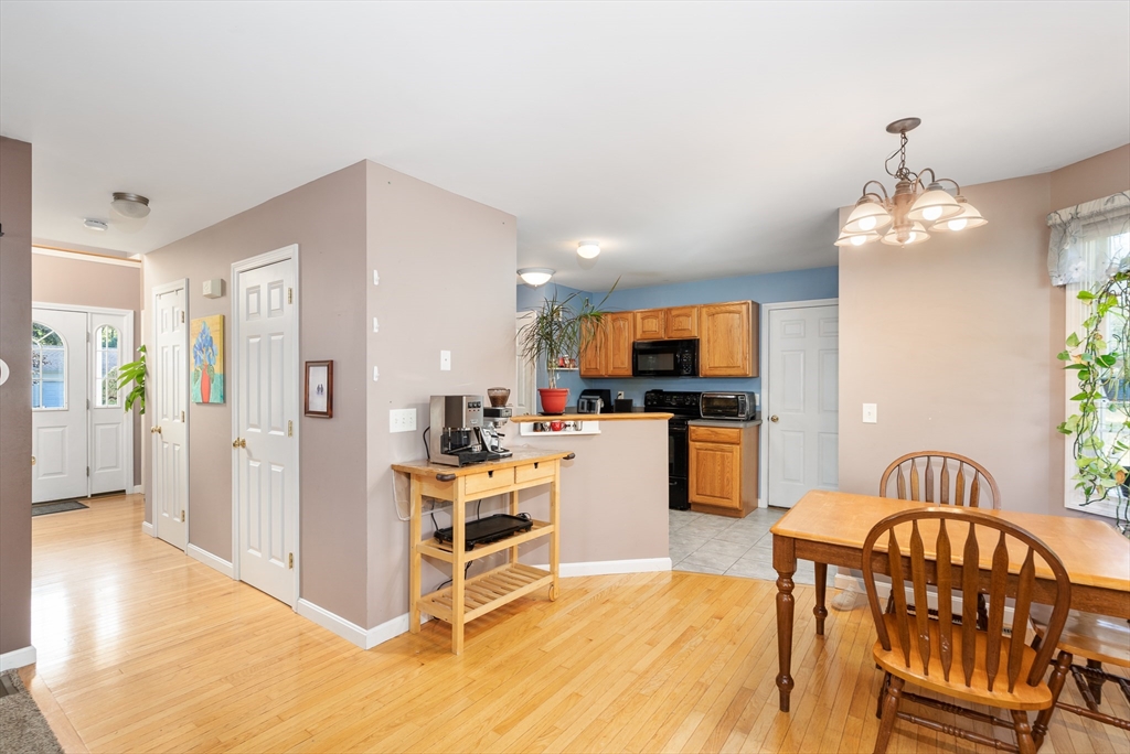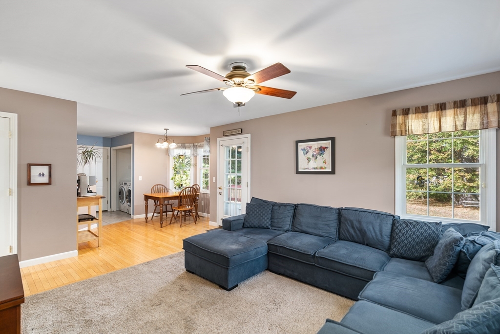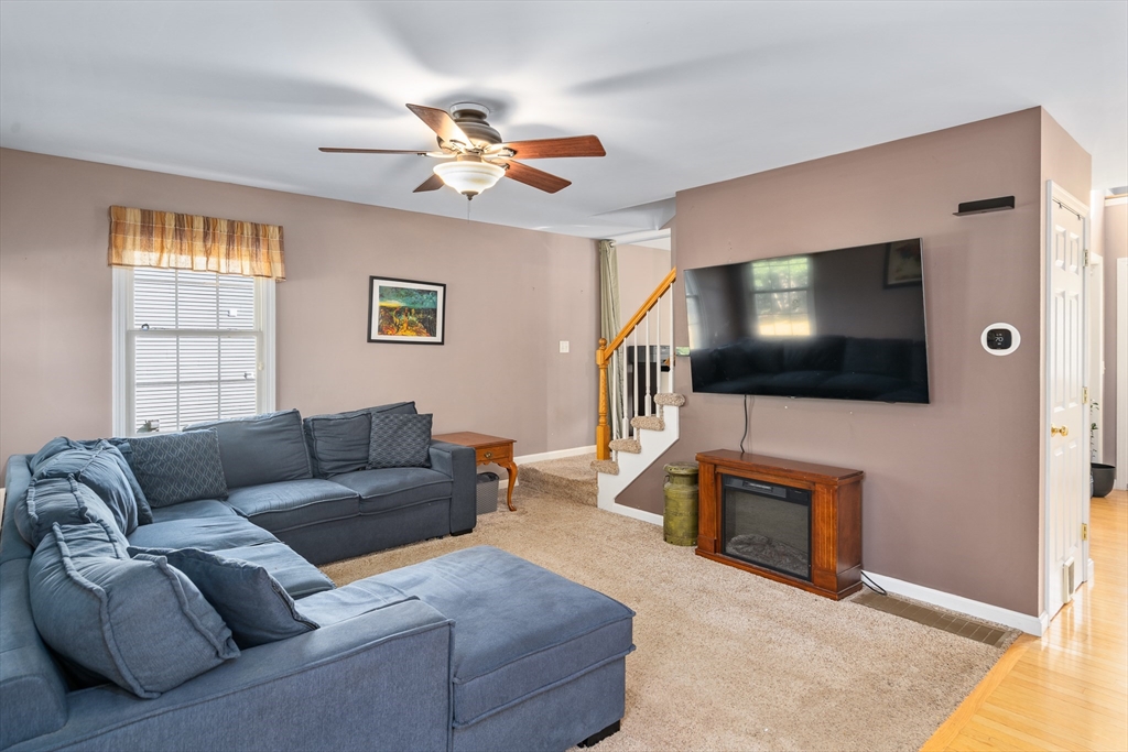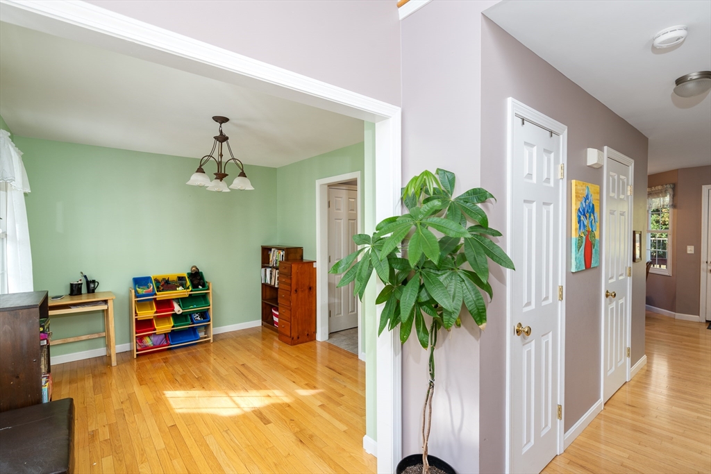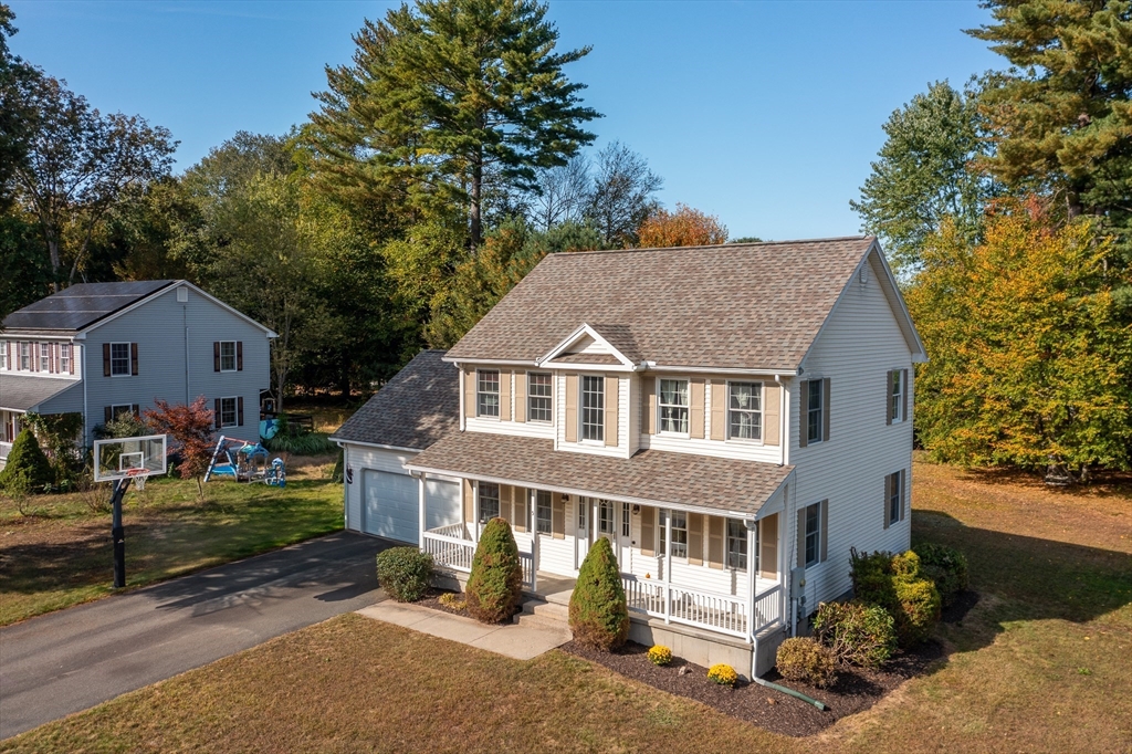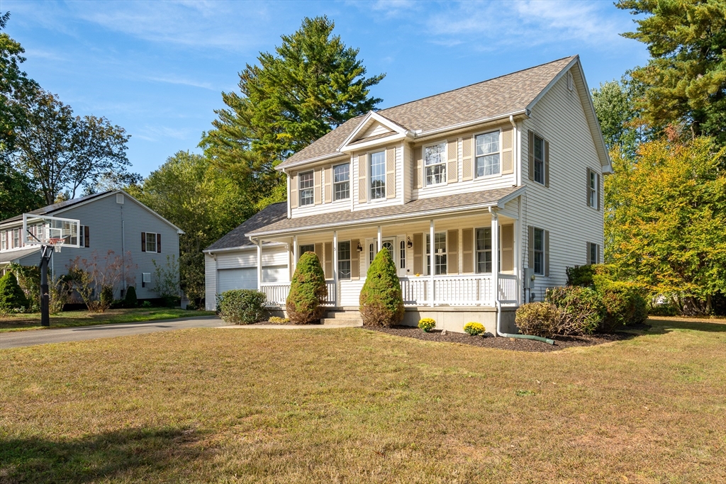 Charming colonial in one of Easthampton's most sought after neighborhoods. The inviting front porch leads to a spacious first floor with living room open to kitchen with breakfast nook, formal dining room with hardwood floors, office or family room, convenient 1/2 bath and laundry. Upstairs are three bedrooms, including a primary bedroom with ensuite bath with a jacuzzi tub and separate shower, plus an additional full bath. Relax on the deck overlooking the peaceful backyard. Recent updates include a newer roof, furnace, hot water and central air condenser and also featuring economical natural gas heat and central air. Well maintained home with beautiful curb appeal!