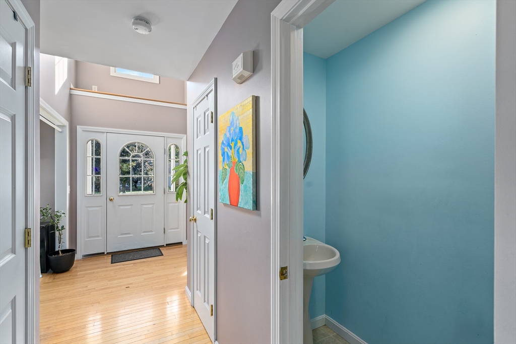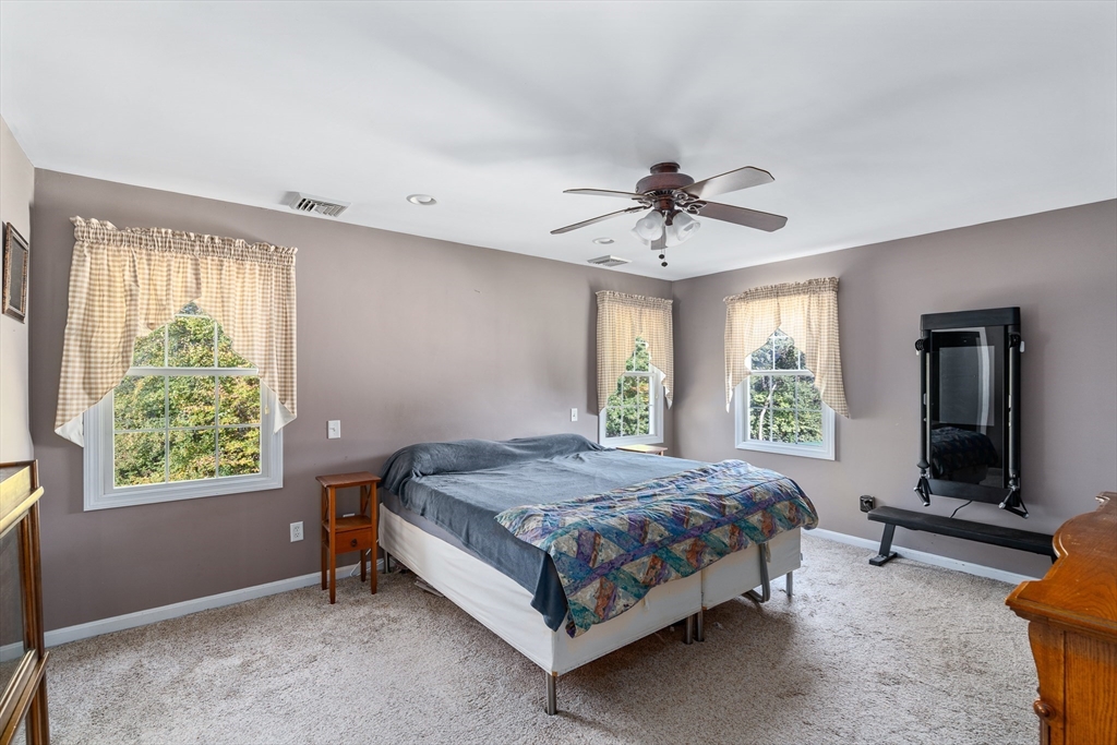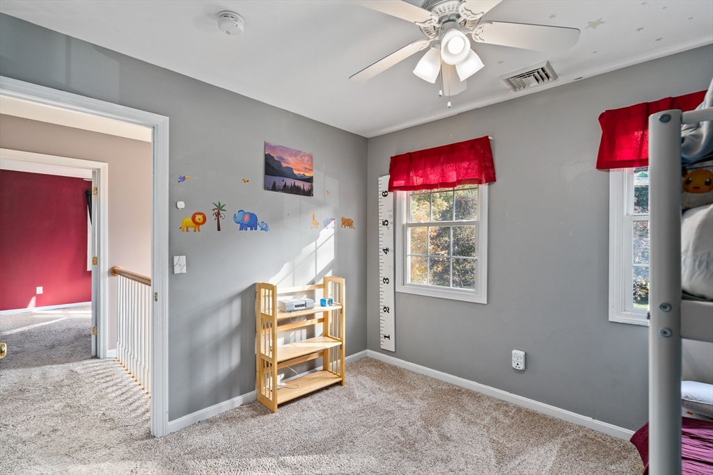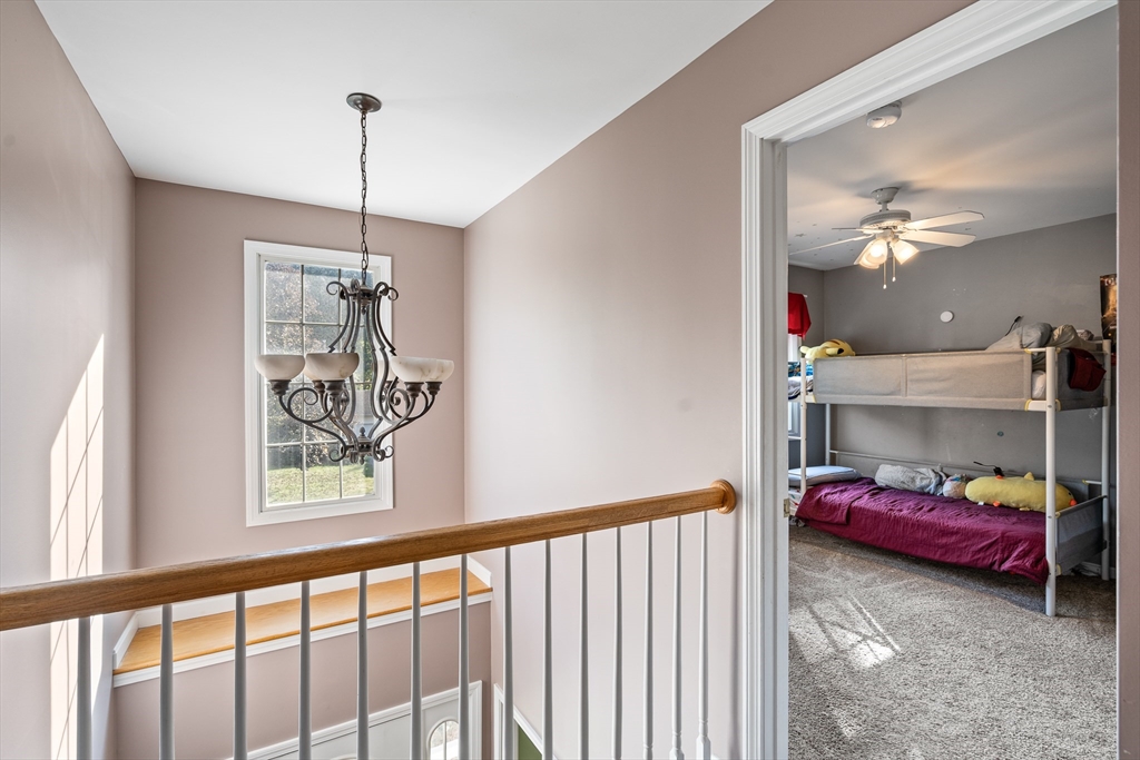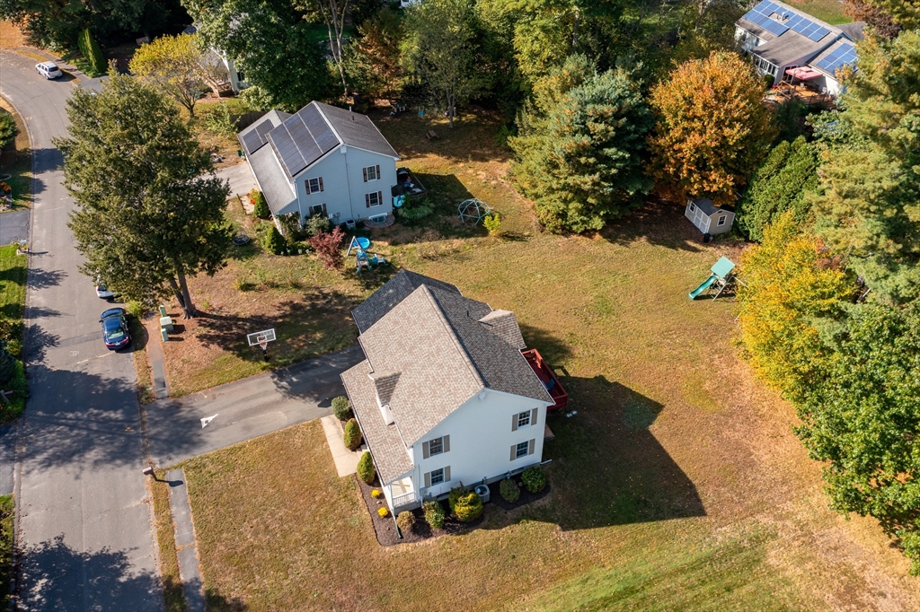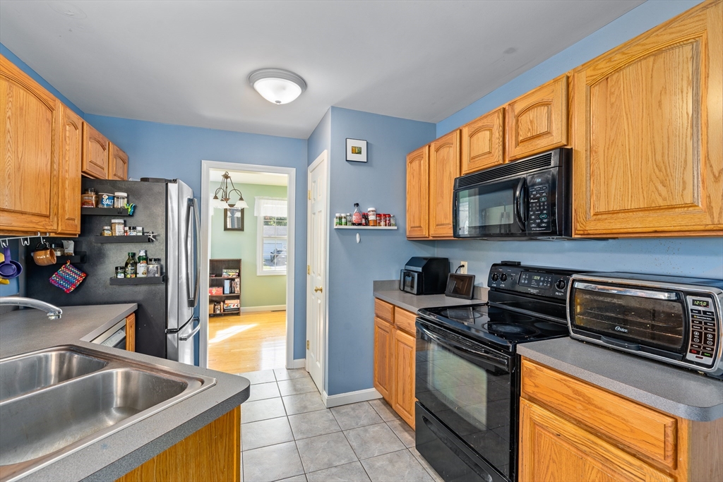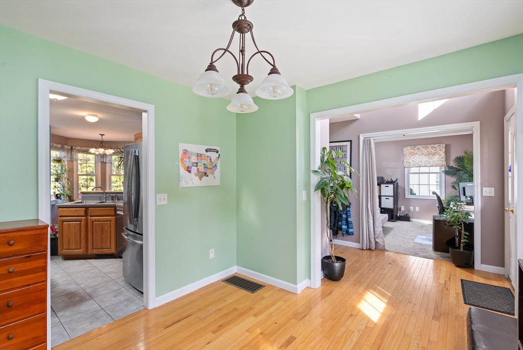 Charming colonial in one of Easthampton's most sought after neighborhoods. The inviting front porch leads to a spacious first floor with living room open to kitchen with breakfast nook, formal dining room with hardwood floors, office or family room, convenient 1/2 bath and laundry. Upstairs are three bedrooms, including a primary bedroom with ensuite bath with a jacuzzi tub and separate shower, plus an additional full bath. Relax on the deck overlooking the peaceful backyard. Recent updates include a newer roof, furnace, hot water and central air condenser and also featuring economical natural gas heat and central air. Well maintained home with beautiful curb appeal!