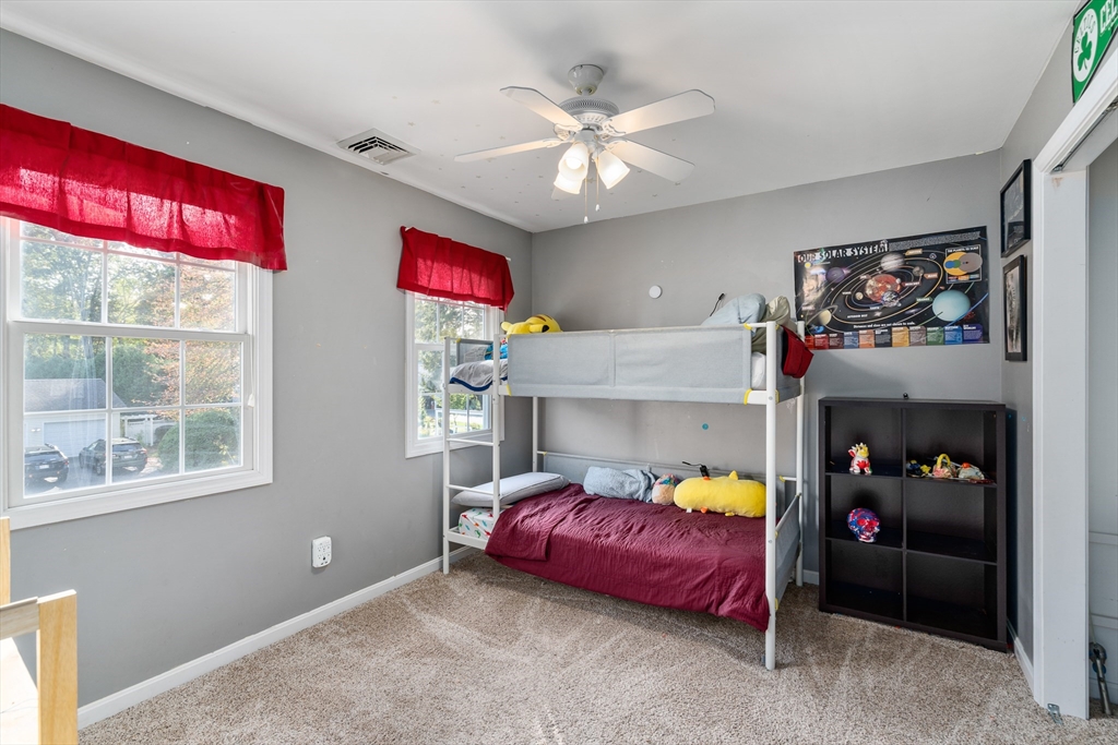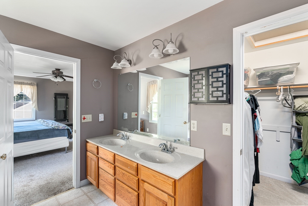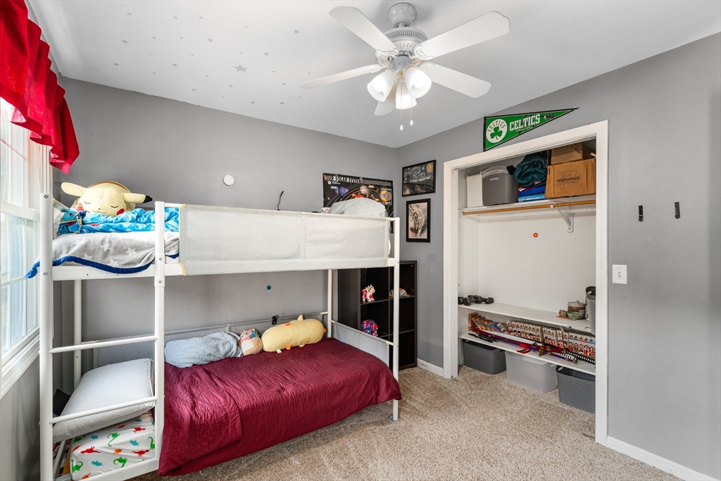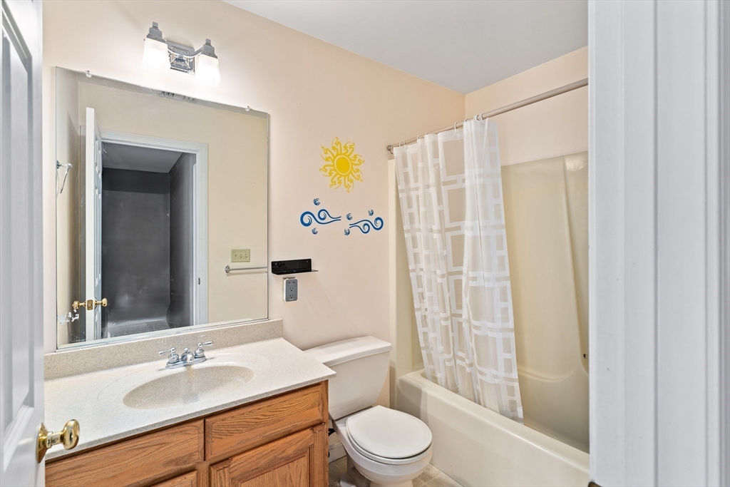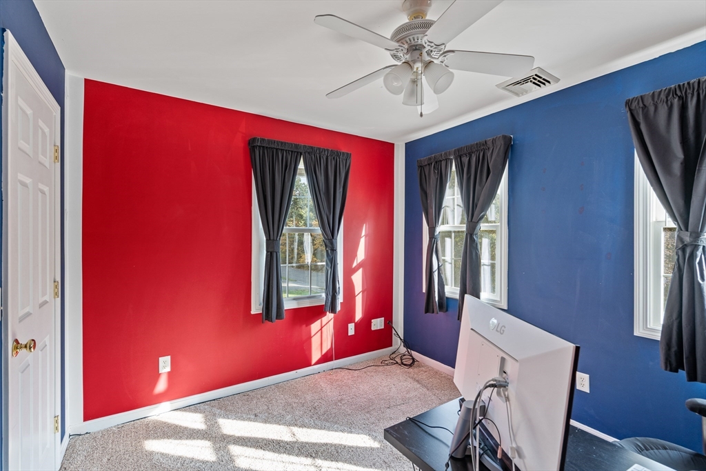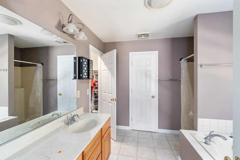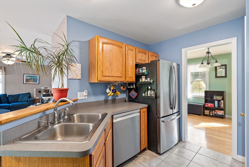 Charming colonial in one of Easthampton's most sought after neighborhoods. The inviting front porch leads to a spacious first floor with living room open to kitchen with breakfast nook, formal dining room with hardwood floors, office or family room, convenient 1/2 bath and laundry. Upstairs are three bedrooms, including a primary bedroom with ensuite bath with a jacuzzi tub and separate shower, plus an additional full bath. Relax on the deck overlooking the peaceful backyard. Recent updates include a newer roof, furnace, hot water and central air condenser and also featuring economical natural gas heat and central air. Well maintained home with beautiful curb appeal!