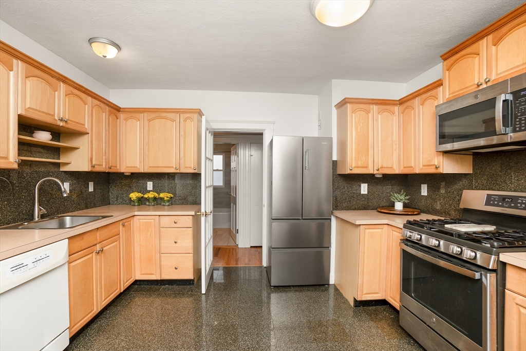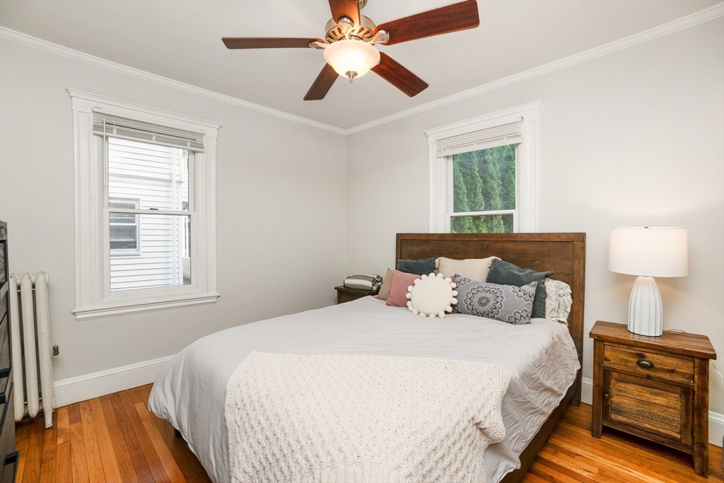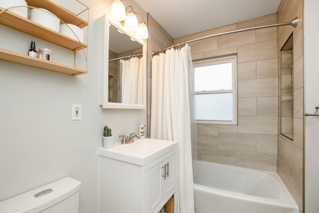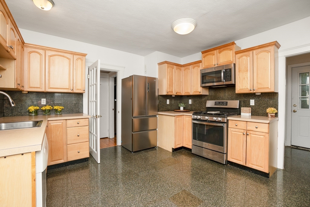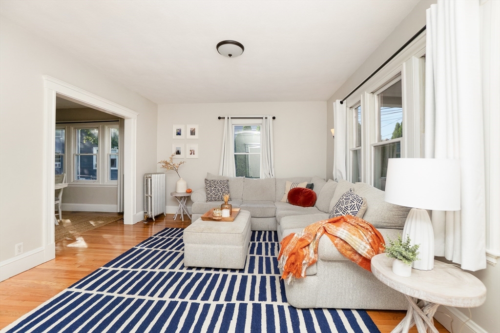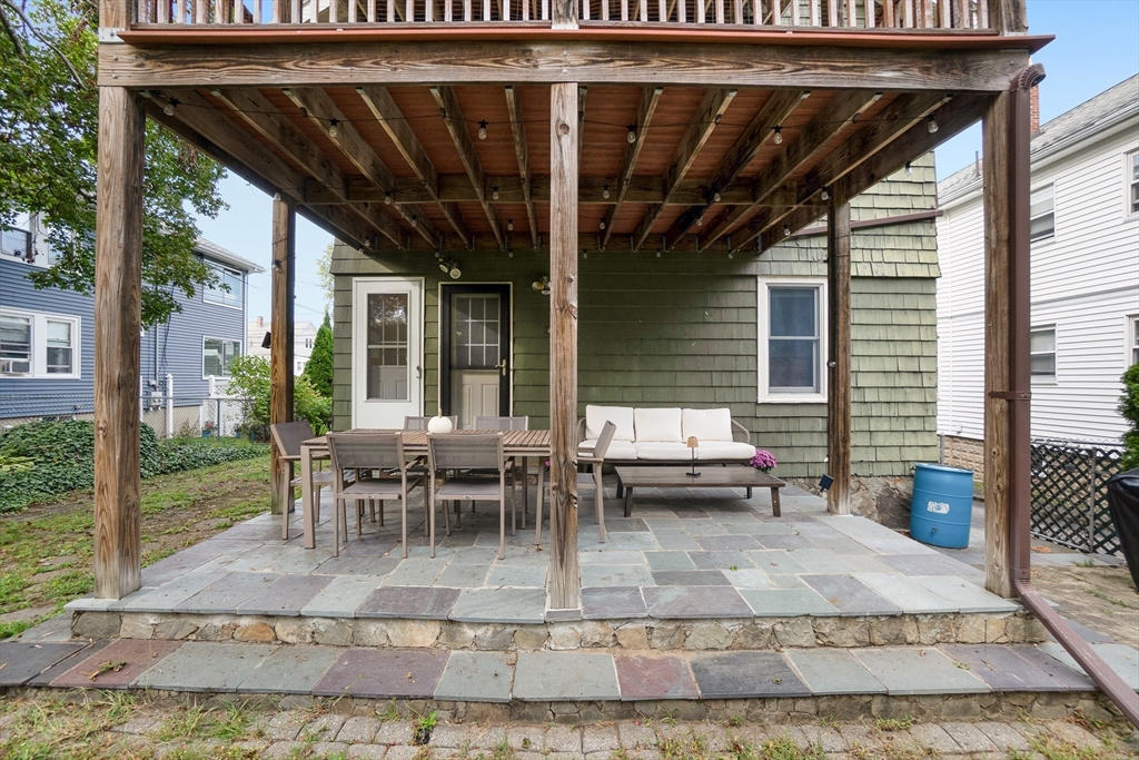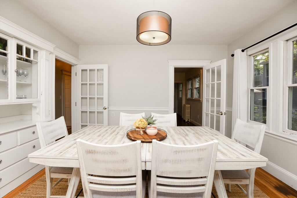 Beautiful 3 bedroom condo in sought after Lowell School district! This home is warm and welcoming from the moment you walk into the entryway. Bright and sunny living room with hardwood flooring flows into a lovely dining room w/charming built in cabinet and French door. The large, EIK with oak cabinetry has French door leading to two bedrooms and an updated full bath. Finished, heated lower level can be used as a true 3rd bedroom, family room or home office space. Laundry area and good-sized storage room. Enter the backyard with plenty of greenspace, from either level to find an inviting, exclusive use, covered patio, perfect for enjoying morning coffee, reading a good book or entertaining friends and family! The 2-car garage with direct access to the 1st level and side storage unit also includes exclusive driveway parking. Enjoy new schools, Victory Field, parks & restaurants, trendy Arsenal Yards and close proximity to Harvard Square, Boston and the Mass Pike. A real gem!
