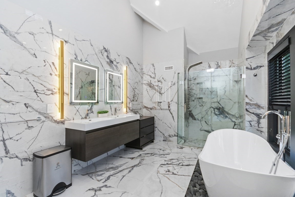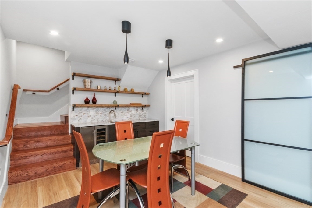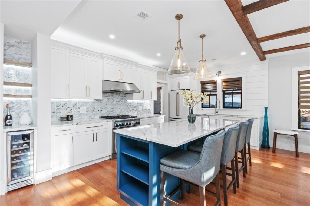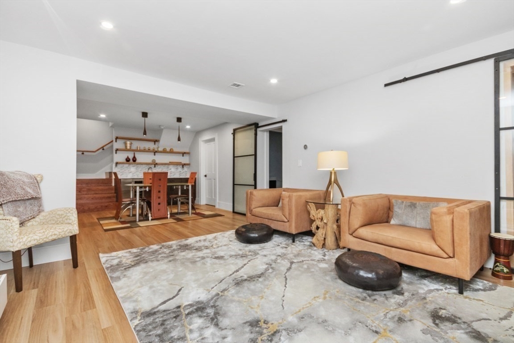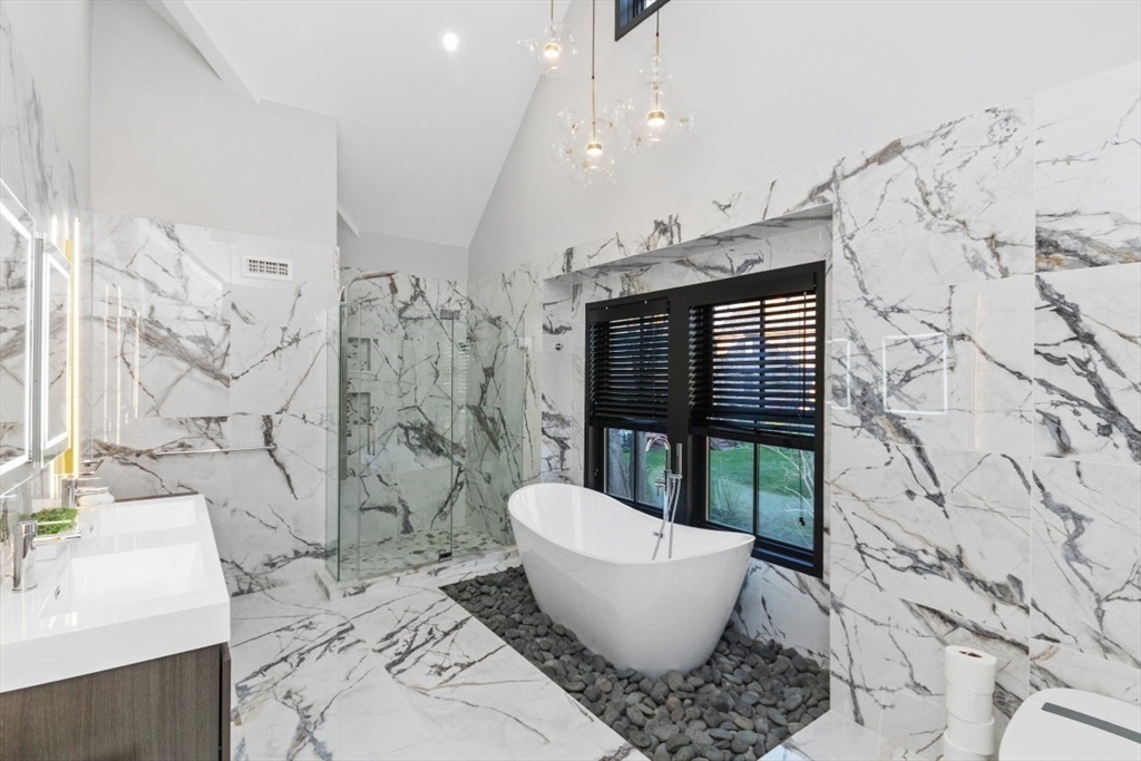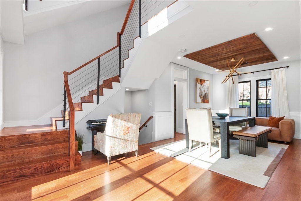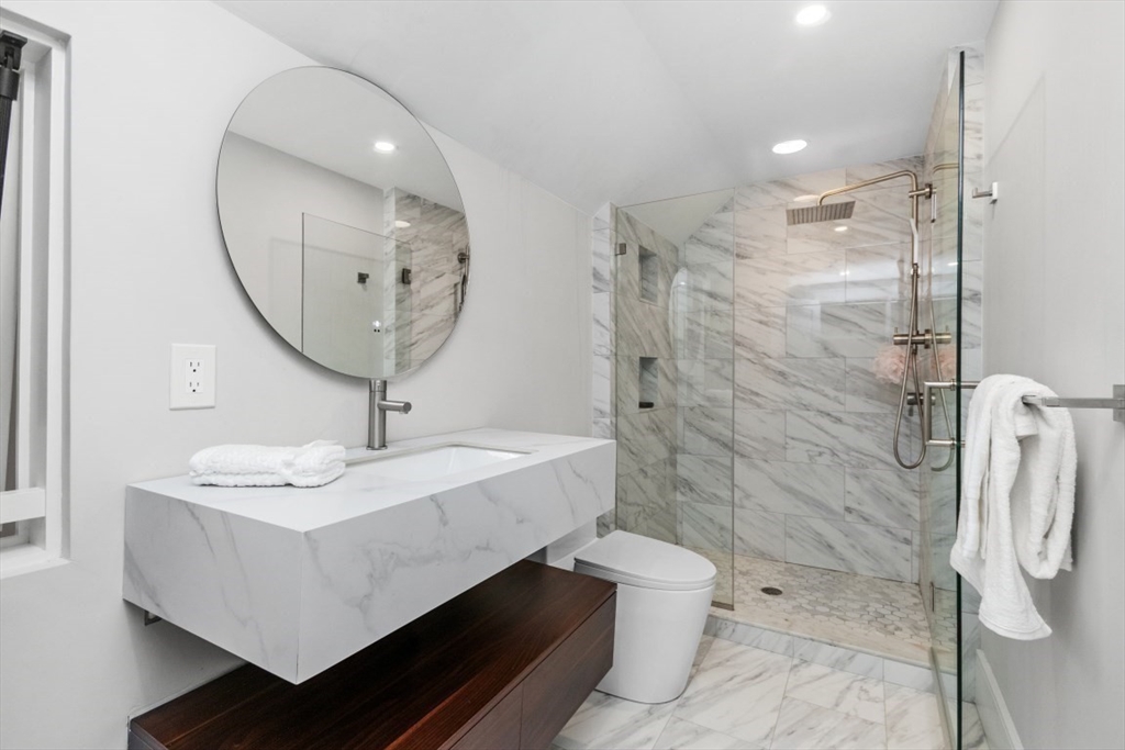 This sophisticated new construction of a 4 bed, 4.5 bath townhouse leaves no elegance unspared. Enter through the thoughtful mudroom to a stunning kitchen with quartz countertops, elite appliances, and tasteful accents. Relax at the island or enjoy a more formal meal in the open dining room with beautiful lighting and great fixtures. Complete with a beverage station and walk in pantry, this house is built for entertaining in every room. Move from the bright family room with gas fireplace and custom built-ins to the elegant porch with private yard or head downstairs to the wet bar with separate wine closet. And when you want peace from it all, enjoy the master bedroom w/ cathedral ceilings and spa like bathroom including radiant flooring and free-standing tub. Ample storage with built in walk-in closets round out the master; each spacious bedroom has generous closets. With lower level perfect for guest or in-law suite, garage w/upper finished area and 2 deeded spots, this home shines!