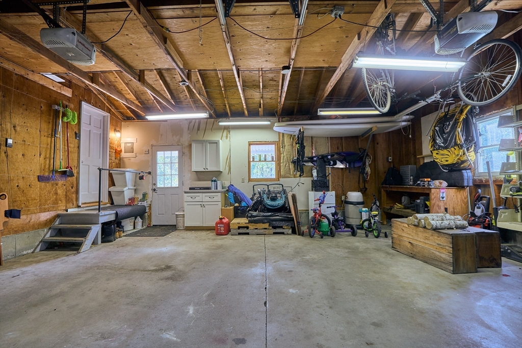 Comfortable & Cozy Home on 2+ acres of Open Yard & Woods. Spacious Open Living Area. Large Bright Kitchen has nice island w/built-in stove & Breakfast Bar. The roomy Dining Area is accented w/wainscoting, crown molding & mini-split. Large Living Rm is open to the Kit. Cozy wood burning fireplace, bay window, crown molding, wainscoting & recessed lighting enhances LR. The bright Sunroom off the DA has newer pellet stove & existing flue pipe. Sunrm. overlooks calming open & wooded backyard. Modern Half-Bath on the first floor. Main Bedroom w/mini-split, double door closet & backyard views. 2nd Bedroom has nice built-in bookshelves & desk. Small walk-in closet too. 3rd Bedroom has crown molding, closet. Full Bath w/tile floor & linen closet. Full Basement w/built-in shelving & Laundry Area. The Safe is secured to the floor & will remain. Backyard has a covered patio area, shed, fire pit & above ground pool. Plenty of space for gardens! Explore nature in the woods. Roomy 2 car garage.