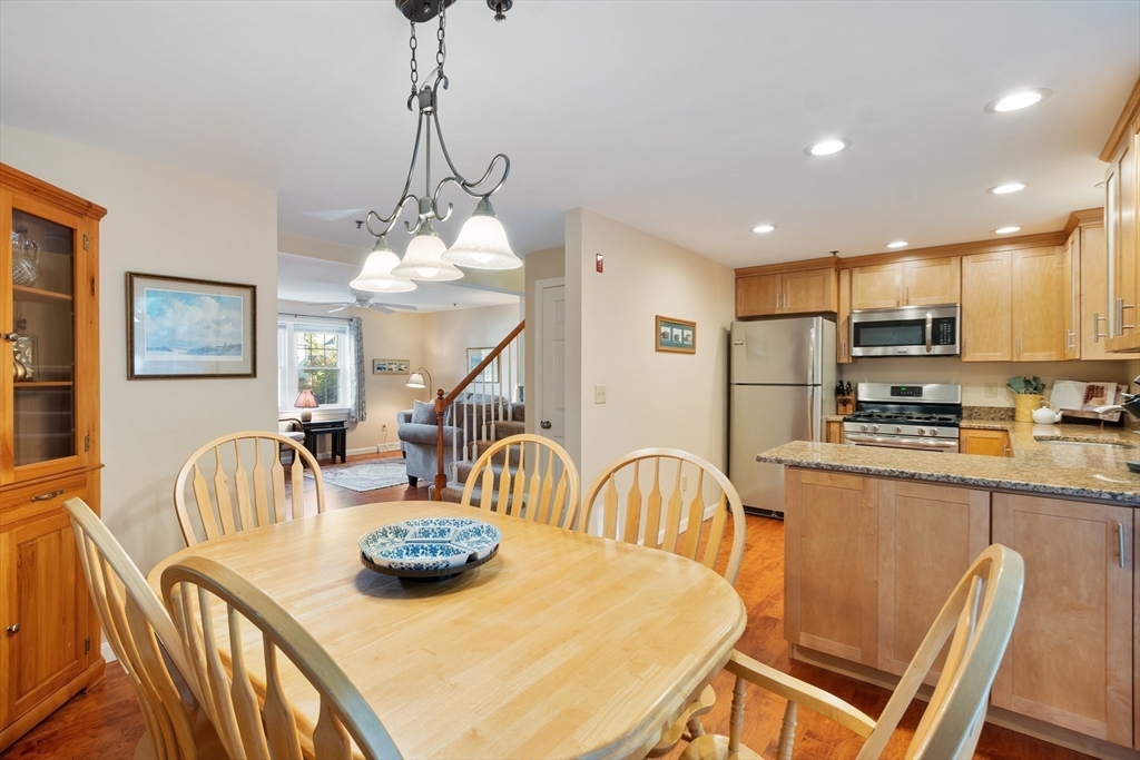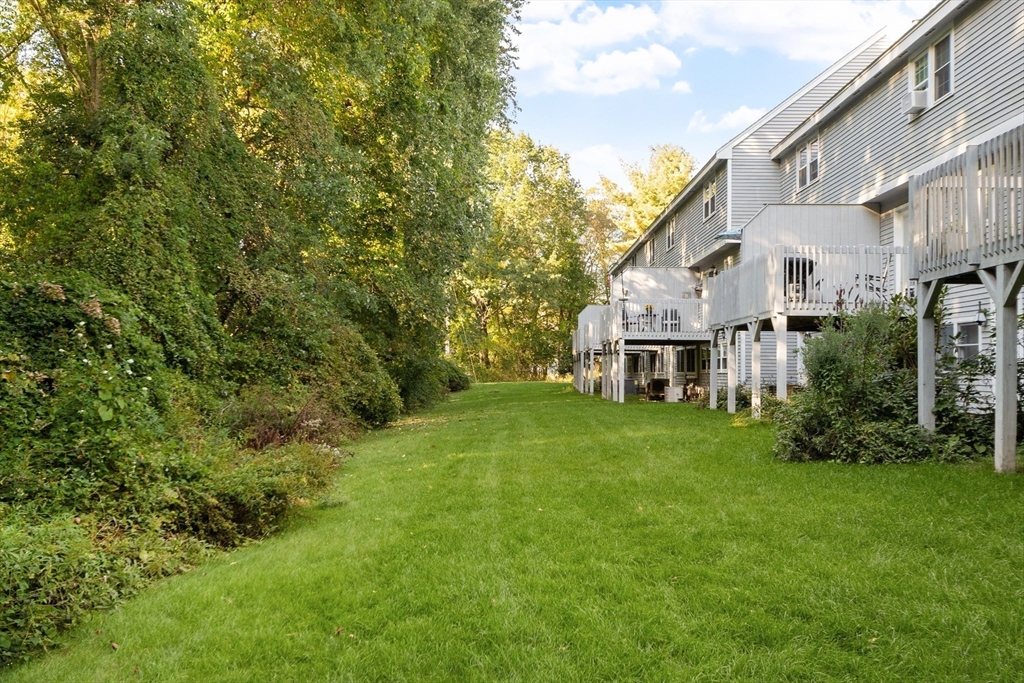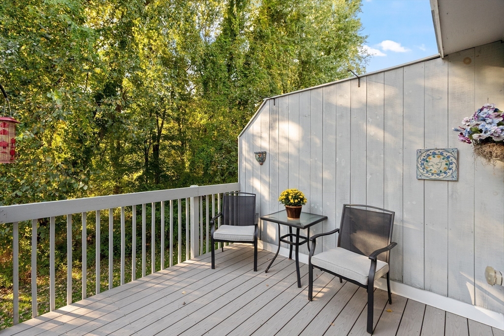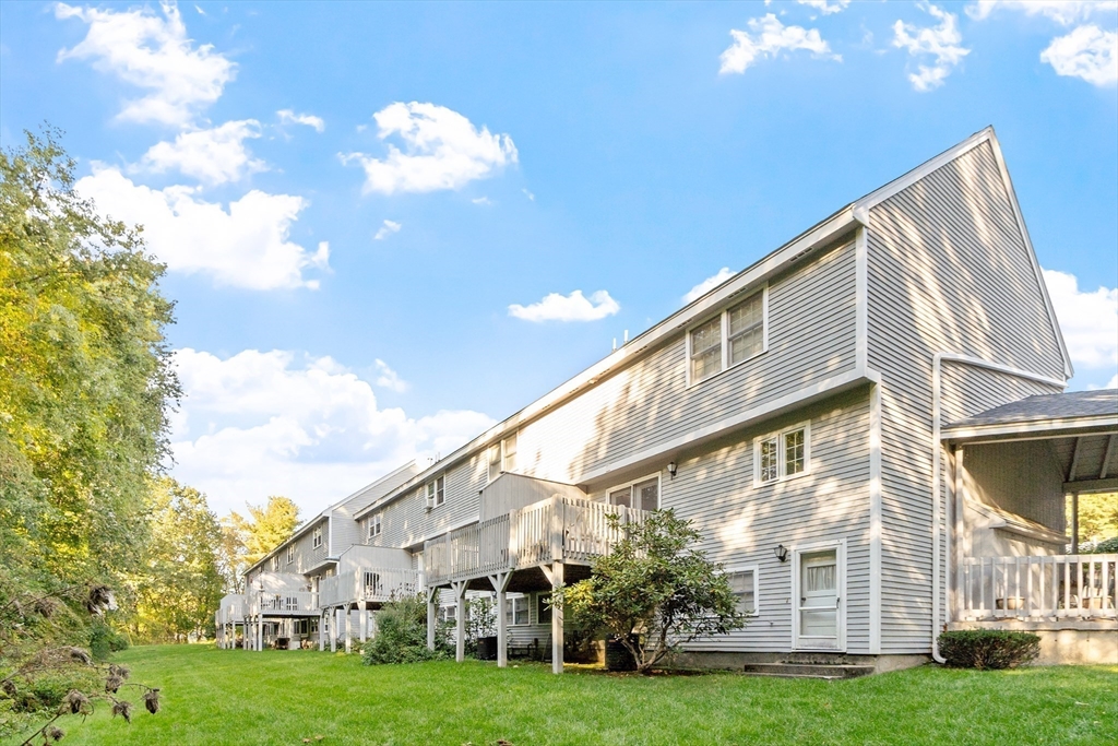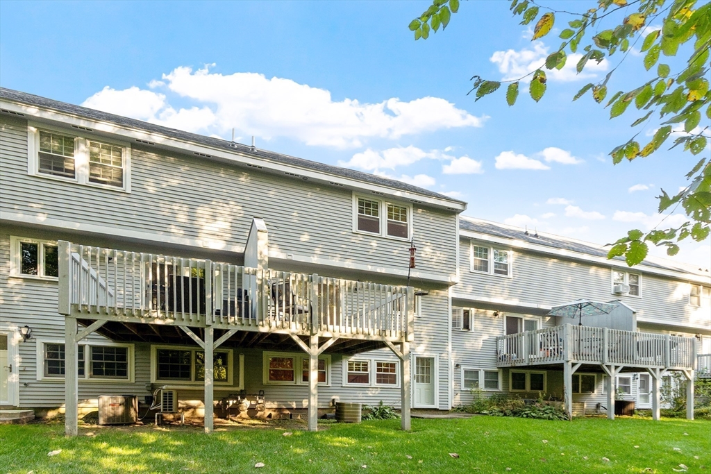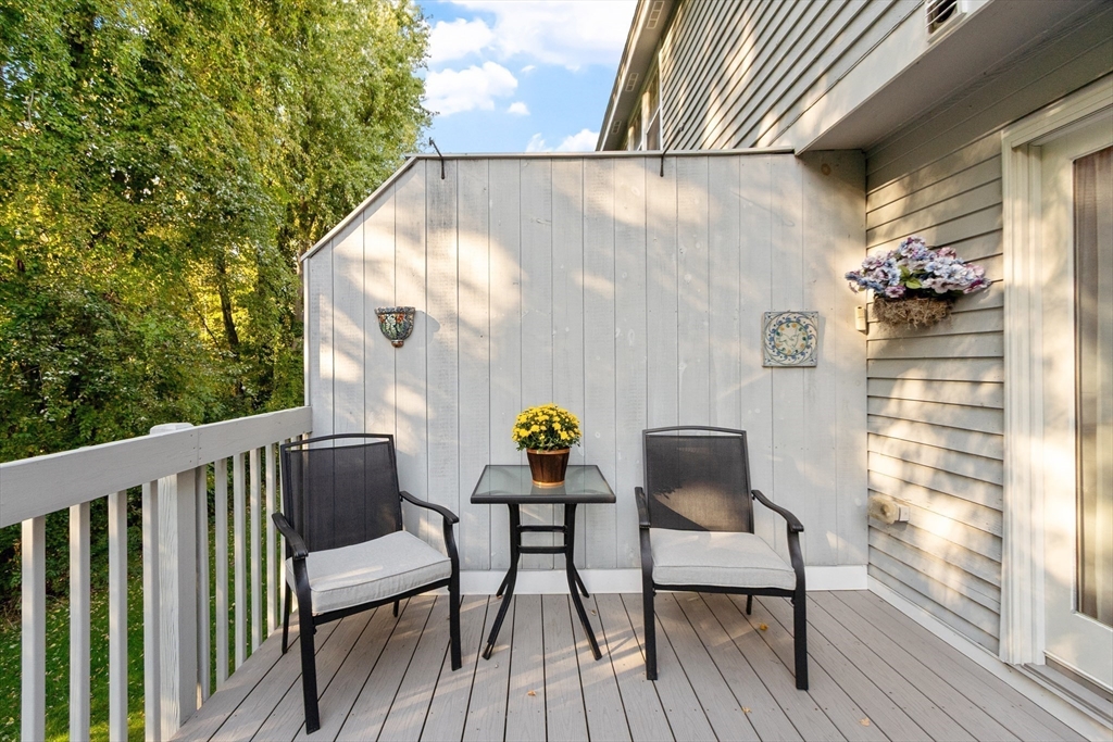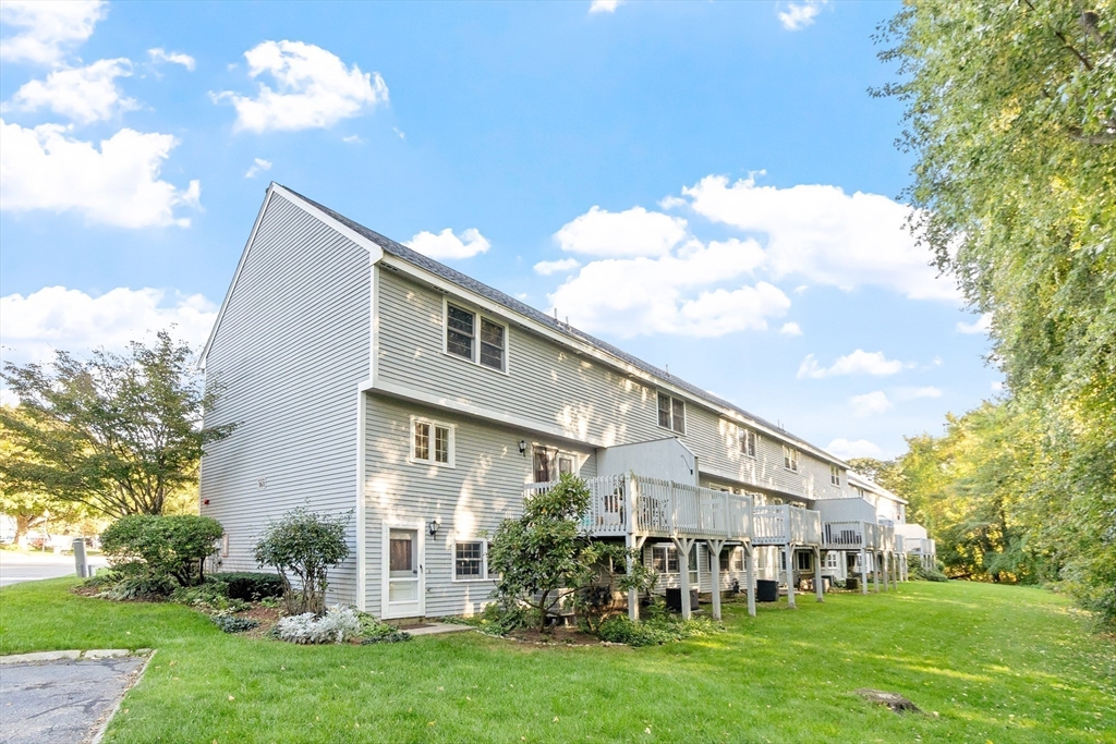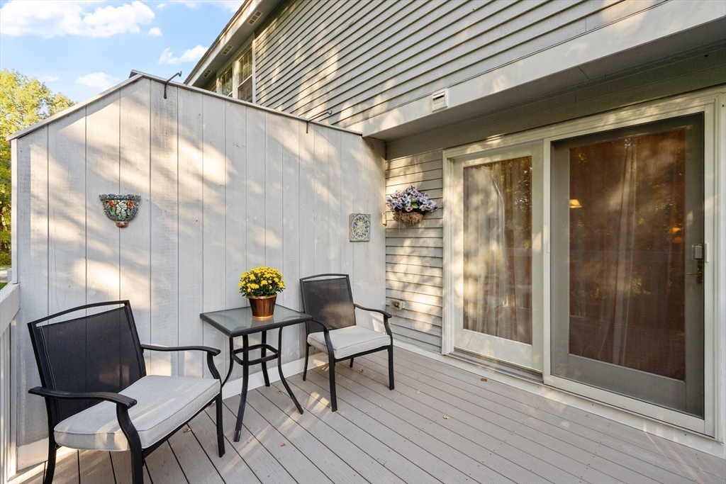 Welcome to this beautifully updated townhouse in Pilgrim Village II, offering modern updates and flexible living spaces! This home features 2 spacious bedrooms, an open floor plan, a versatile finished basement, and a cozy loft—perfect for both relaxation and productivity. Gleaming hardwood floors span the first level, while the updated kitchen shines with stainless steel appliances, granite countertops, and a dining area overlooking nature. Step out to the spacious composite deck with freshly painted railings—ideal for morning coffee or quiet evenings. Upstairs, the primary suite includes an adjoining loft that makes a perfect retreat or office nook. The main bath offers double sinks and a tiled tub/shower. The partially finished basement expands your options with a dedicated home office, and direct walkout access to a peaceful outdoor space, plus ample storage. Conveniently located near schools, shopping, the hospital, and conservation trails for year-round recreation.