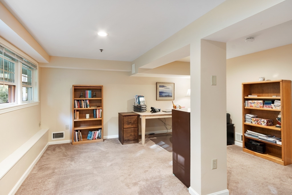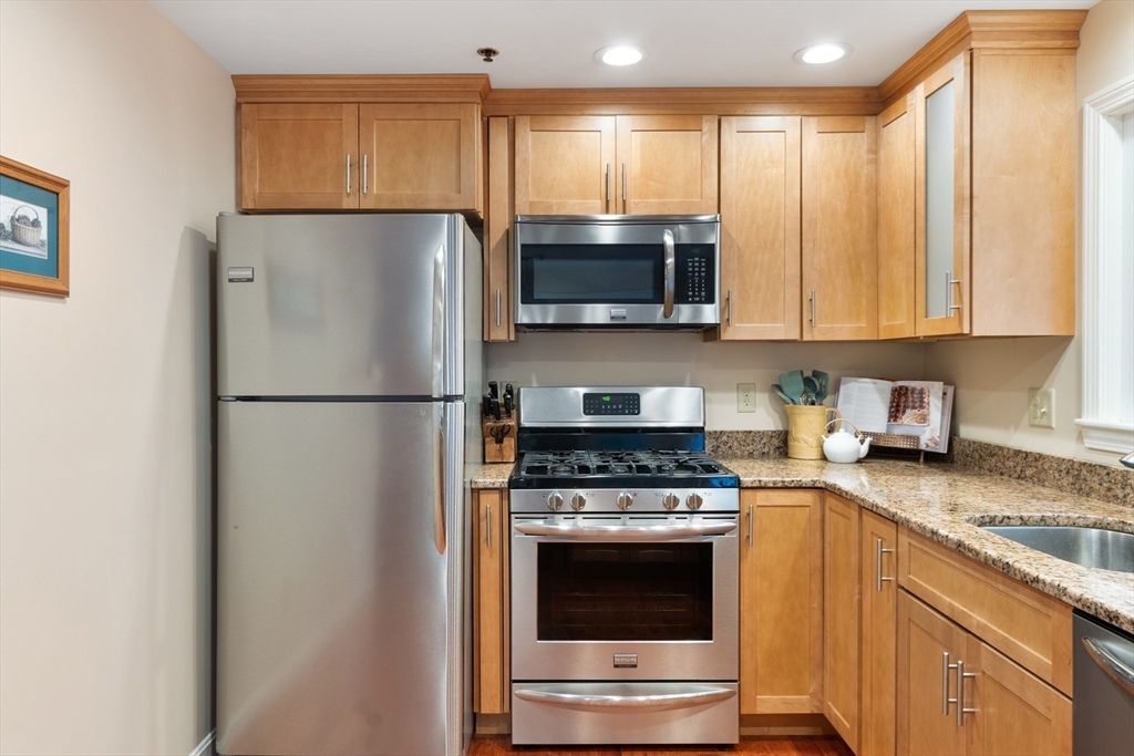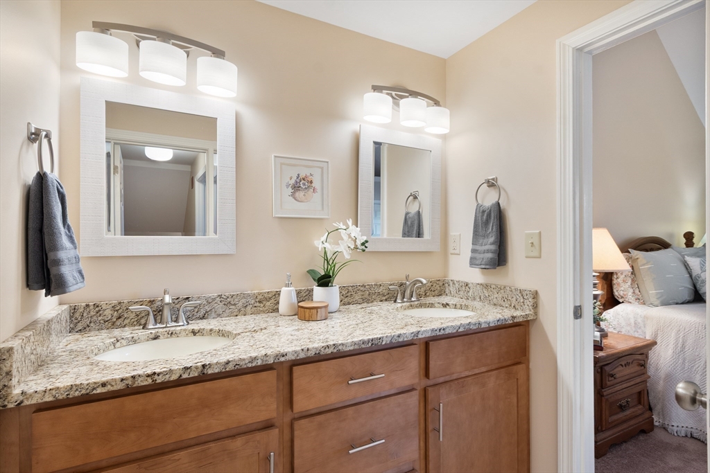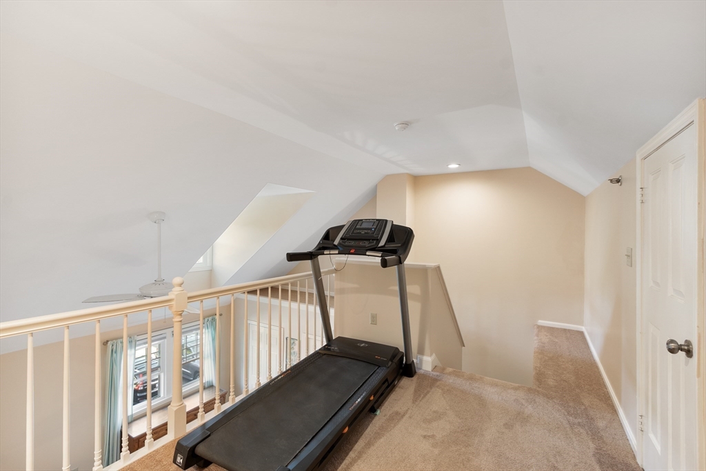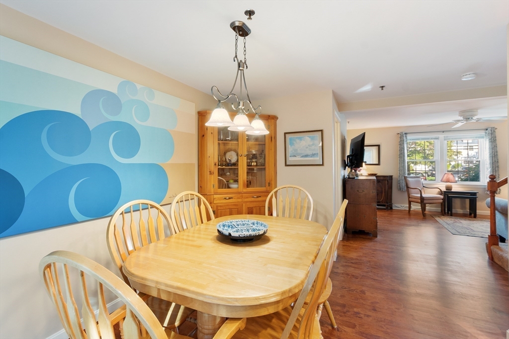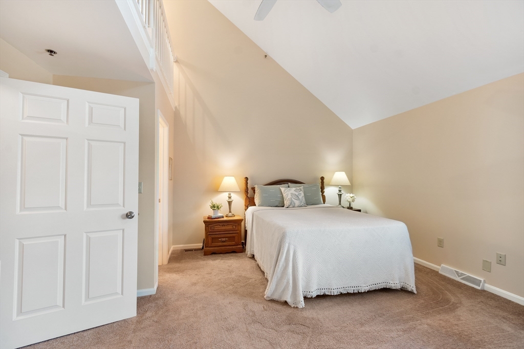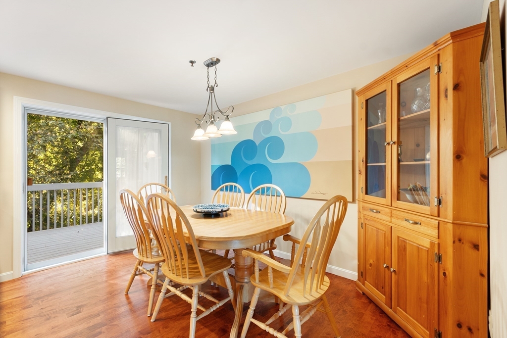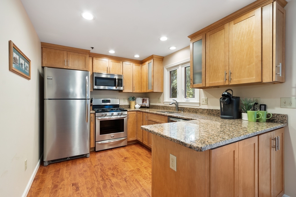 Welcome to this beautifully updated townhouse in Pilgrim Village II, offering modern updates and flexible living spaces! This home features 2 spacious bedrooms, an open floor plan, a versatile finished basement, and a cozy loft—perfect for both relaxation and productivity. Gleaming hardwood floors span the first level, while the updated kitchen shines with stainless steel appliances, granite countertops, and a dining area overlooking nature. Step out to the spacious composite deck with freshly painted railings—ideal for morning coffee or quiet evenings. Upstairs, the primary suite includes an adjoining loft that makes a perfect retreat or office nook. The main bath offers double sinks and a tiled tub/shower. The partially finished basement expands your options with a dedicated home office, and direct walkout access to a peaceful outdoor space, plus ample storage. Conveniently located near schools, shopping, the hospital, and conservation trails for year-round recreation.