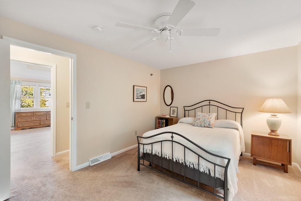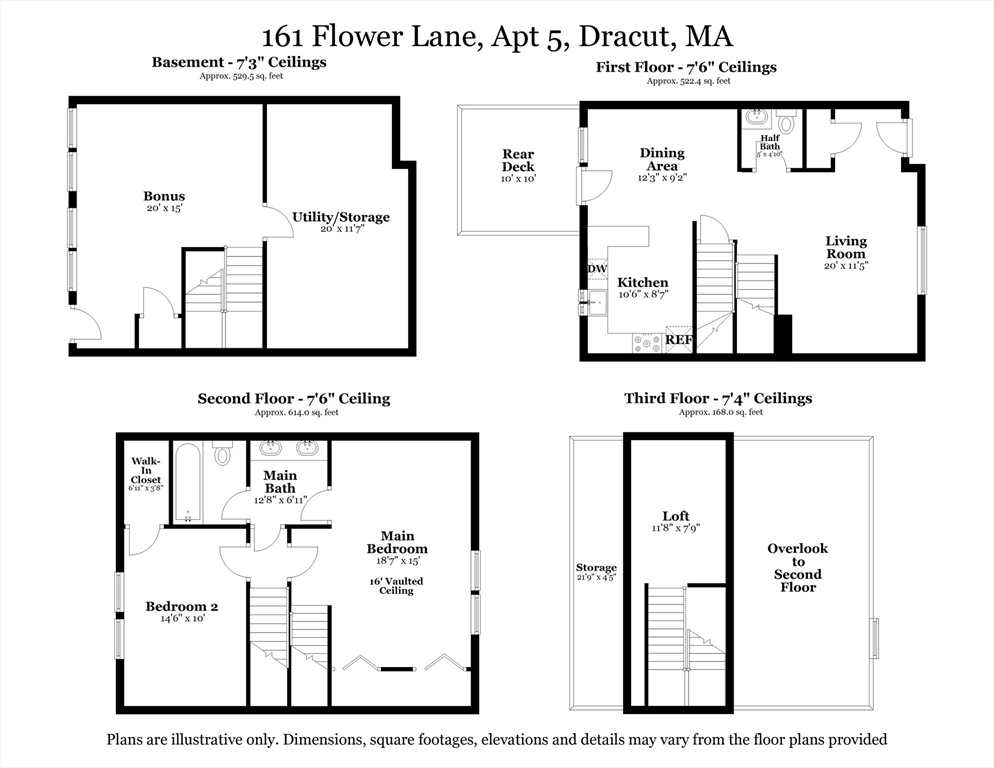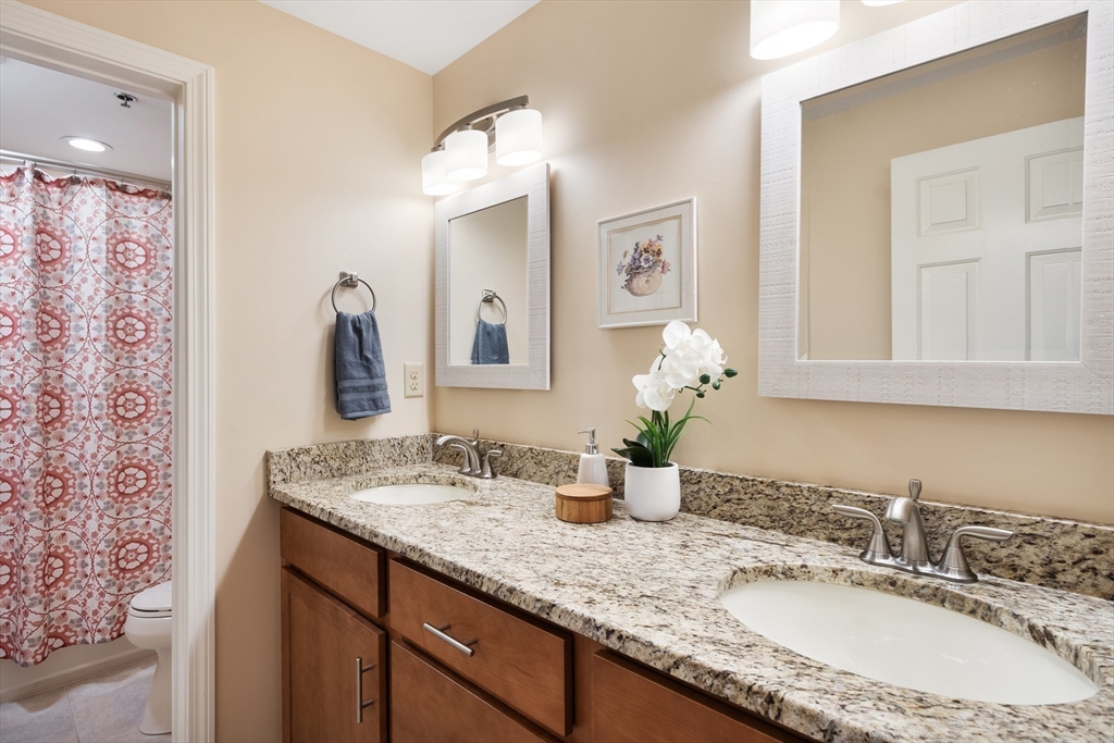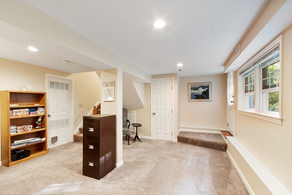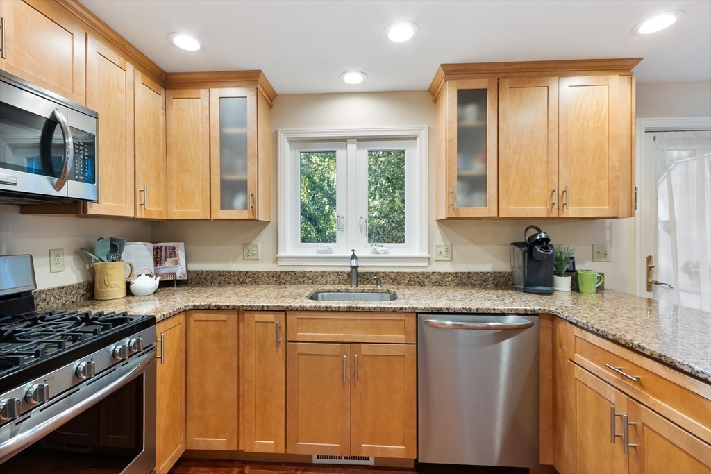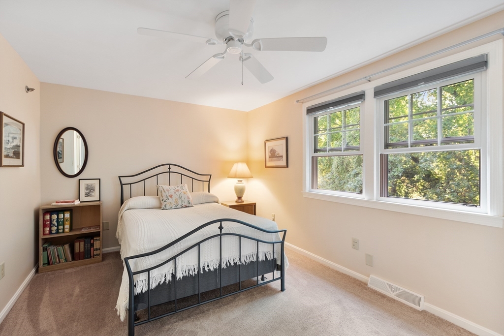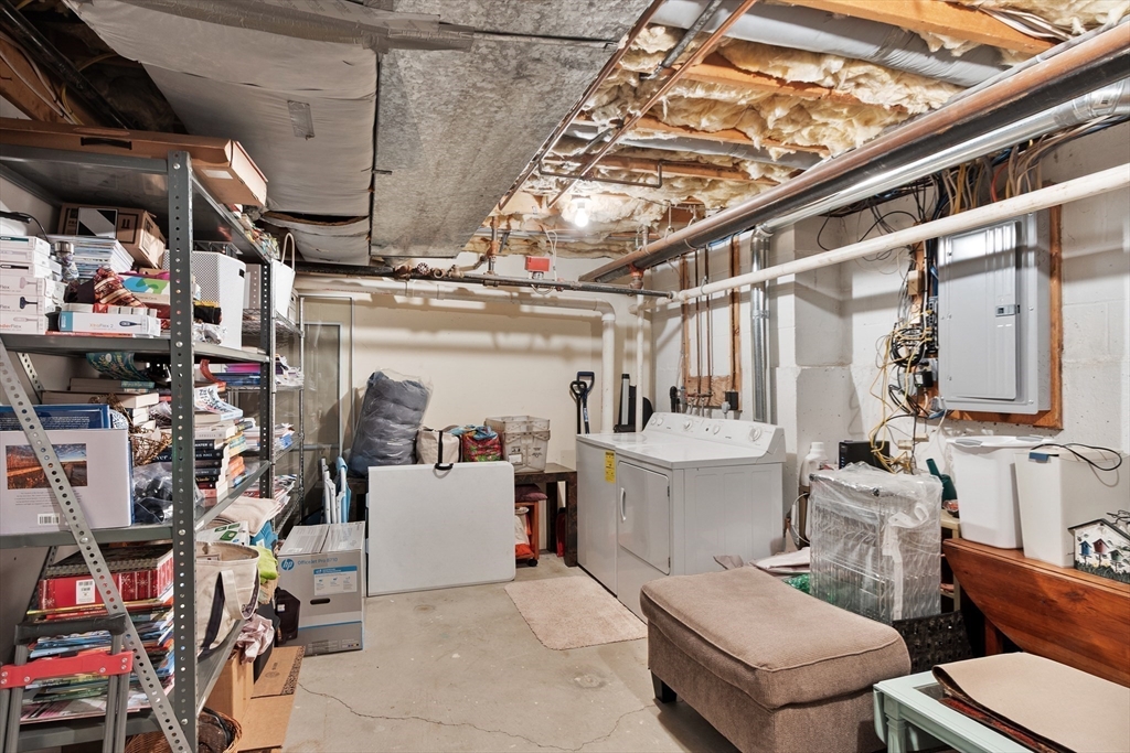 Welcome to this beautifully updated townhouse in Pilgrim Village II, offering modern updates and flexible living spaces! This home features 2 spacious bedrooms, an open floor plan, a versatile finished basement, and a cozy loft—perfect for both relaxation and productivity. Gleaming hardwood floors span the first level, while the updated kitchen shines with stainless steel appliances, granite countertops, and a dining area overlooking nature. Step out to the spacious composite deck with freshly painted railings—ideal for morning coffee or quiet evenings. Upstairs, the primary suite includes an adjoining loft that makes a perfect retreat or office nook. The main bath offers double sinks and a tiled tub/shower. The partially finished basement expands your options with a dedicated home office, and direct walkout access to a peaceful outdoor space, plus ample storage. Conveniently located near schools, shopping, the hospital, and conservation trails for year-round recreation.
