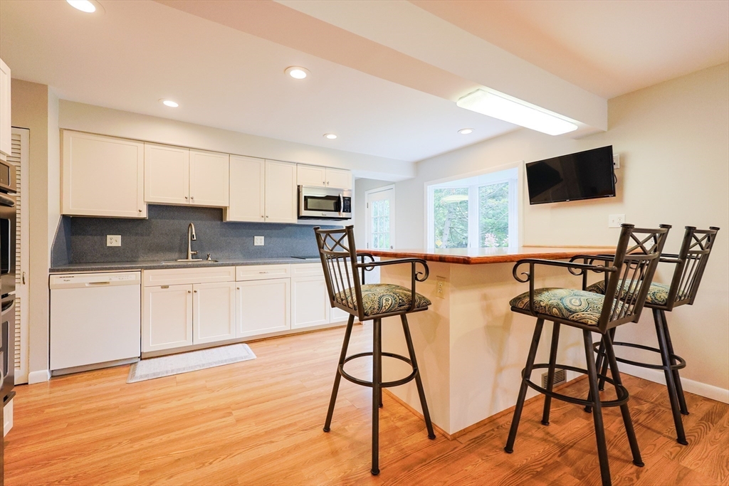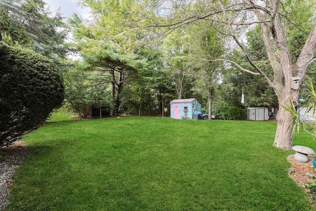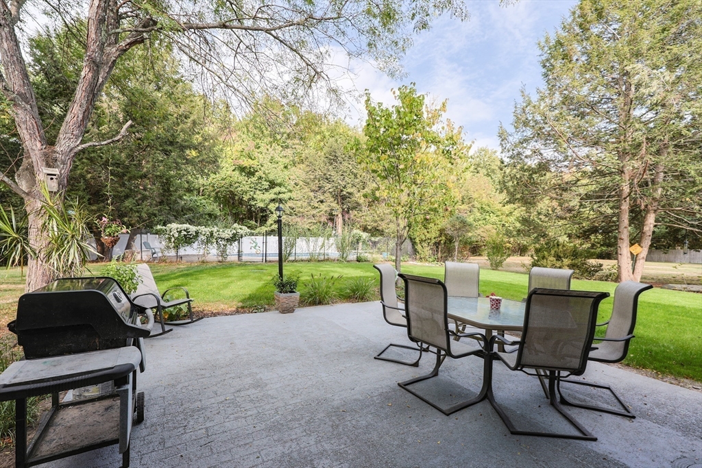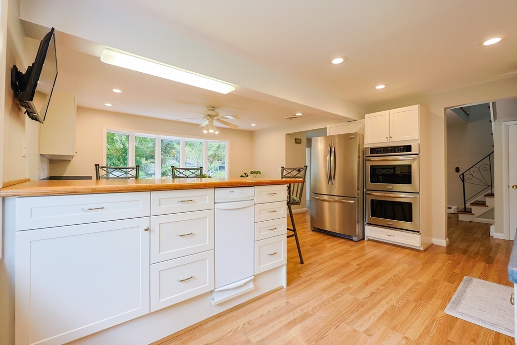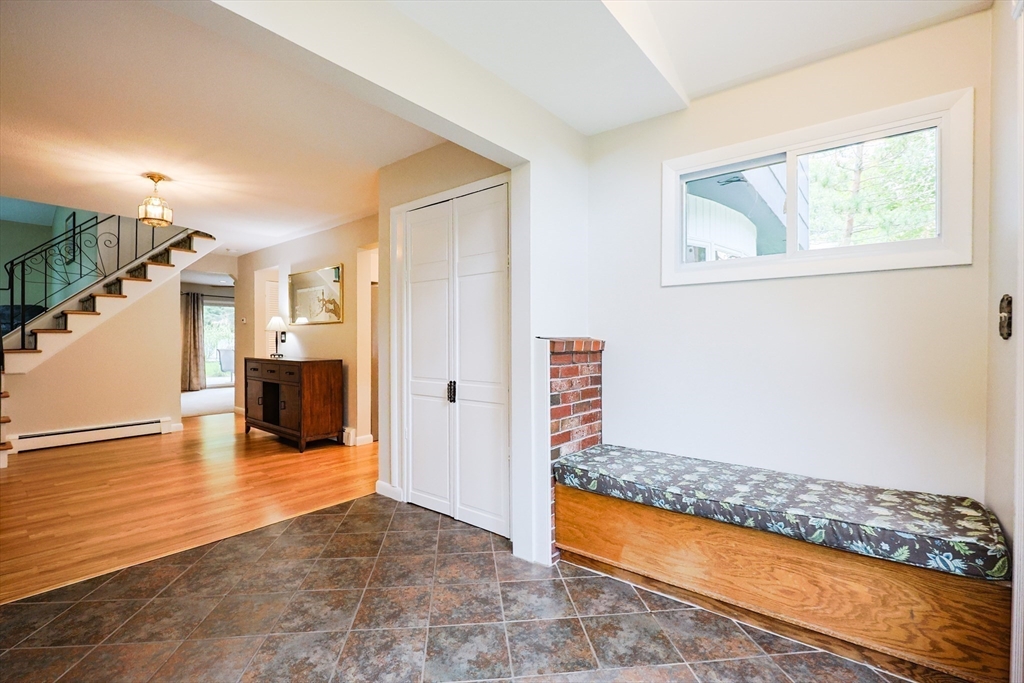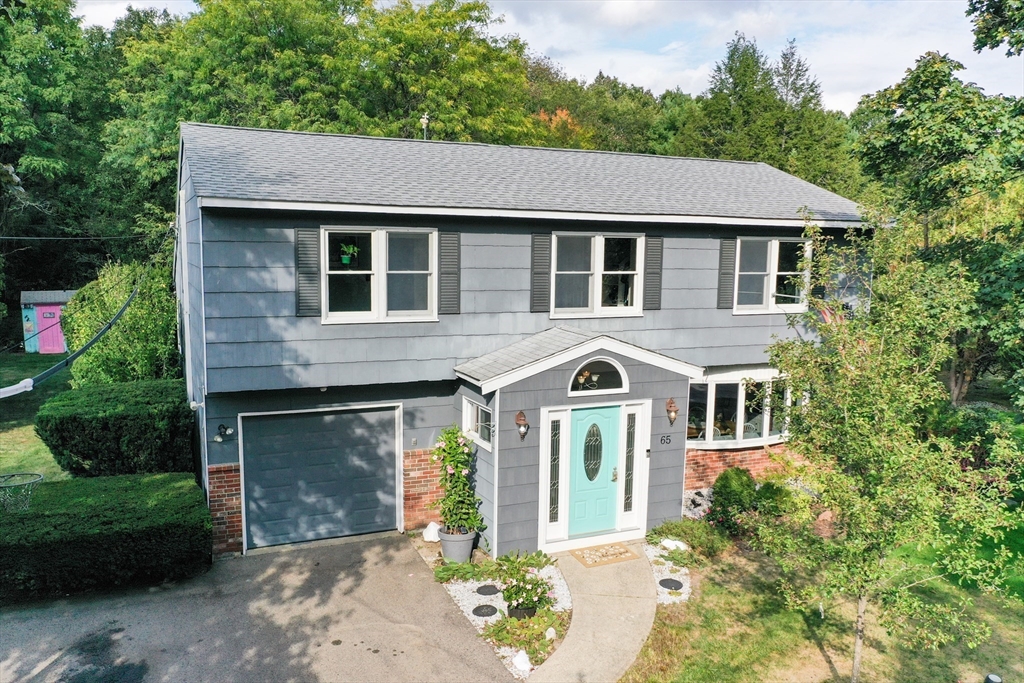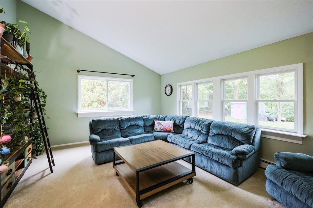 Spacious and sunny colonial with central AC and inground pool is ideally located in one of Holliston's most popular neighborhoods, close to commuter rail, shops, and major routes. Fabulous open kitchen is bathed in sunlight, featuring white cabinetry, stainless appliances (including the double oven!), large eating area with bay window, oversized peninsula w/storage and seating, pantry and abundant countertop space. Fireplaced family room with slider to patio and lovely patio and backyard; vaulted ceiling living room with HW floors under carpet; convenient 1st floor laundry and powder room complete the main level. Upstairs are all four bedrooms with hardwood floors PLUS a bonus room or additional bedroom. Primary bedroom offers two closets plus its own private full bathroom. Updates include: 4 BR septic system (2025); interior painting; oil tank and HW heater (2022); windows; pool liner, pump & filter. Flat, beautiful yard with fenced pool area. Such great space, both inside and out