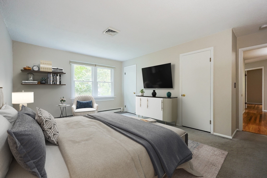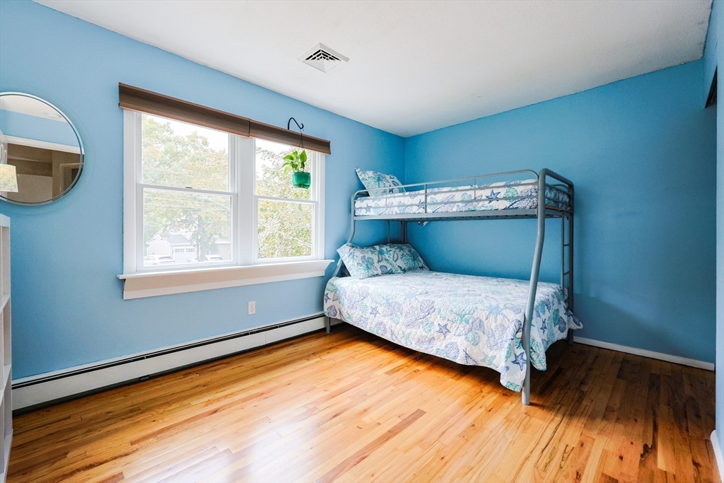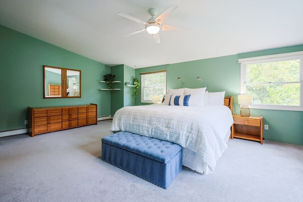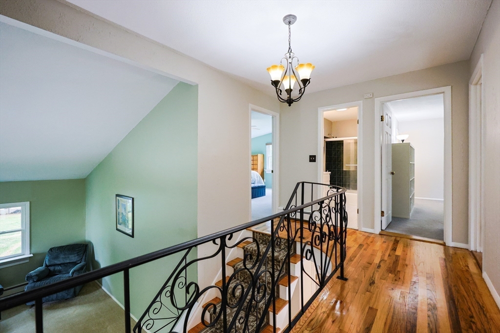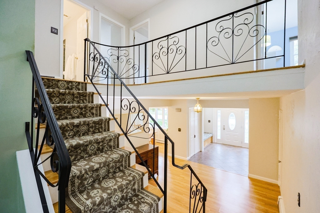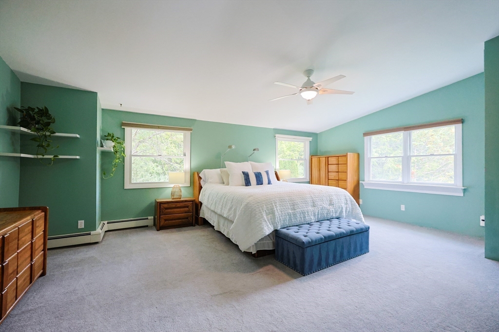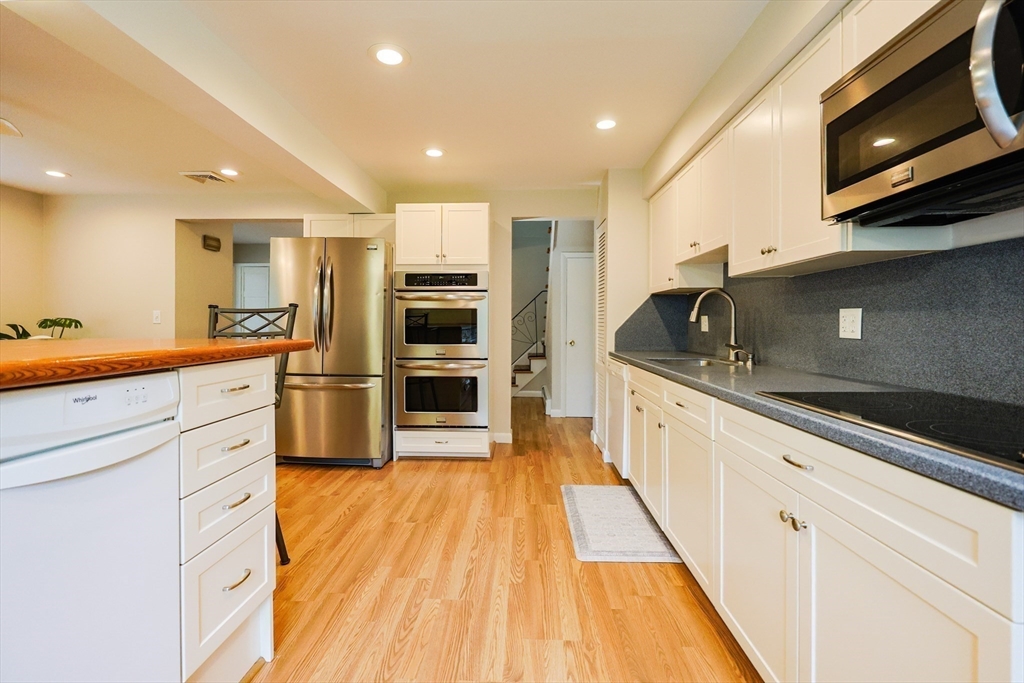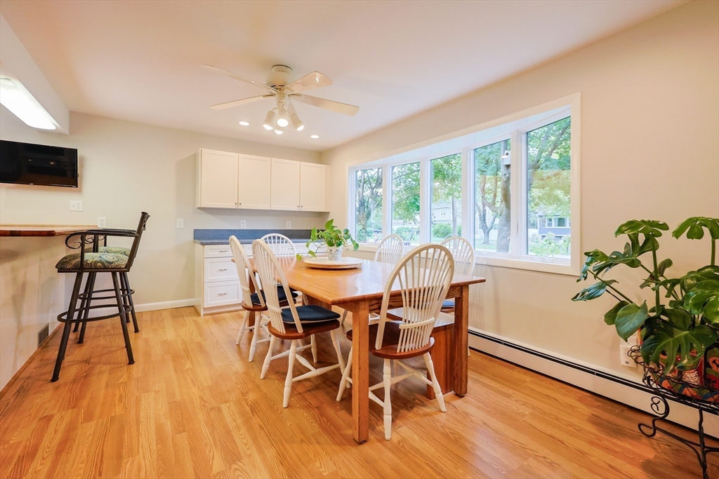 Spacious and sunny colonial with central AC and inground pool is ideally located in one of Holliston's most popular neighborhoods, close to commuter rail, shops, and major routes. Fabulous open kitchen is bathed in sunlight, featuring white cabinetry, stainless appliances (including the double oven!), large eating area with bay window, oversized peninsula w/storage and seating, pantry and abundant countertop space. Fireplaced family room with slider to patio and lovely patio and backyard; vaulted ceiling living room with HW floors under carpet; convenient 1st floor laundry and powder room complete the main level. Upstairs are all four bedrooms with hardwood floors PLUS a bonus room or additional bedroom. Primary bedroom offers two closets plus its own private full bathroom. Updates include: 4 BR septic system (2025); interior painting; oil tank and HW heater (2022); windows; pool liner, pump & filter. Flat, beautiful yard with fenced pool area. Such great space, both inside and out