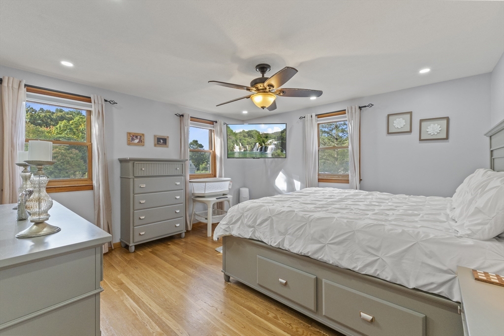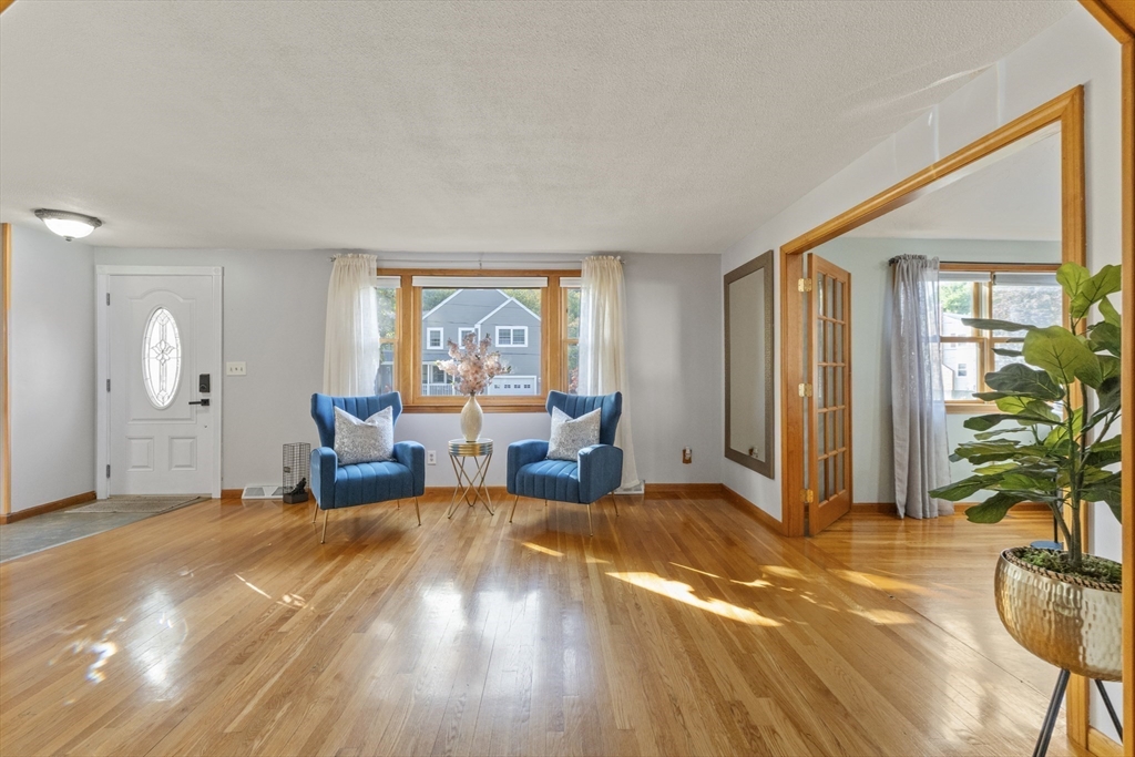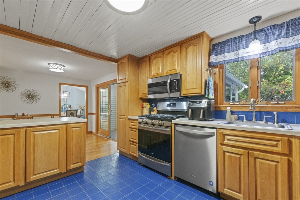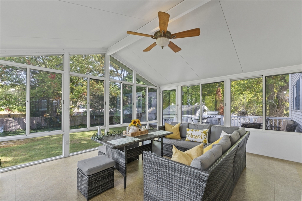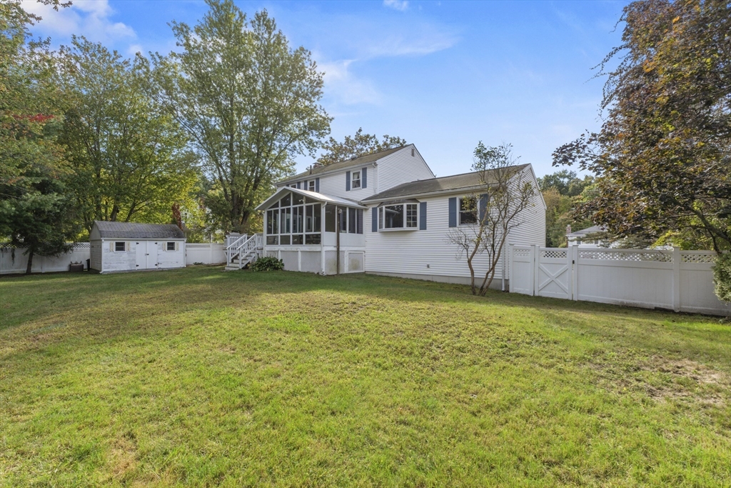 This gorgeous, impeccably maintained 4-bed, 2-bath home is an oasis of relaxation. As you enter, a calm washes over you in the light & spacious foyer; the huge great room with dining area & bonus room/office seamlessly flow into the bright eat-in kitchen, with stainless appliances & peninsula with seating; finally into the cozy living room with wood burning fireplace & full bath.The incredible sunroom is a peaceful retreat & the heart of the home leading to the deck & private, large fenced yard with play structure & shed, perfect for recreation & entertaining. The 2nd level has a gracious primary bedroom featuring a walk-in closet; plus 3 more bedrooms & 2nd full bath. Additional conveniences include a generous mudroom with entry from the spotless 2-car oversized garage, laundry, tons of storage & even a third bay used as an exercise room! Nestled in a desirable & charming neighborhood, secluded but only minutes to highways & shopping...You'll be so happy to call this house your HOME.