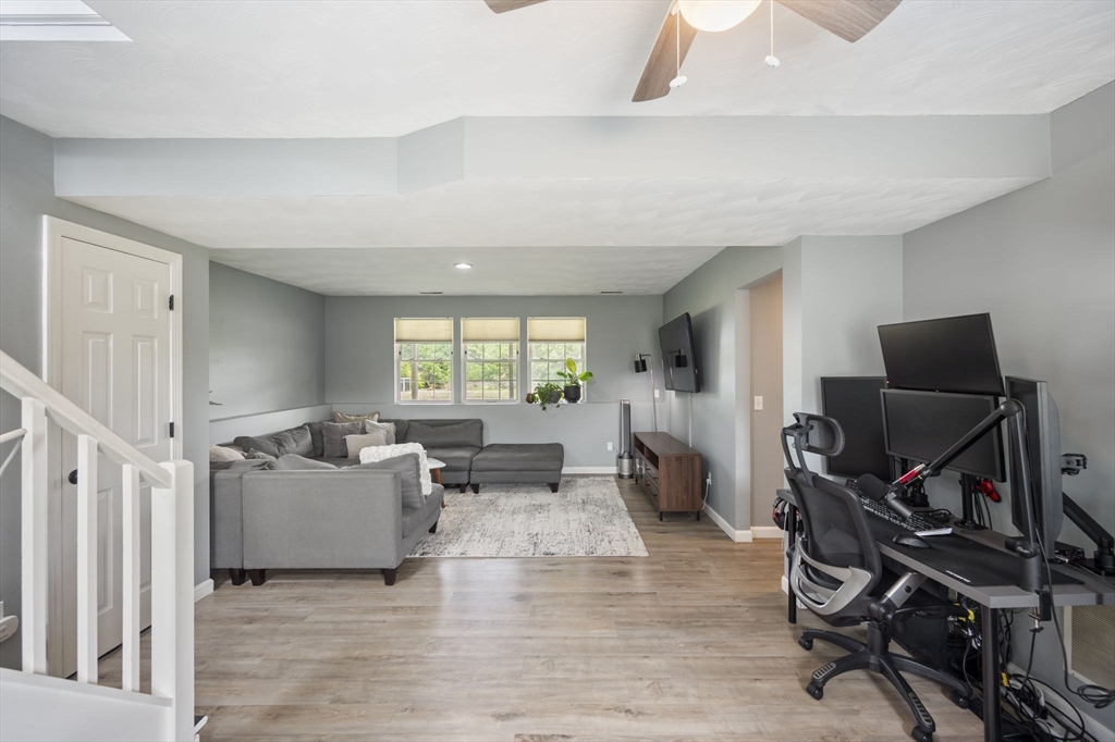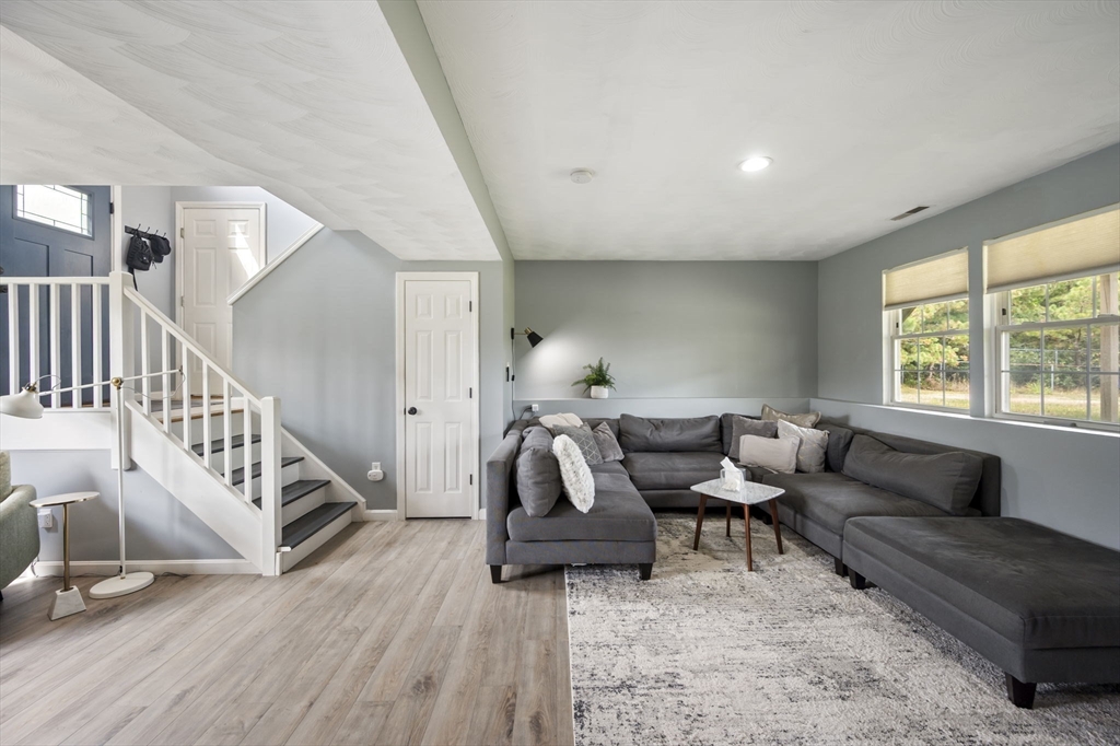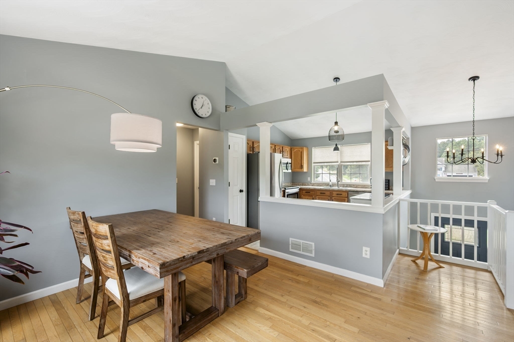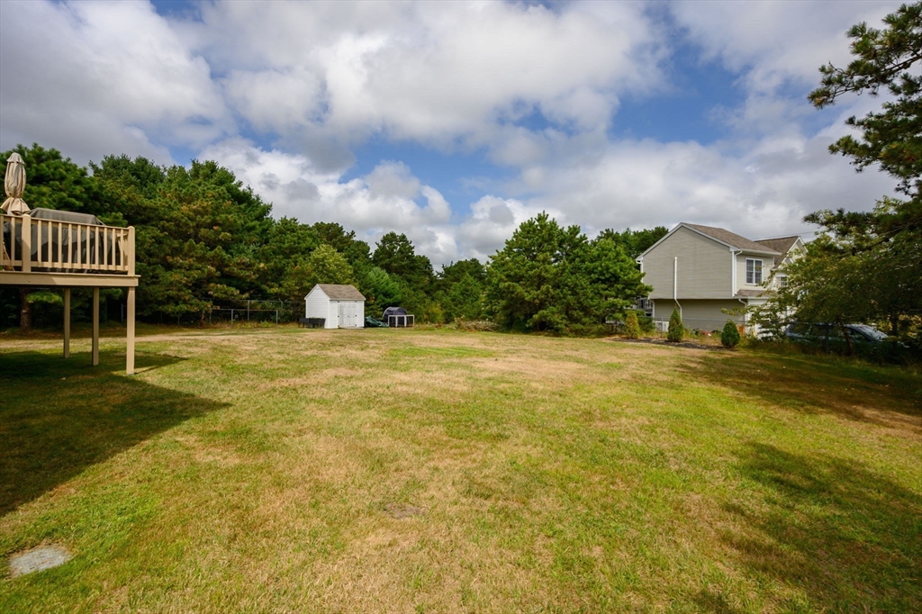 Welcome to 119 Nathan Lane in the desirable Ponds of Plymouth neighborhood! This well-maintained 3-bed, 2-bath home sits on a large, level corner lot and features an open eat-in kitchen with cathedral ceilings, a dining area with hardwood floors, and direct access to a freshly painted deck with new exterior and storm doors. The finished lower level offers new vinyl plank flooring, perfect for a bonus room, office, or play space. Additional updates include fresh interior paint, recessed lighting, and a gas heating system with central air. Exterior highlights include a storage shed, irrigation system (front and back), and an attached garage. Enjoy access to Whites Pond, nearby recreation areas, trails, YMCA, and neighborhood childcare center. Conveniently located near both Cape bridges and all that Plymouth has to offer—beaches, restaurants, shopping, and more!
