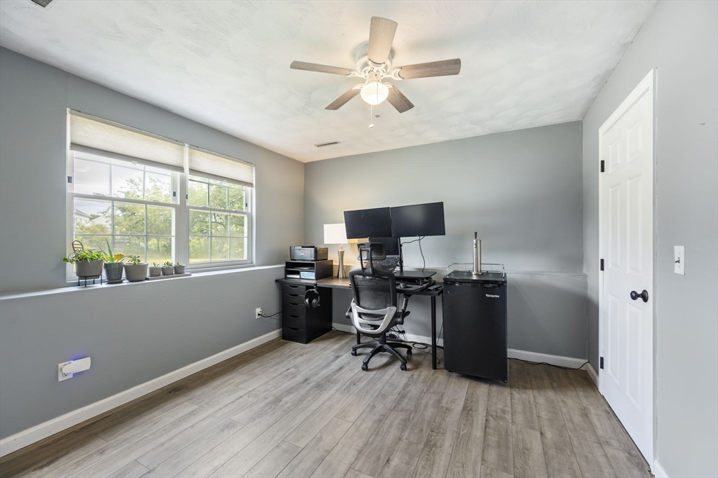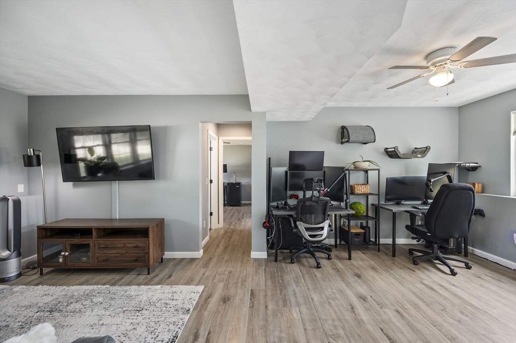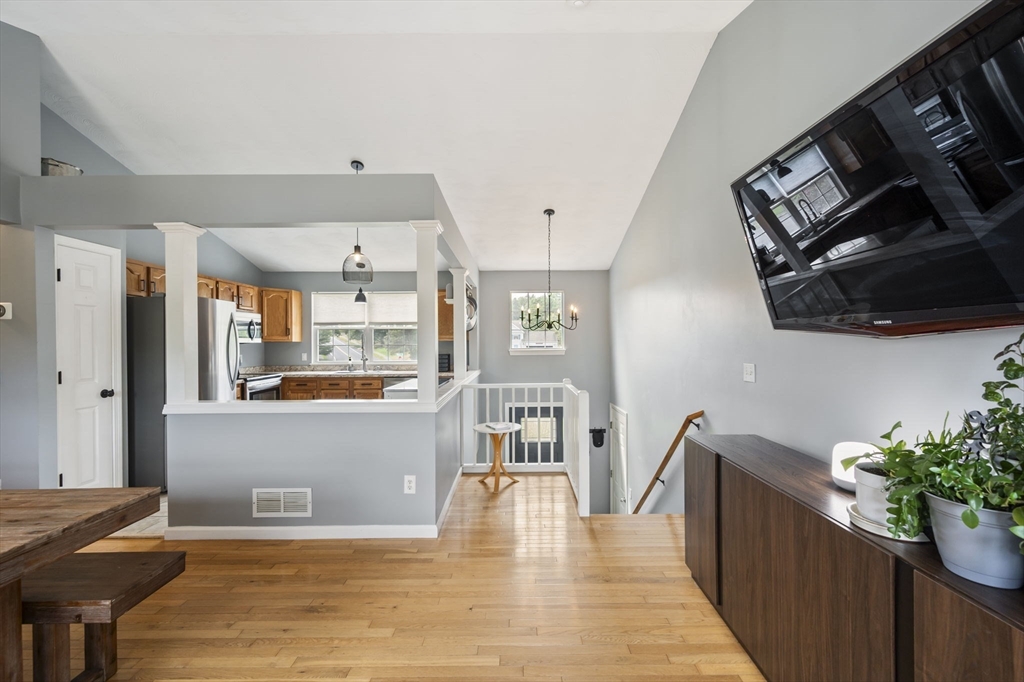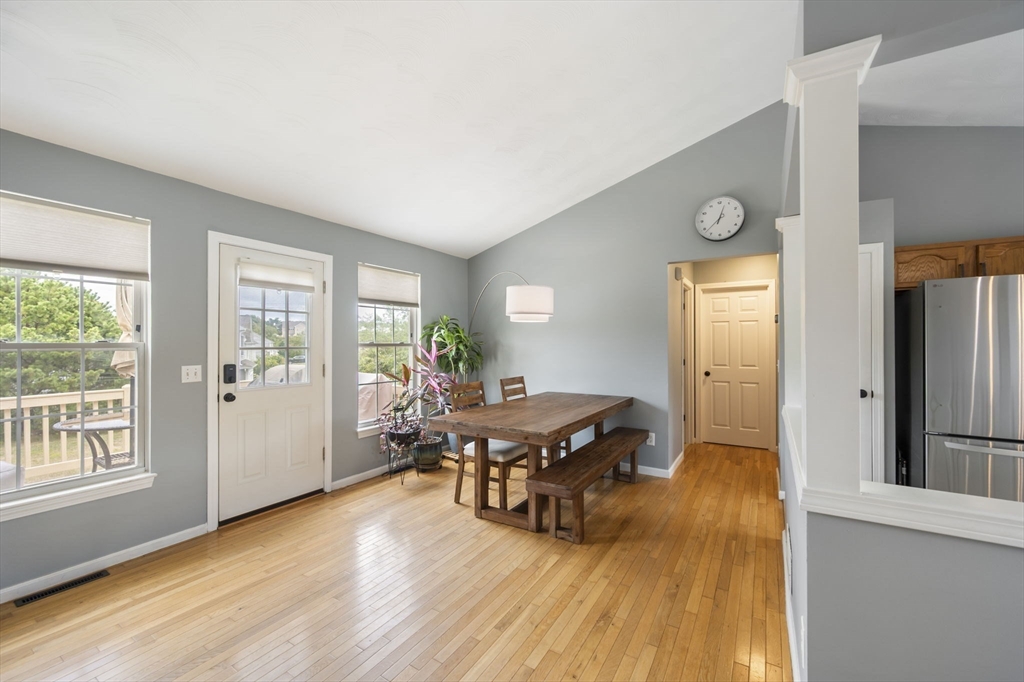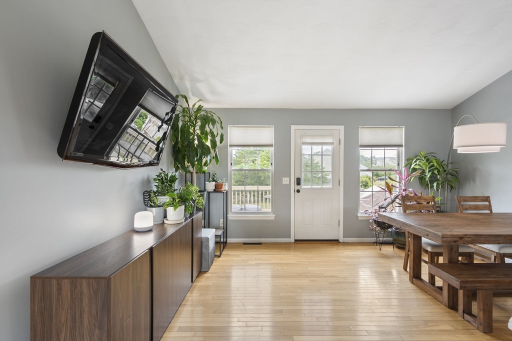 Welcome to 119 Nathan Lane in the desirable Ponds of Plymouth neighborhood! This well-maintained 3-bed, 2-bath home sits on a large, level corner lot and features an open eat-in kitchen with cathedral ceilings, a dining area with hardwood floors, and direct access to a freshly painted deck with new exterior and storm doors. The finished lower level offers new vinyl plank flooring, perfect for a bonus room, office, or play space. Additional updates include fresh interior paint, recessed lighting, and a gas heating system with central air. Exterior highlights include a storage shed, irrigation system (front and back), and an attached garage. Enjoy access to Whites Pond, nearby recreation areas, trails, YMCA, and neighborhood childcare center. Conveniently located near both Cape bridges and all that Plymouth has to offer—beaches, restaurants, shopping, and more!