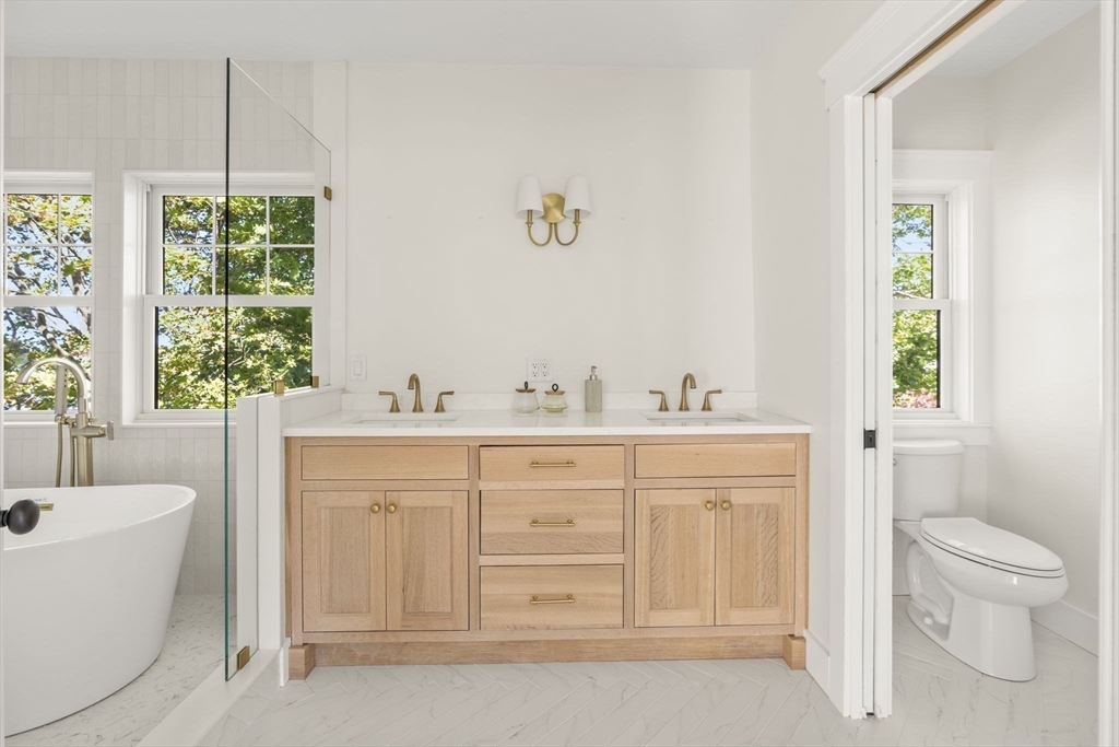 Discover coastal luxury at its finest in this new construction home at 81 Kimball Beach Road! The heart of the home is a show-stopping kitchen featuring custom inset cabinetry, Thermador appliances, quartz countertops and a walk-in pantry. The kitchen flows into a spacious dining / living area with a gas fireplace, bar area and access to an ample deck and yard. A private study, stylish powder room, custom mudroom, and attached 2-car garage complete the first floor. Upstairs offers 4 bedrooms, a laundry room and a serene primary suite with walk-in closet, spa-like bath with soaking tub and private deck. The 3rd floor features a large bonus room and expansive rooftop deck with panoramic harbor and Boston skyline views. Finished lower level includes media room and additional bedroom. On a desirable corner lot steps to the exclusive Kimball Beach Community Club and the pier where you can enjoy swimming/boating/kayaking. Experience one of Hingham’s most sought-after waterfront enclaves!