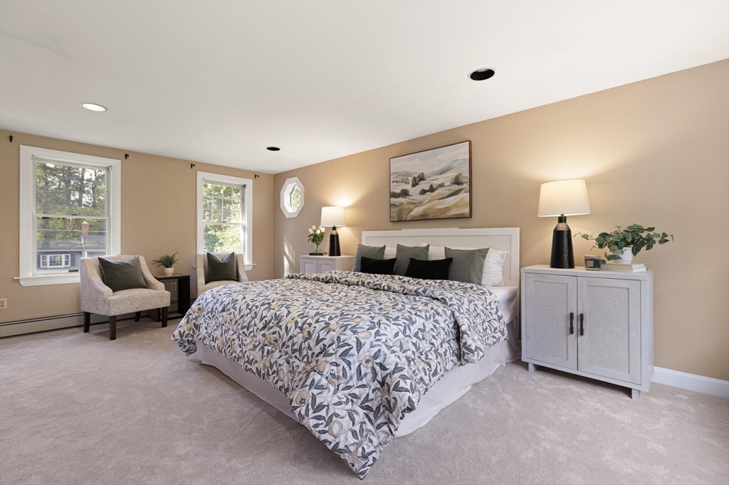 This home is located in the desirable Robbins Park neighborhood known for its quiet charm and convenient location. The spacious home includes a large formal living room, elegant dining room with built in cabinetry, cozy family room and an expansive window-filled sunroom that looks out over the tranquil backyard. The well-appointed kitchen has ample counter space and cabinetry and a large pantry. The first floor also features two fireplaces. Upstairs you will find four bedrooms and two bathrooms. The large primary bedroom offers an ensuite bathroom, two separate closets, and a sitting area. The three additional bedrooms provide generous accommodations. Additional features include the option to join the neighborhood pool, access to conservation land, public transit, and the Bruce Freeman Rail Trail.